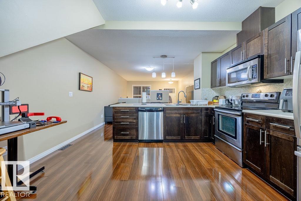 Welcome to this bright and modern townhome in desirable South Terwillegar offering over 1,000 sq. ft. of open-concept living and truly maintenance-free living in a fantastic location. The main floor features a spacious great room with living and dining areas, an L-shaped kitchen with maple cabinetry, granite countertops, stainless steel appliances, and a convenient 2-piece powder room—perfect for everyday living and entertaining. Upstairs, you’ll find two generously sized bedrooms, each with access to a full bathroom, including a primary bedroom with its own ensuite. An upper-floor laundry adds everyday convenience. The lower level includes the mechanical room and an oversized tandem-style attached garage, providing ample storage and easy access in and out. Located near Schools, the Community Garden, and the neighbourhood’s central amenities—including a corner store, café, and restaurant—this community is known for its welcoming, family-friendly atmosphere and pet-friendly lifestyle. (33806938)