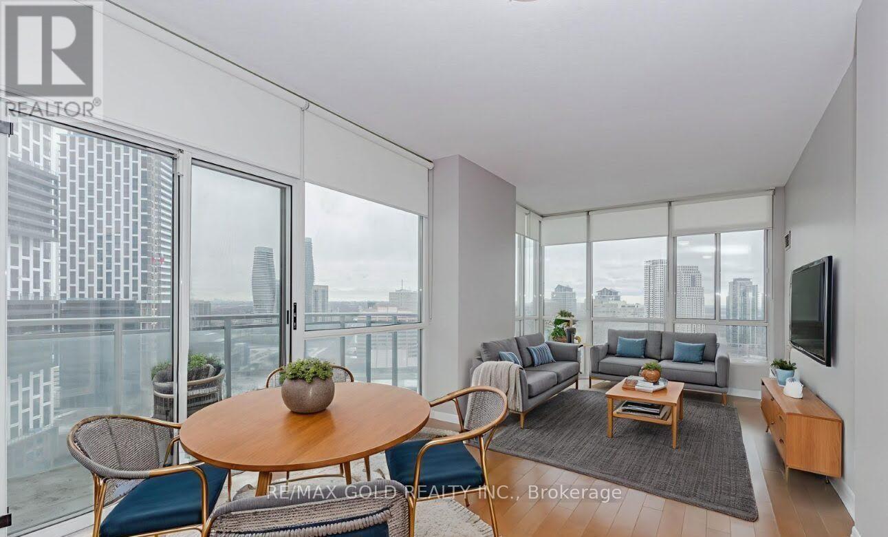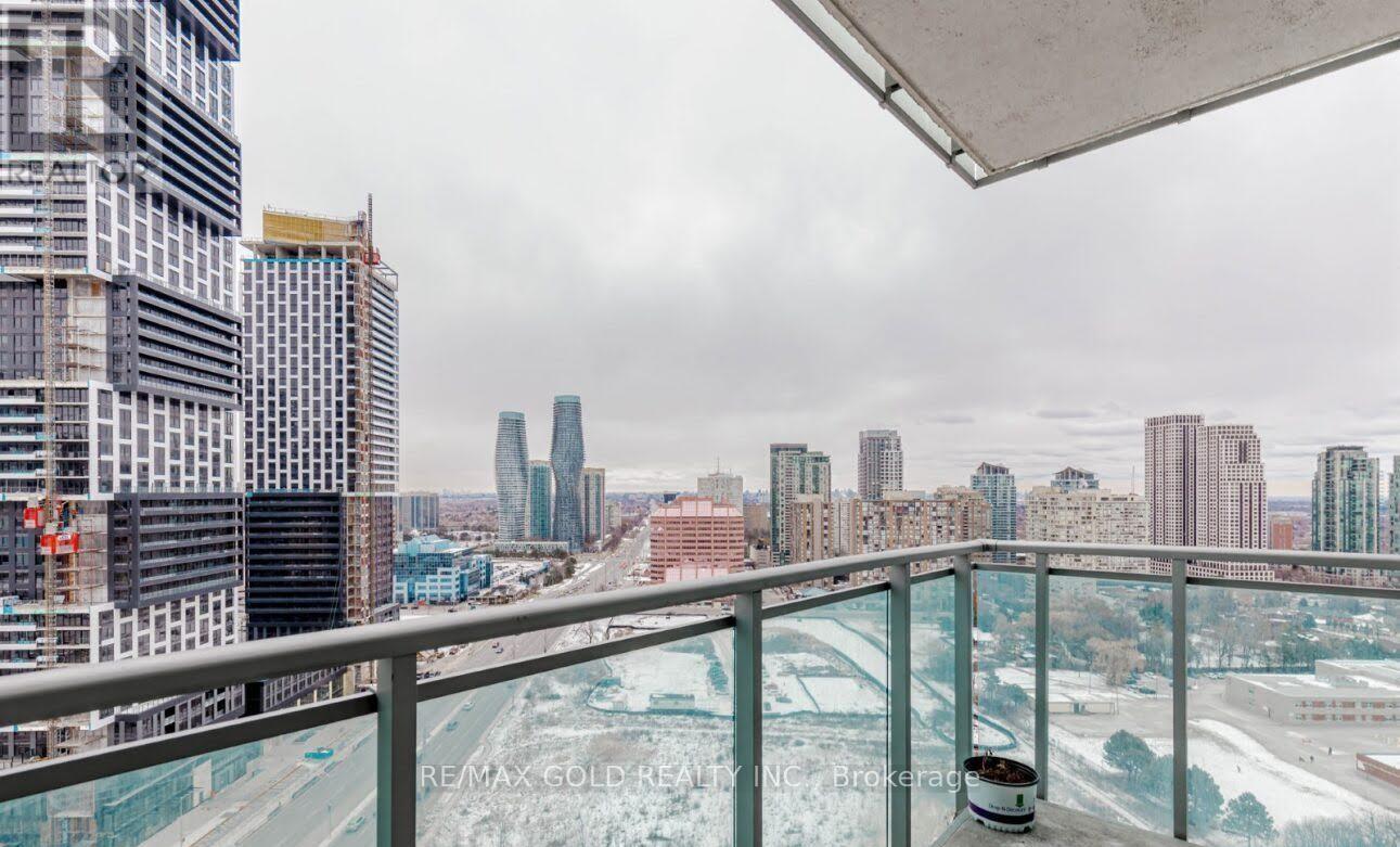 Experience this 2+ Den bedroom, 2-bathroom condo, complete with a versatile den and a spacious balcony. Located on the 21st floor, this home offers stunning panoramic views of the Mississauga skyline. Spanning 945 sq ft, it's the perfect urban retreat, with everything the vibrant city has to offer just outside your door. You'll be just minutes away from Square One Shopping Centre, top-tier theaters, a variety of dining options, and quick access to highways 403 and 401, ideal for commuting or weekend getaways. Inside this upscale building, enjoy an array of luxury amenities that turn everyday living into a refined experience. A dedicated concierge, 24/7 security, and guard ensure peace of mind, while the indoor pool and whirlpool invite you to relax and unwind. Stay fit with the fully-equipped gym, or entertain guests in the party and media rooms. Outdoor enthusiasts will love the rooftop golf putting green and BBQ areas. Don't miss out! Don't miss out! (42101164)