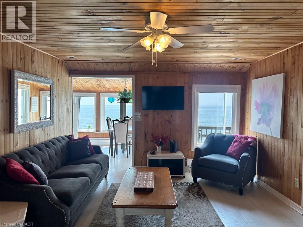 Peaceful Lake Erie retreat providing a rare blend of privacy, panoramic water views, and direct lakefront access. This 3-bedroom cottage features a spacious living area and a wall of lake-facing windows that fill the space with natural light and frame stunning views from sunrise to sunset. The property includes a garden shed for added storage, relaxing fire pit, and concrete steps leading down to the water. Located just down the road from Knight’s Beach Resort and short drive to Dunnville, this is an ideal opportunity for a serene lakefront getaway. (70138027)
