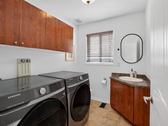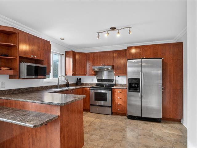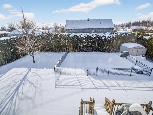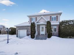 TURNKEY! Stunning two-storey, move-in-ready with natural light, located on a corner lot in a sought-after residential area of Saint-Lazare! Just steps from Grand-Pré Park, Des Étriers school, and close to all other amenities. Ideal for raising a family and for outdoor enthusiasts. Offering 3+2 spacious bedrooms, 1.5 bathrooms. Hardwood floors on the main level. brand new Central heating and air conditioning system. Finished basement with a flexible living space. A beautiful backyard with mature cedars alongside an elegant heated saltwater in-ground pool, a garage with backyard access, plus two separate driveway entrances... Hurry up! (54676531)