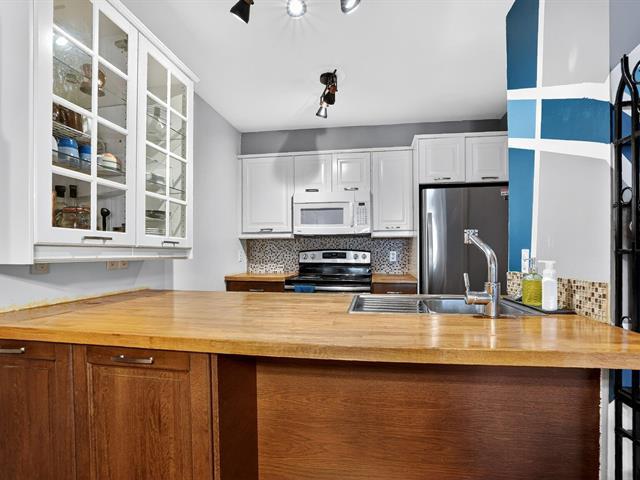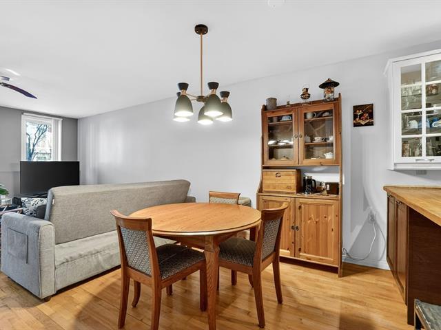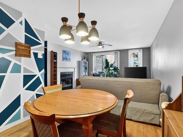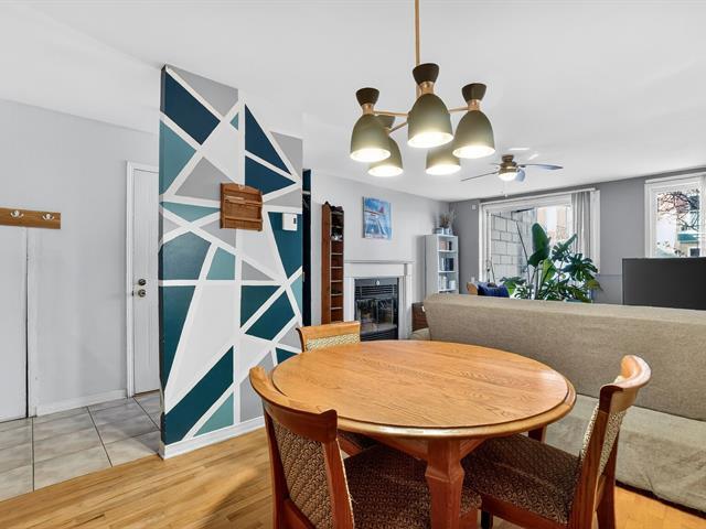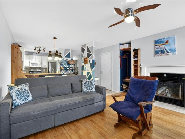 Charming terrace-level condo offering a bright and inviting living space with two bedrooms and large windows. The unit features an independent entrance, with the patio door often used as the main access, creating a warm, townhouse-style feel. Located on a quiet dead-end street with plenty of street parking and directly facing a park with playground, pool, wooded area, sports courts, and arena. Surrounded by green spaces and ideally located just 1.5 km from the REM Du Ruisseau station. Well-maintained co-ownership with welcoming neighbors. (57356283)