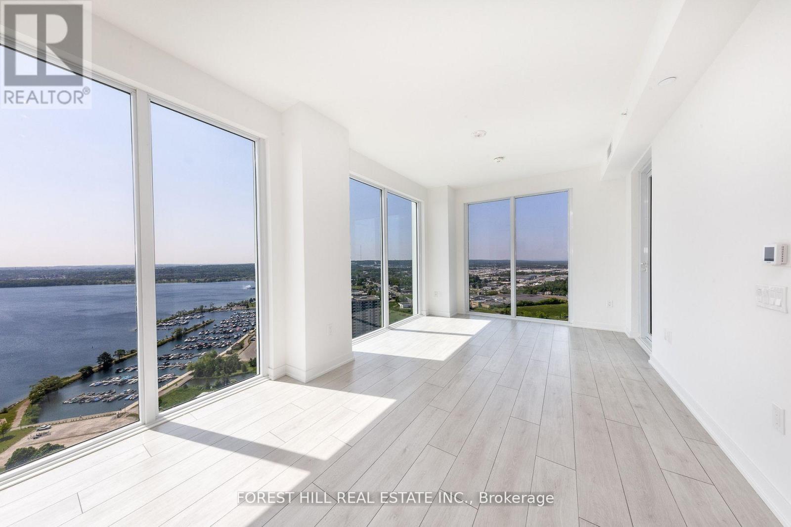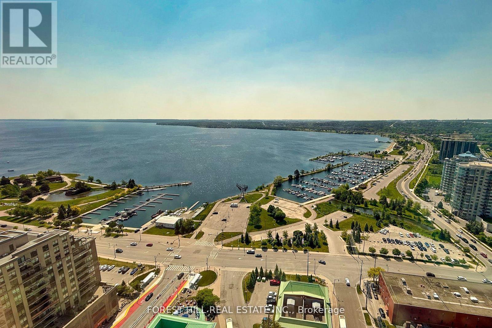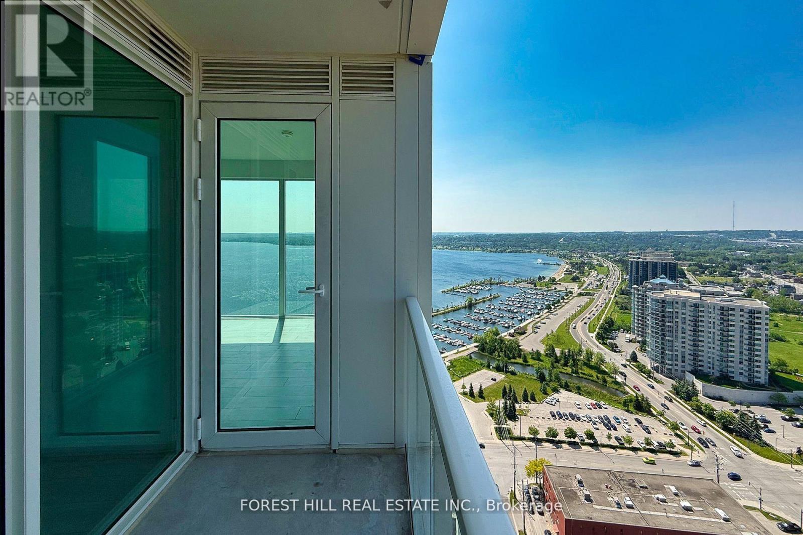 Incredible opportunity, Welcome to Suite 2709 at Debut Condos where luxury meets unmatched lakefront views Barrie's tallest and most iconic residence. This beautifully appointed 2-bedroom + den condo(Den can be used as a 3rd bedroom) offers over 1,000 Sq.Ft. of bright, open-concept living space with floor-to-ceiling windows and picturesque views of Kempenfelt bay. Enjoy a sleek, modern kitchen with state-of-the-art appliances that flows seamlessly into the living and dining area perfect for entertaining or relaxing. The primary suite features a spacious walk-in closet and private ensuite. Complete with premium underground parking located directly across from the elevators, this unit combines convenience and elegance. Just steps from Centennial Beach, Barrie Marina, dining, shopping, trails, and public transit, this unbeatable location is unmatched. (42101603)