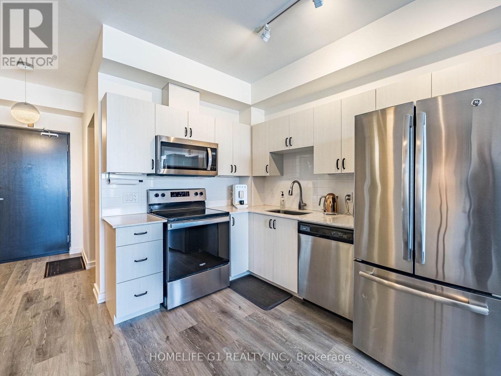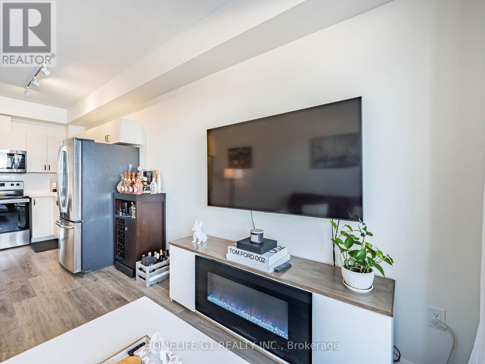Step into beautiful contemporary living with this stylish 1+1 bedroom. Den is perfect for asmall office or a small second room. Designed for comfort and functionality, the unit featuresin-suite laundry, a private large balcony, and a parking spot. Residents enjoy access to premium building amenities, including a fully-equipped fitness centre, party room, outdoor BBQ area, and electric vehicle charging stations. Freshly painted with neutral colors and Elegant kitchen decor. Very clean and spacious modern unit. Perfectly located just 4 minutes from Highway 400, this Condo offers seamless access for commuters while being close to shopping, dining, and everyday essentials. Whether you're a first-time buyer, downsizer, or investor, this is an opportunity not to be missed. (42101674)