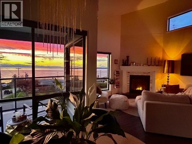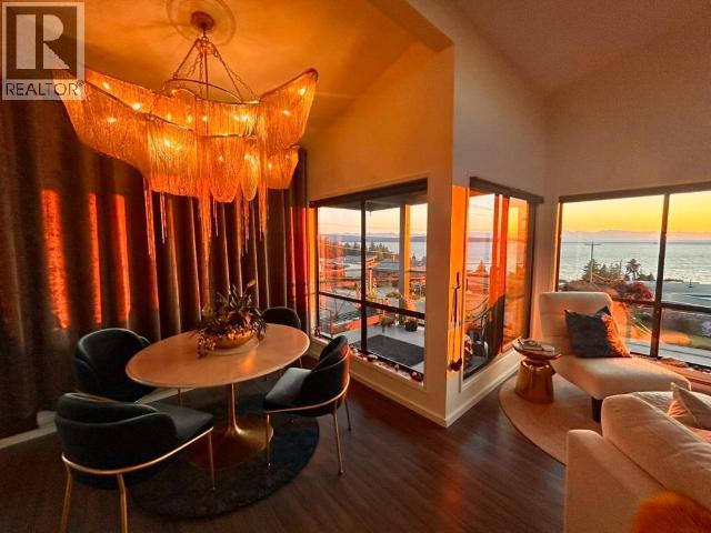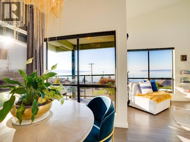 Perched in the top corner of a well-maintained building in a central residential neighbourhood, this 3rd-floor condo offers a rare sense of calm, light, and elevation. The interior is thoughtfully designed to feel as though you're living in the clouds. Finished in soft whites, the space enhances natural light while keeping the sweeping horizons as the focal point throughout. Vaulted ceilings frame awe-inspiring ocean views and unforgettable sunsets that colour-drench the rooms -- an atmosphere that photos simply cannot capture and must be experienced in person. The main living area opens to a wrap-around balcony from two rooms, complemented by a private balcony off the bedroom. Multiple vantage points allow you to enjoy the views throughout, including from the updated bathroom. Immaculately kept with a refined aesthetic, this home feels both comfortable and luxurious, with quiet neighbours and a peaceful setting. (29354339)