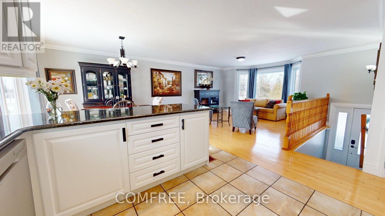 This raised bungalow offers the perfect balance of comfortable living and peaceful country surroundings, all set on a lovely 1-acre lot just minutes from historic Perth. The main level features a welcoming open-concept layout with a stylish kitchen with granite countertops, dining, and living areas designed for easy everyday life and entertaining. Three bedrooms and two full bathrooms complete this level, along with access to a raised deck overlooking an expansive yard with forest views. Maple hardwood and ceramic flooring runs throughout the main floor. The fully finished lower level adds exceptional versatility, featuring inside access from the heated double-car garage, a large recreation room with walk-out to a covered deck, a fourth bedroom, a third full bathroom, and a utility/laundry room. With no carpeting throughout the home, it's an ideal choice for those with allergies or pets. For hobbyists, gardeners, or anyone just wanting extra space, the property truly delivers. In addition to the heated attached garage (approx. 20' x 20'), there is a large detached garage/workshop (approx. 32' x 28') - perfect for hobbies, tools and/or toys to store. Ample indoor and outdoor parking includes an area large enough for an RV with power hookup. The grounds also feature two garden sheds and a fenced raised garden in a quiet neighbourhood setting on a school bus route with curbside garbage and recycling collection. This home has been thoughtfully maintained offering very affordable annual operating costs with no rental equipment and efficient natural gas heating & air conditioning. Excellent high-speed internet is also available. Recent updates include a new roof (2024), furnace, air conditioner, stove and dishwasher (2023). Check out this lovely versatile home that offers space and comfort, in a quiet country setting close to town! (42101867)