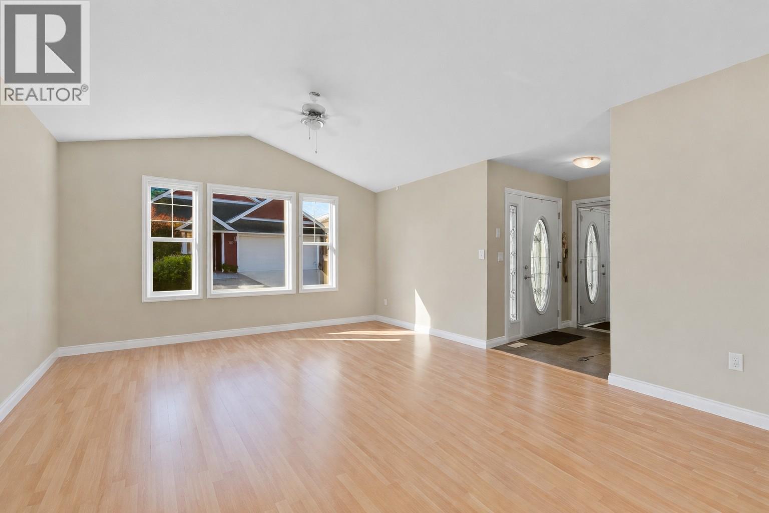 Rare opportunity in The Village at 10th & 10th, a desirable and well-kept 55+ community. This beautifully maintained 2 bed, 2 bath rancher offers the perfect blend of comfort, convenience, and low-maintenance living, all within easy walking distance to Piccadilly Mall, grocery stores, pharmacies, medical offices, restaurants, and everyday amenities. Step inside to a bright, welcoming layout featuring vaulted ceilings, an open living and dining area, and a functional kitchen with an eating bar, ideal for casual meals or entertaining. The spacious primary bedroom easily accommodates larger furniture and offers direct access to a full bathroom. Designed for true single-level living, this home has no stairs, making it an excellent choice for downsizers or anyone seeking accessible comfort. A flat driveway and attached single-car garage add to the everyday ease. Recent upgrades include a newer furnace and hot water tank, providing peace of mind and year-round efficiency. Outside, enjoy a quiet, friendly community where pride of ownership is evident throughout. RV parking is available through the strata, and the low strata fee of $120/month helps keep ownership affordable. Additional highlights include appliances included, one small pet permitted with approval, and a well-managed strata. Quick possession is available. If you’ve been searching for a lock-and-leave lifestyle in a welcoming community close to everything Salmon Arm has to offer, this is a rare opportunity to enjoy comfort, simplicity, and convenience in one complete package. (39709811)