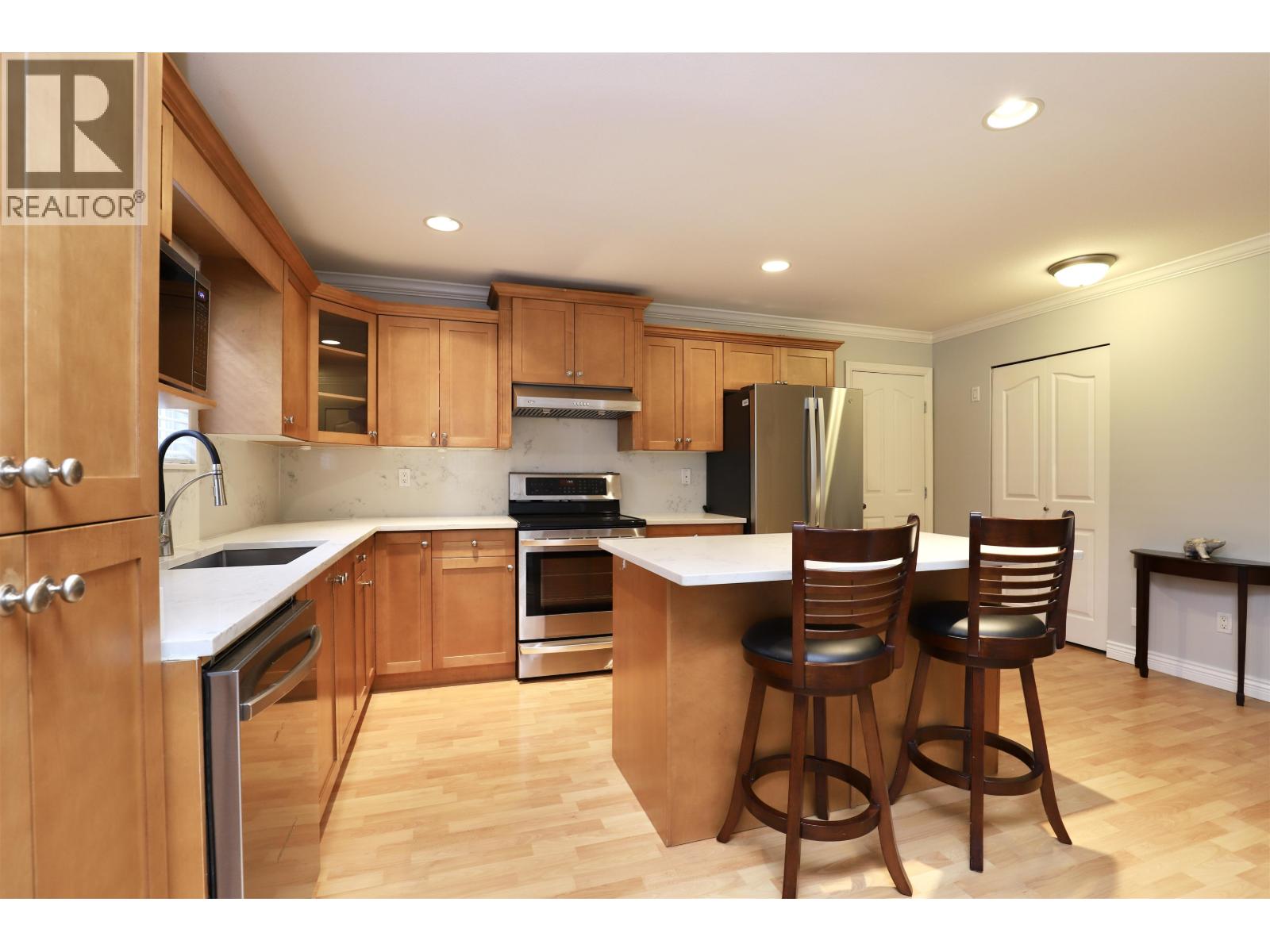 Discover this stunning home in a fantastic, family-friendly neighborhood! This basement entry house, spanning 3350 sq ft, features 4 bedrooms, 2 dens, and 3 bathrooms, and it backs onto a peaceful greenbelt. The bright kitchen, complete with an island opens to the family room and a spacious private deck. The generously sized dining and living rooms are perfect for hosting large family gatherings. On this main floor, you'll find 3 bedrooms, including a spacious primary suite with a walk-in closet and a 5 piece ensuite bathroom. The entrance level features a fully above-ground, custom-designed 1-bedroom and den suite, ideal for in-laws or adult children. Enjoy a private patio with a view of the protected greenbelt! Situated on a quiet street, walk to school and shops. (32422419)