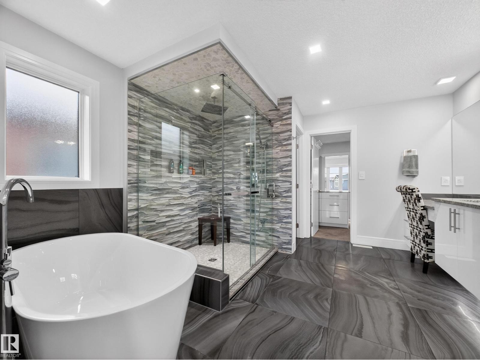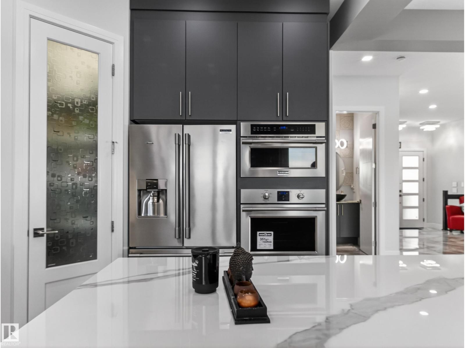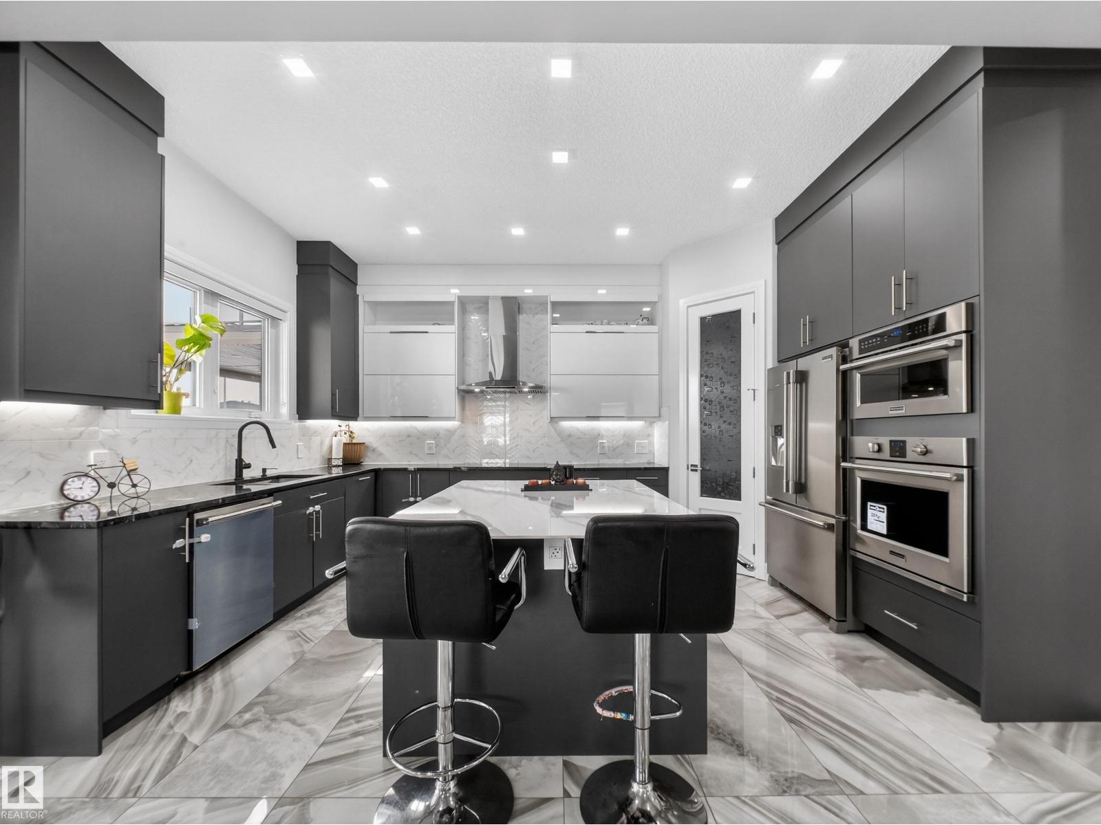 THIS IS A DREAM!...HUGE YARD BACKING PARK/POND...LEGAL BASEMENT SUITE w/SEPARATE ENTRANCE...6 BED/5.5 BATHS...HIGH END FINISHES...DREAM KITCHEN...CLOSE TO EVERYTHING!... ~!WELCOME HOME !~ This home has details that you need to come see for yourself! 10 FT CEILINGS/COFFERED CEILINGS everywhere, with tons of accent lighting throughout home. CHEF KITCHEN, featuring stone countertops, induction cooktop, wall oven, modern custom cabinetry. Primary suite has amazing private balcony, walk-in closet/builtins & spa-like ensuite. Two more bedrooms up, one having an ensuite also! INFLOOR HEAT in ensuites too! Enjoy the INCOME of the legal basement suite, or use as in-law suite. Other bonuses - partially covered deck, oversized double garage, SOLAR PANELS, central vac roughin. HUGE BACKYARD backing onto a pond and walking trail. ++ pot lights throughout, solar panel & central vac rough-ins. Close to schools, shopping, parks, walking trails, Whitemud & Anthony Henday. What more could you want?!! (33807644)