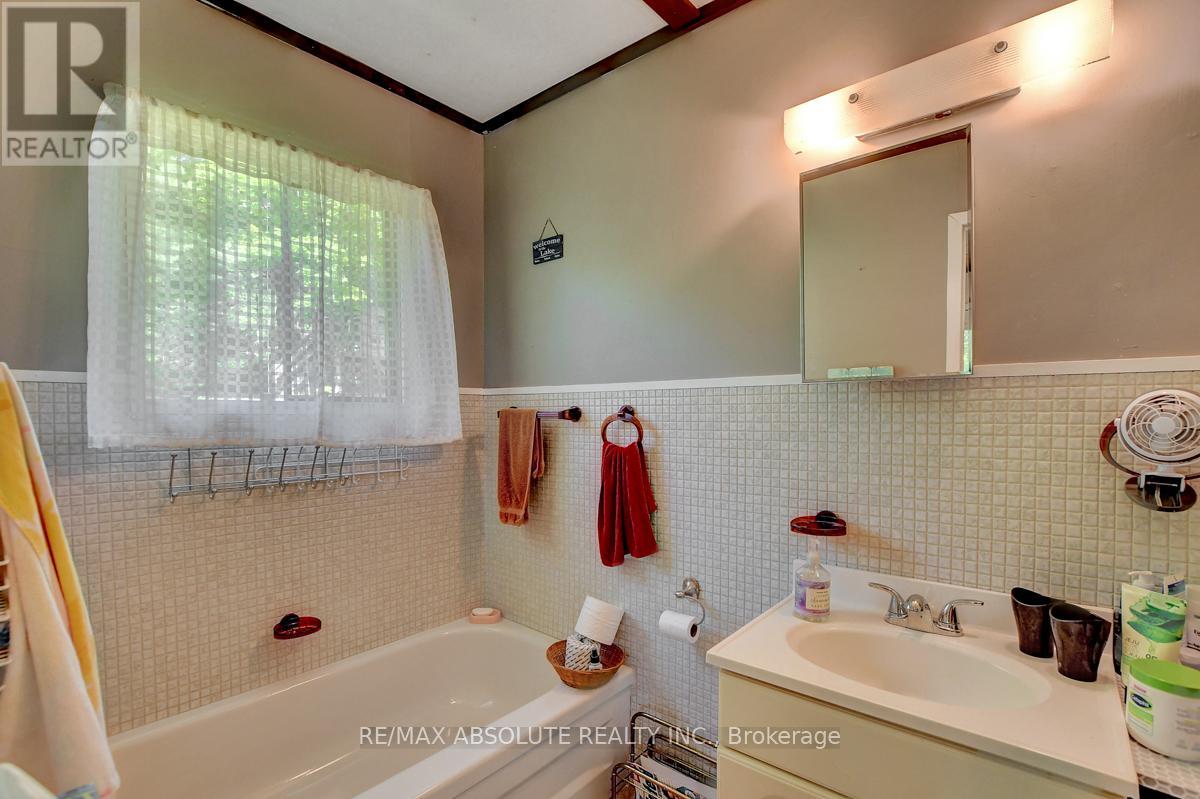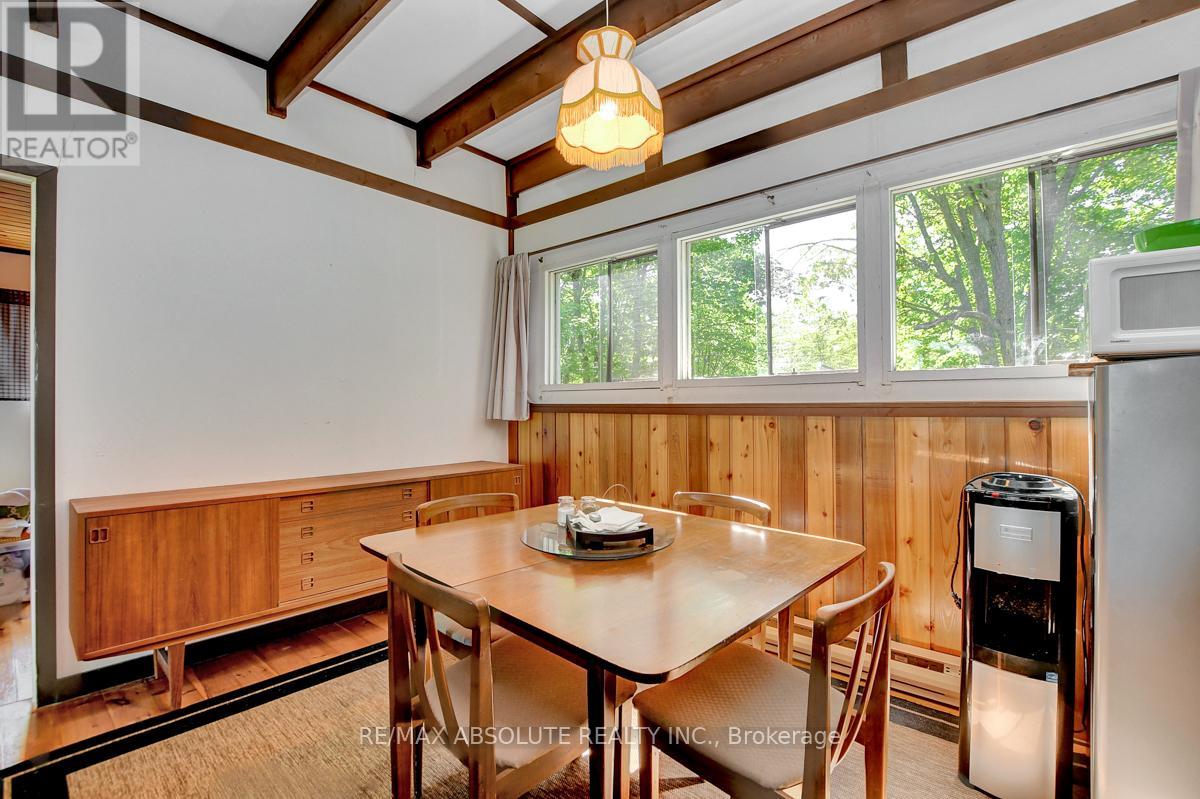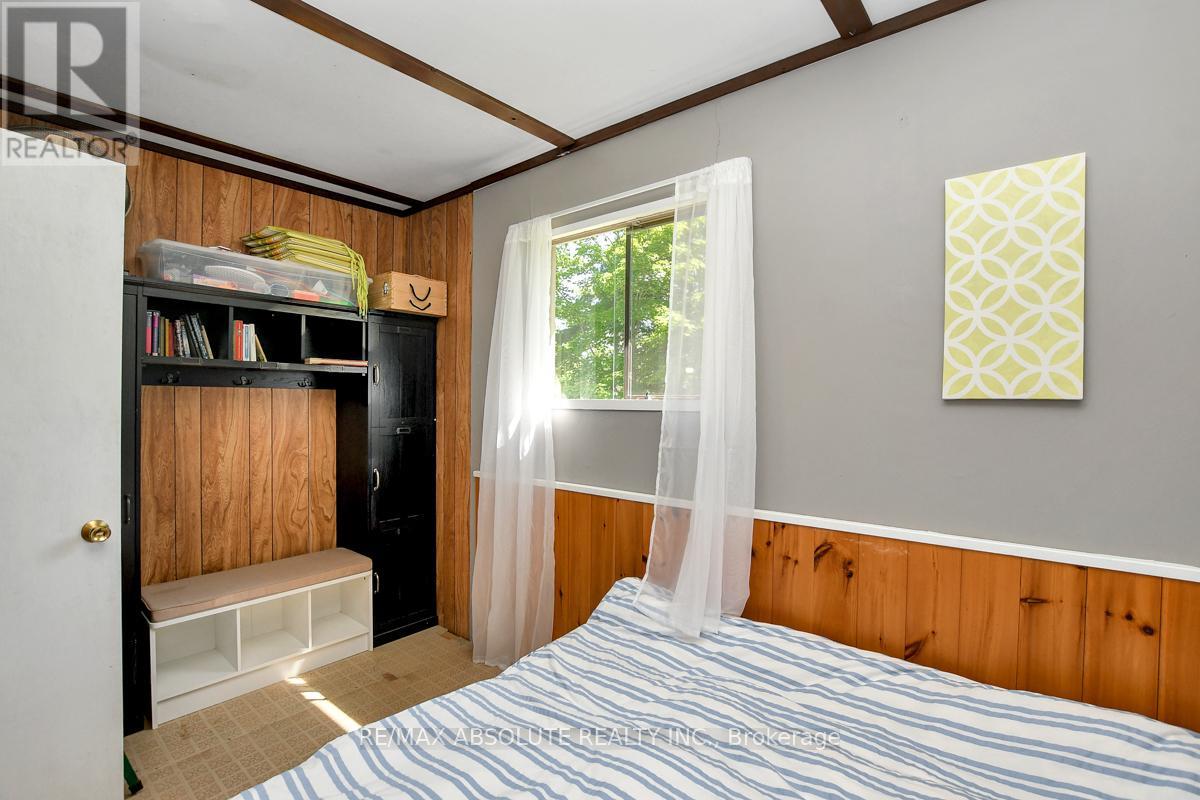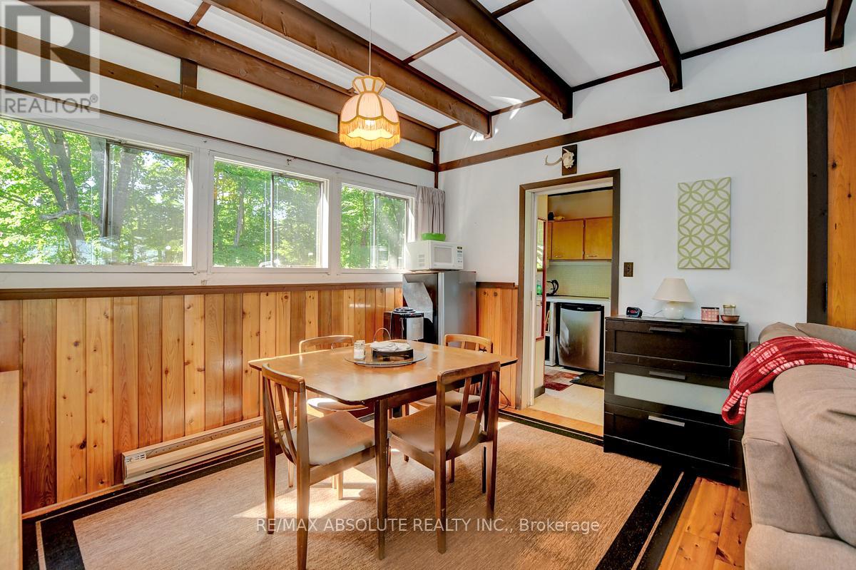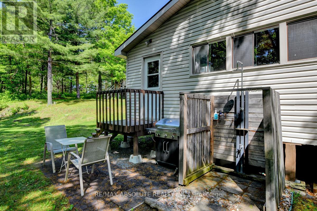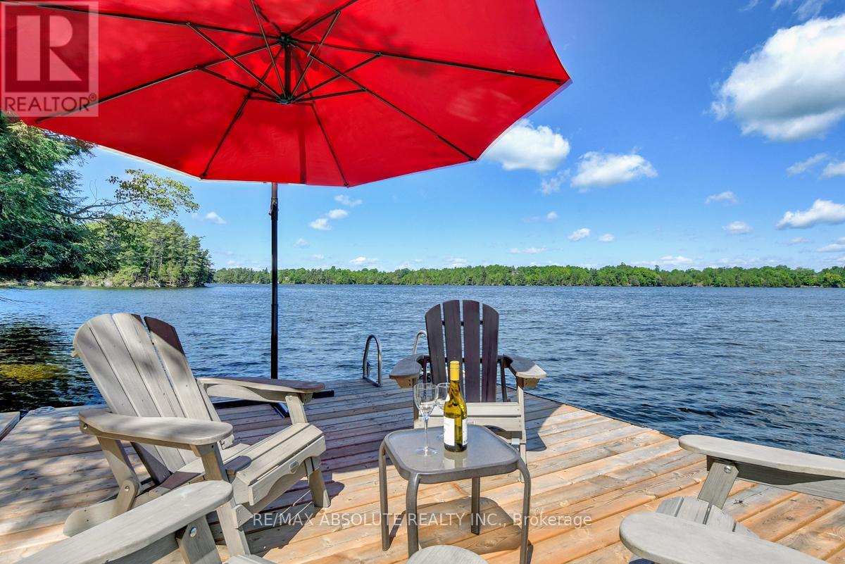 Rare opportunity to own 6.9 acres of waterfront with approximately 850 feet of shoreline and mature mixed forest offering exceptional privacy. This rustic three-season cottage features tongue and groove pine ceilings, a durable metal roof, and an open-concept living area with expansive lake-facing windows. Three bedrooms provide cozy accommodations, while a screened sunroom and spacious deck are ideal for outdoor entertaining. Set slightly elevated, a newer staircase leads down to the water and a large dock in a private bay, perfect for swimming and boating. Property offers excellent future potential to enjoy as-is, build, or explore severance possibilities (buyer to complete due diligence with township). Water source is lake intake. Annual road maintenance fee $134. 24-hour irrevocable on all offers. (42102553)