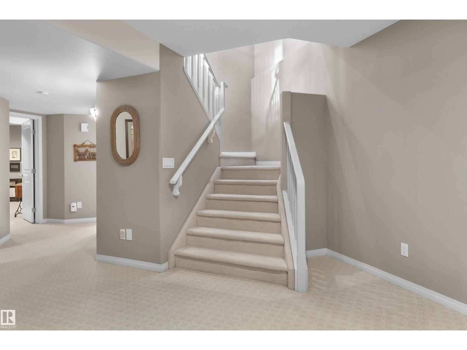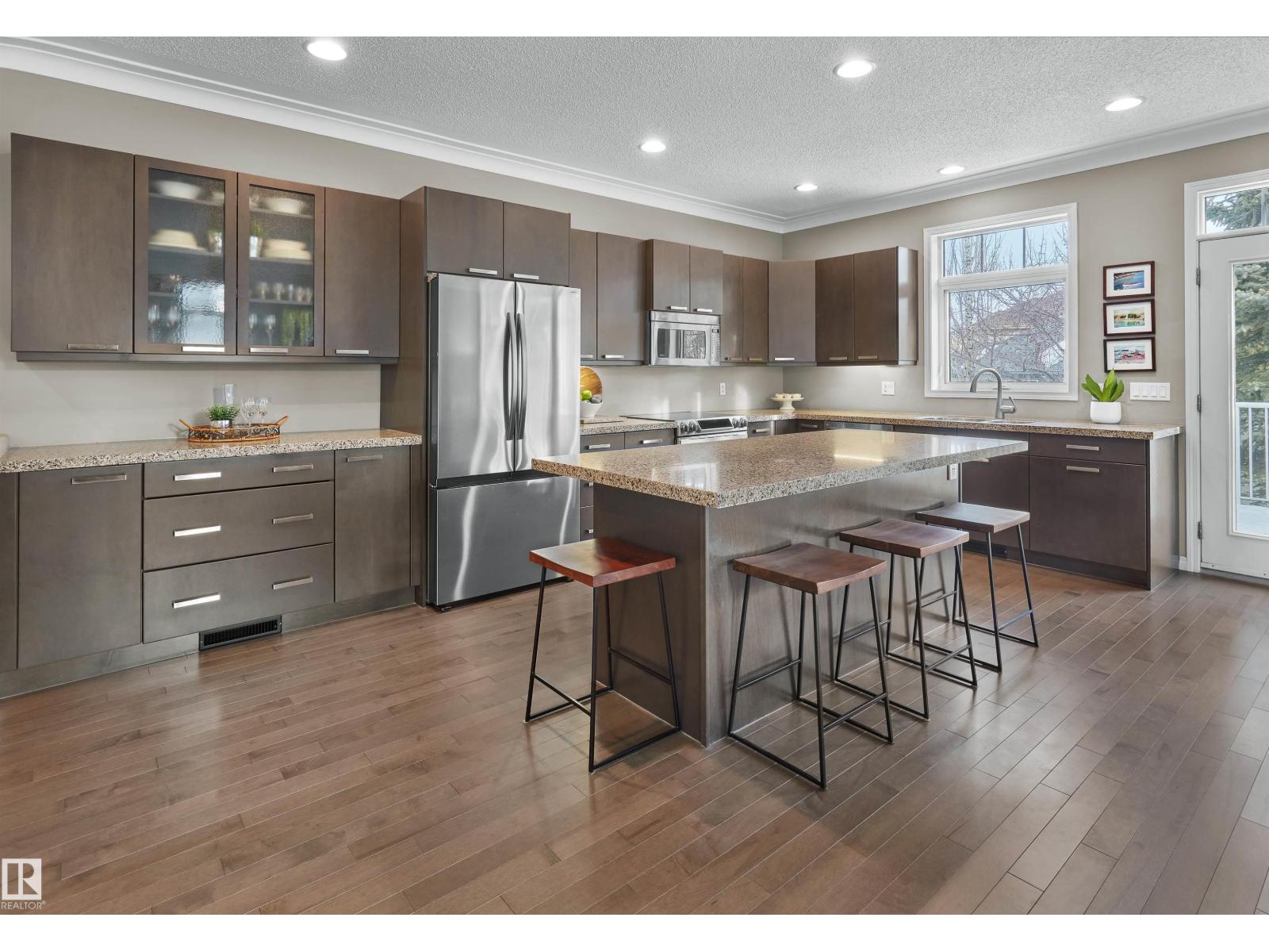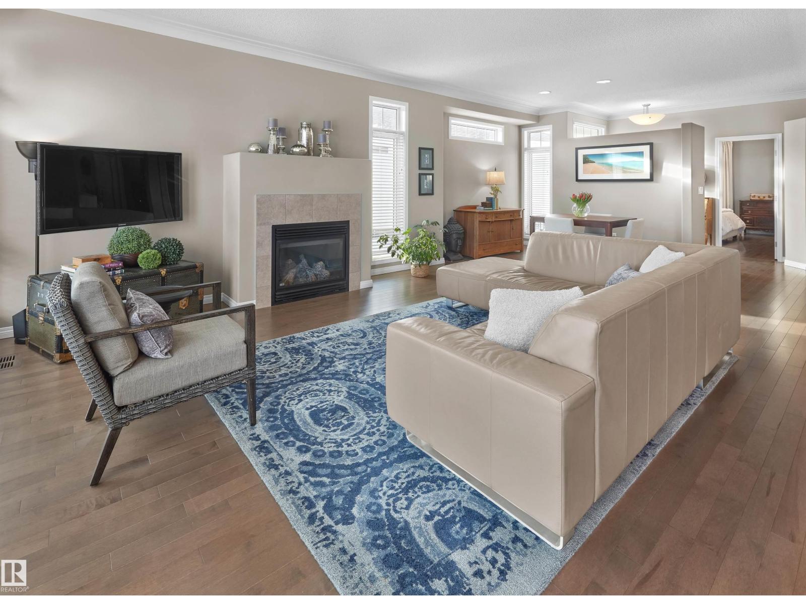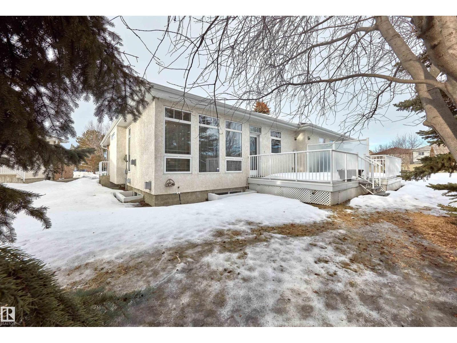 Tucked away in a peaceful Leger cul-de-sac, this beautifully maintained BRASS THREE half-duplex bungalow offers the feel of a single-family home—with NO CONDO FEES! Warm hardwood floors, a bright island kitchen with stainless appliances, and a cozy fireplace create an inviting main floor. The primary suite features a generous walk-in closet and a 5-piece ensuite. The finished basement adds another bedroom, rec room, flex spaces (perfect for a gym or office), a second fireplace and abundant storage. Enjoy summer evenings on the private deck, plus the convenience of a generous attached garage. Over 2,500 sq. ft. of total living space, steps to shopping and amenities at Rabbit Hill Rd & 23 Ave. Exceptional value in a friendly community with great neighbours! HOA fee covers landscape and snow removal and fences. (33807729)