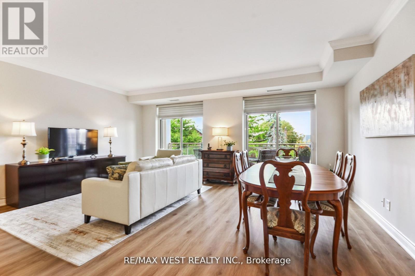 Prime Location in the Heart of Market Lane! Steps from shops, restaurants, and all amenities, this beautifully renovated condo combines the comfort of a home with the convenience of condo living. Featuring a gourmet chefs kitchen with quartz countertops, quartz backsplash, oversized island, and premium stainless steel appliances, this kitchen surpasses those found in many houses. The bright, open-concept layout boasts 9 foot ceilings with crown molding, new luxury vinyl flooring throughout, and a spacious living/dining area that flows seamlessly to a large west-facing balcony with gas BBQ hook up perfect for entertaining. The unit offers 2 generous bedrooms, 2 bathrooms, a walk-in closet with custom organizers, and in-suite laundry with laundry tub . Enjoy outstanding building amenities including a fitness centre with sauna, party room, bike storage, concierge/security, guest suite, and visitor parking. Just minutes to transit, highways, trails, Vaughan Business Centre, this residence is the perfect blend of elegance, comfort, and convenience. Don't miss this rare opportunity to own in one of Woodbridge's most sought-after locations! (42102904)