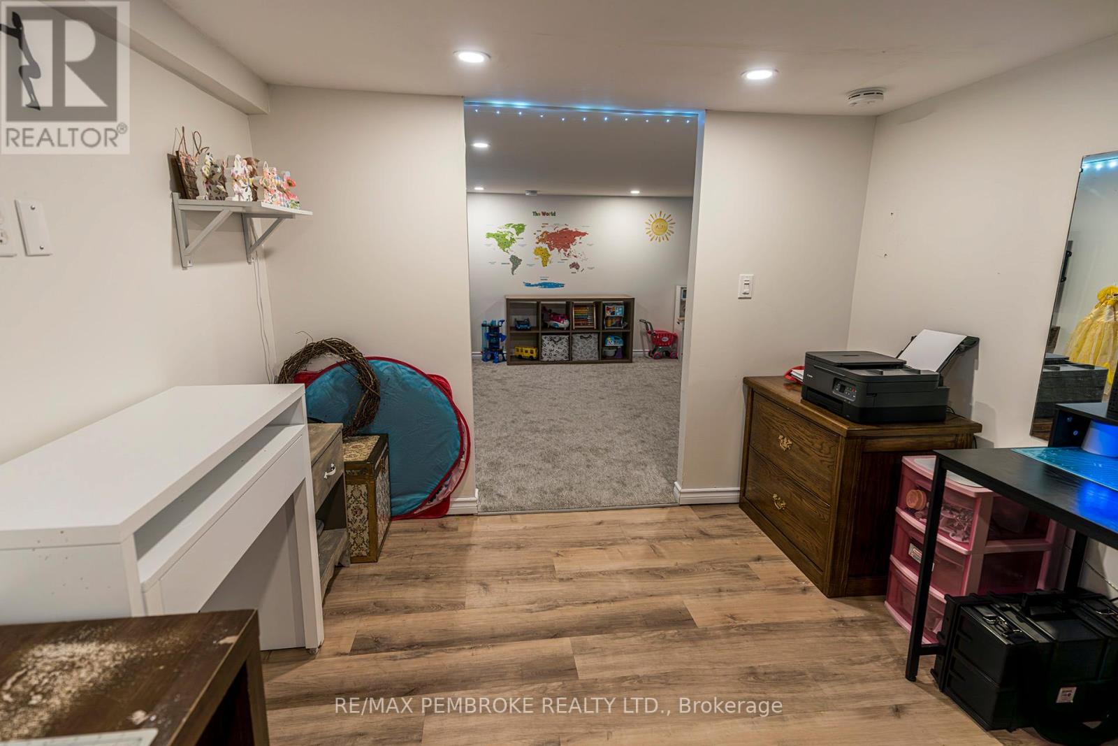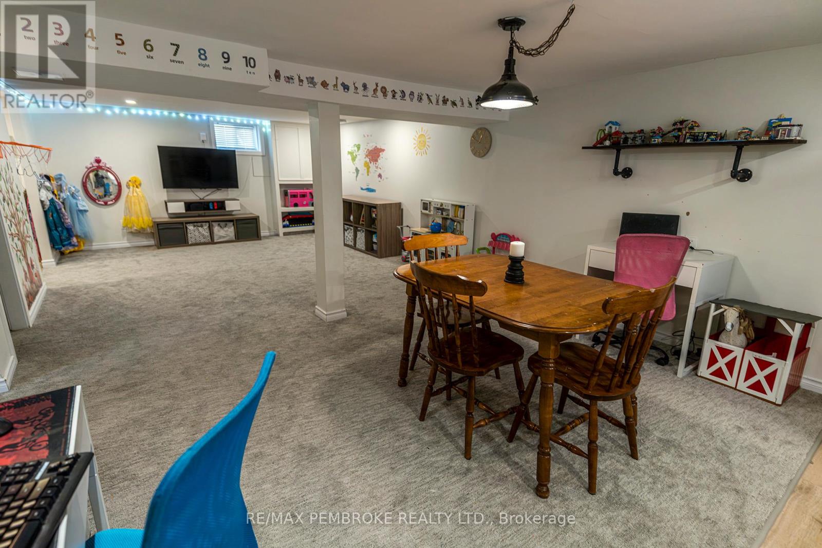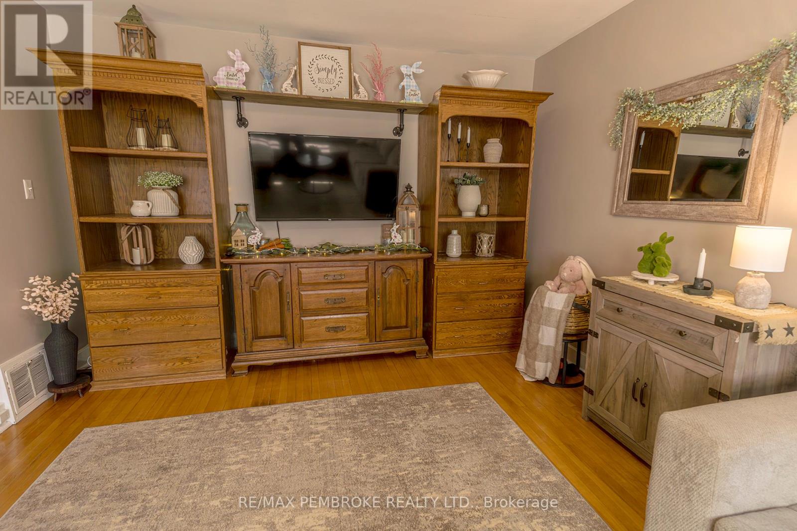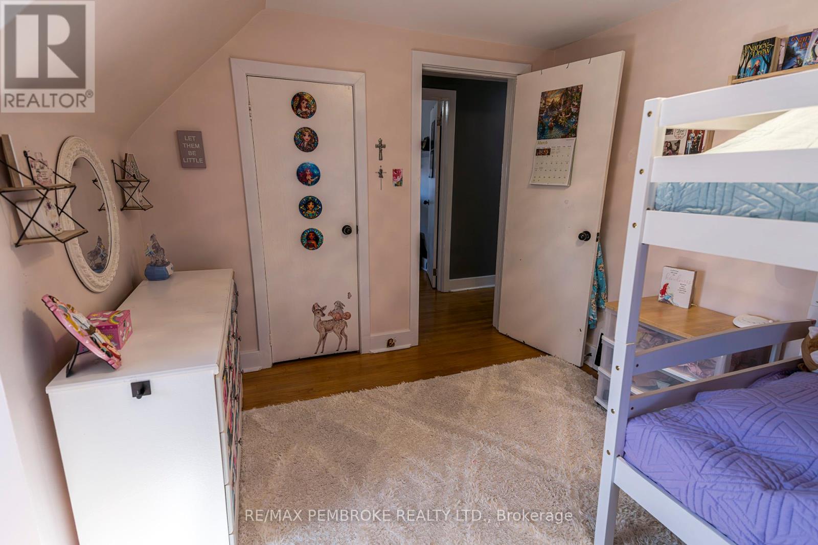 Exceptional brick 2 Storey family home, close to schools, shopping and the Pembroke Regional Hospital. Enter the large breezeway/mudroom, leading into a LARGE updated, modern white kitchen with ample cabinets and tons of counter space including a handy breakfast nook. A convenient full bath and laundry are also on the main level. The Living room and formal dining room are bright filled with natural light and roomy with hardwood flooring and numerous windows. Upstairs you will find 3 spacious bedrooms - all with hardwood floors and a modern 4pc bath. Head downstairs to a finished basement with another bath (2 pc), a family room with a kitchenette. Loads of space in this charming family home. A bonus exercise room is off the breezeway. Outside is a oversized deep fenced in lot with patio area with pergola and LARGE storage shed. (42103174)