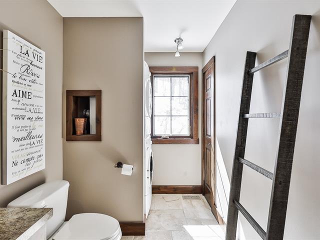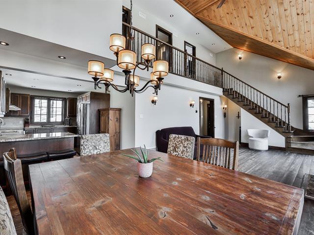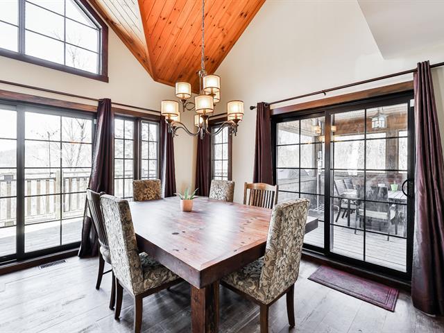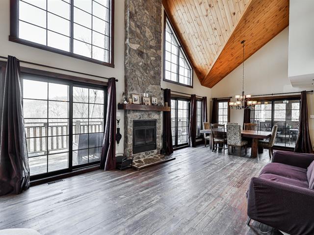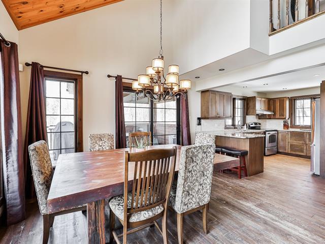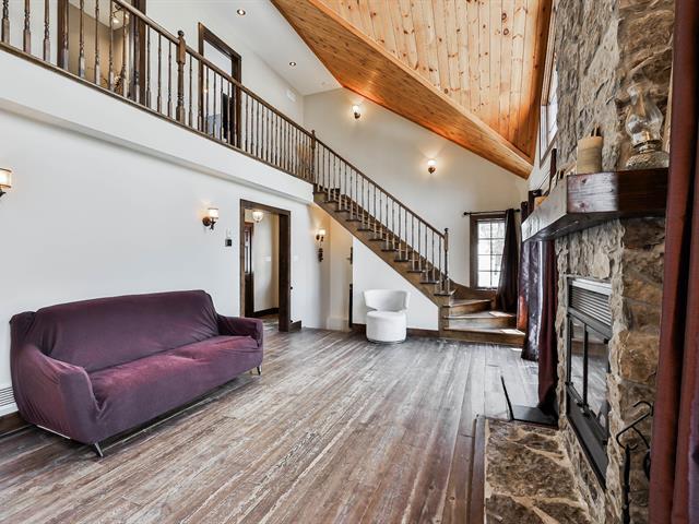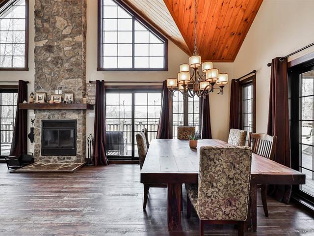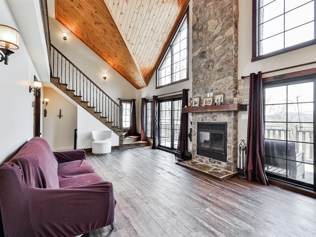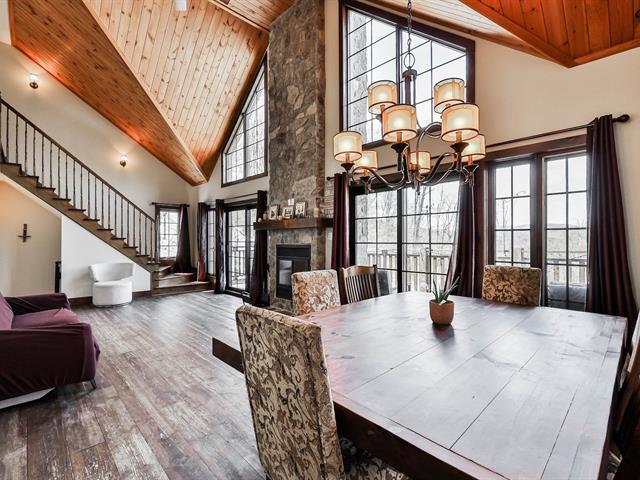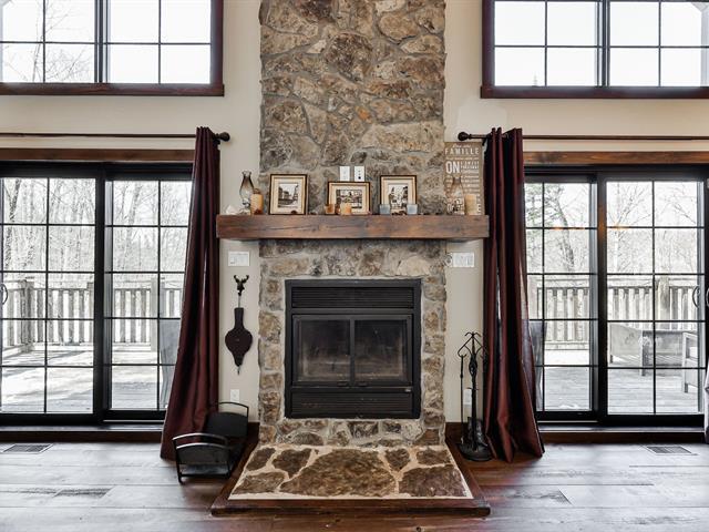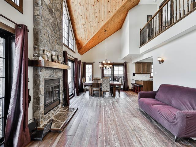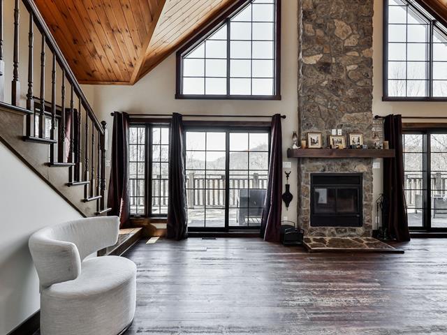 Charming property nestled in the heart of the Laurentians, featuring warm architecture with stone and wood accents. 17-foot cathedral ceiling in the living room, abundant windows, and an impressive fireplace. It includes 4 bedrooms, a modern kitchen, and an open-concept main floor, creating a welcoming atmosphere for the whole family. All rooms are spacious and offer views of the mountains or surrounding nature. Large terrace oriented to enjoy the sunsets. Private lot, lake access, and close to services. A perfect balance between nature and comfort. (45354221)