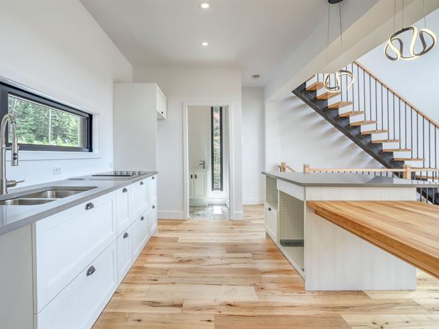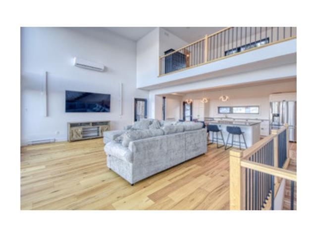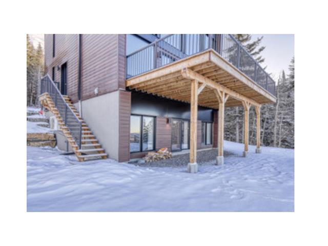 Possibility of a 3rd bedroom on the ground floor. Nestled in the Mont-Jasper estate with a breathtaking view of Lac Archambault in Saint-Donat, this property features 2 bedrooms and 2+1 bathrooms. Set on 89,000 square feet of land, it offers a quiet, intimate lifestyle. The design of this luxurious residence offers 1,300 square feet of living space. From the moment you enter the home, the main living area, which includes the kitchen and dining room, welcomes you with spectacular lake views. The high cathedral ceiling, open-plan concept and large windows on 3 levels create a luminous atmosphere. GST/QST must be added to the asking price (51016435)