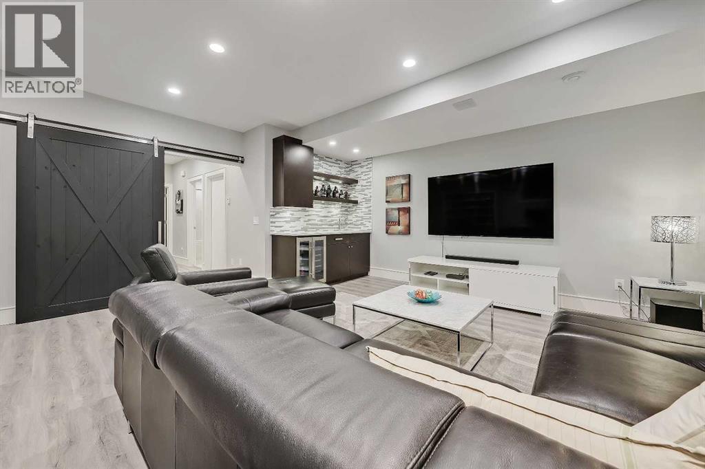 STYLE, COMFORT, AND LOCATION. Experience the best of Marda Loop living in this gorgeous semi-detached home located in the highly sought-after Richmond community. Just a quick 10-min walk away from shops, amenities, fitness studios, restaurants, and more! Families will appreciate the proximity to schools, parks, and playgrounds. Recently renovated and meticulously maintained, this home boasts over 2,700 sq ft of developed living space, 4 beds and 3.5 baths, a spacious basement, a private fenced backyard, and a double detached garage. This is a perfect opportunity for anyone seeking the best of inner-city living. Step inside through the oversized custom fibreglass front door into the welcoming formal front foyer with tiled flooring and a large closet. The main floor features engineered hardwood flooring throughout, leading to the bright formal dining room, which offers plenty of room for a full furniture arrangement. The modern kitchen features ample cabinetry and counter space, quartz counters, and a central island with bar seating, dual basin stainless steel sinks with a garburator, and a full stainless steel appliance package. The adjacent dining nook with an accent stone wall is a great spot for casual meals. The expansive living room boasts a custom built-in entertainment center with display shelves and pull-out drawers, and a tiled gas fireplace. High-end Pella glass sliding doors lead to the rear deck and backyard. Just off the living room is a convenient tiled mudroom with a pocket door, built-in storage, hooks and access to the backyard. Neatly tucked away, a 2pc powder room with tiled flooring completes the main floor. The upper floor showcases an impressive primary bedroom with large windows, a private balcony, a walk-in closet, and a luxurious 5pc ensuite. The ensuite features a quartz vanity with dual sinks and storage, a drop-in soaker tub with a handheld shower wand and tile surround, and a fully tiled stand-up shower. Two additional bedrooms with overs ized windows and large closets, a main 4pc bathroom, and a tiled laundry room provide comfort and convenience. Downstairs, the fully developed basement features luxury vinyl flooring and in-floor heating throughout. A modern barn door opens into the massive rec room, which features a wet bar with a beverage fridge, quartz counters and tiled backsplash, and shelving. Down the hall, you’ll find a wine room with 10 mm glass enclosure, a guest bedroom with a walk-in closet, and a sleek 4pc bathroom. Outside, enjoy a composite deck, stone patio, grassy area, gas line for BBQs, and an insulated, drywalled, double-detached garage. Additional features include a high-efficiency furnace, central A/C, new roof (2024), new front door (2023), new main-floor sliding doors (2023), and a new fridge (2024). Don't miss out on this exceptional property that offers style, functionality, and an unbeatable location. Schedule your showing today and discover the best of Marda Loop living! (31619902)
