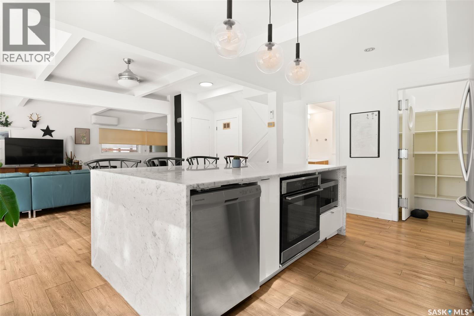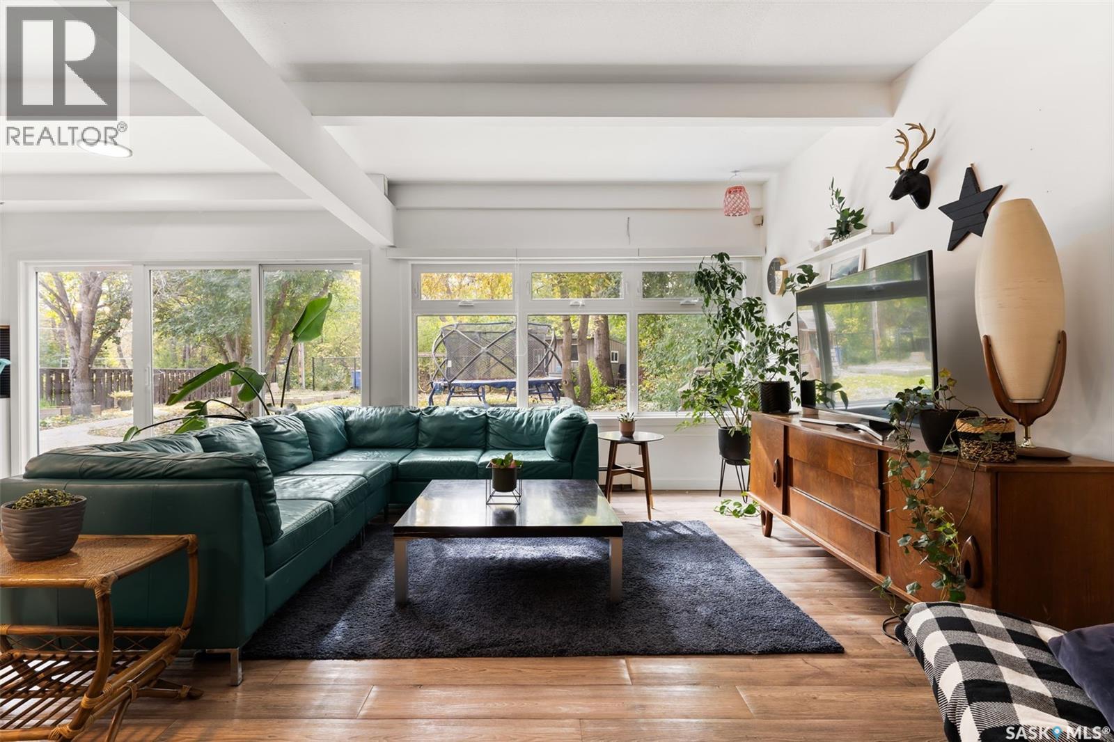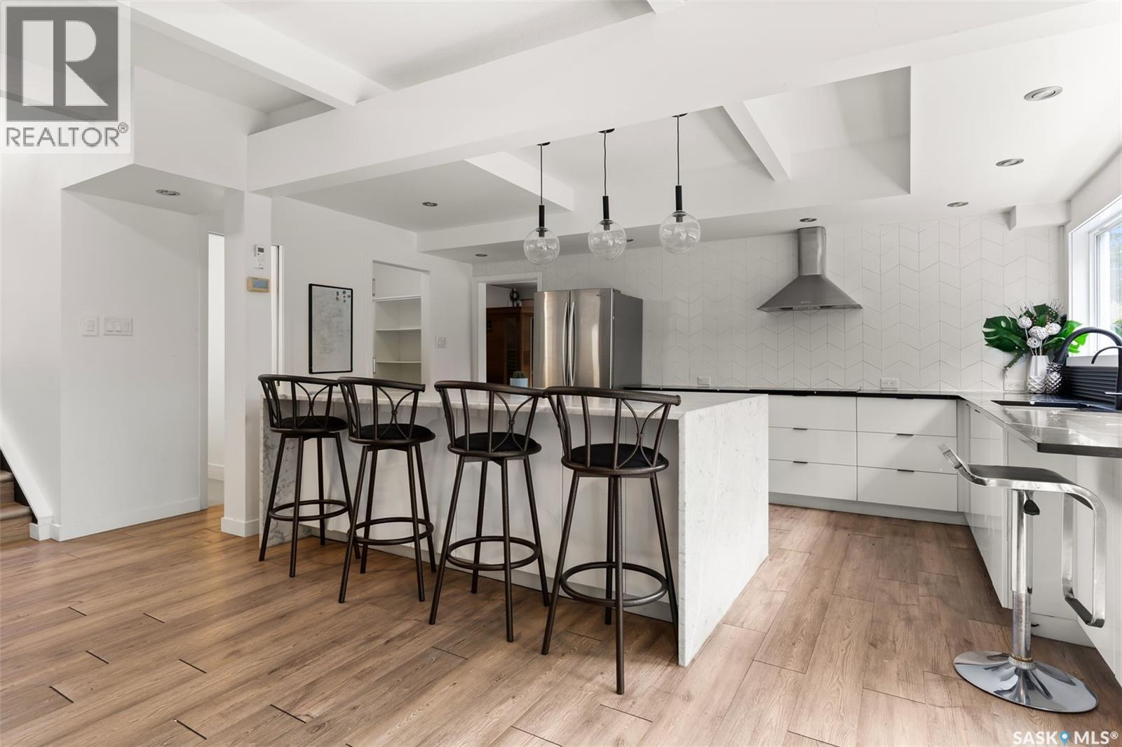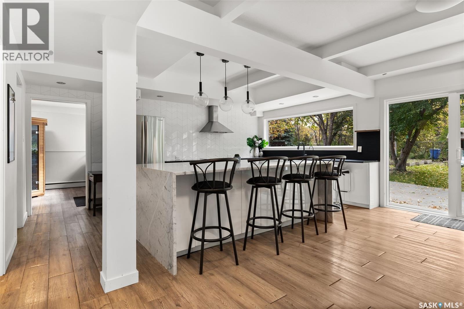 Welcome to 3051 Quinn Drive, a beautifully updated mid-century modern home in Regina’s desirable Arnhem Place neighbourhood. This rare property is steps away from the lush green spaces of Wascana Park, offering unmatched access to walking trails, playgrounds, and the lake just steps from your door. This split-level home boasts over 2,500 sq. ft. of living space with an open-concept design, exposed beams, and oversized windows that fill the home with natural light. The stylish kitchen features quartz countertops, modern cabinetry, stainless steel appliances, a gas range, and a large island with seating. Multiple living areas, including a sun-filled living room and lower-level family/media room, provide flexibility for both relaxation and entertaining. The home offers 3 bedrooms and 3 bathrooms, including a spacious primary suite and updated spa-like bathrooms. A sauna, versatile recreation spaces, and contemporary finishes enhance everyday comfort. Outdoors, the private backyard is a true retreat with mature trees, a large patio, raised garden beds, and room for kids to play. The property also includes a double attached garage and additional driveway parking. Located in one of Regina’s most sought-after areas, you’ll enjoy the perfect balance of nature and convenience, with schools, downtown, and amenities all nearby. Don’t miss this opportunity to own a one-of-a-kind home in an incredible park-side location! (29363852)