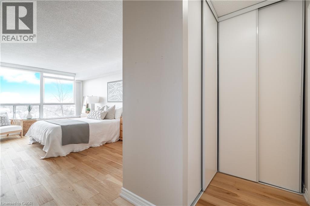 Welcome to effortless luxury living at the Grande Regency, where space, light, and location come together in this beautifully appointed 2-bedroom plus den, 2-bath condominium spanning 1,130 sq. ft. The interior features a smart, functional layout with generously sized principal rooms and oversized windows that fill the space with natural light. The expansive living and dining areas are ideal for entertaining or relaxing, while the large, bright eat-in kitchen is equipped with newer appliances, offering everyday comfort and functionality. The den is highlighted by large windows and an expansive view, making it an ideal home office or a peaceful retreat to sit back, unwind, and take in the scenery. Two spacious bedrooms provide comfort and privacy, with the primary suite offering a calm and inviting escape at the end of the day. In-suite laundry and one parking space complete the package. Living at the Grande Regency means enjoying an exceptional collection of amenities designed to enhance everyday living. Residents enjoy a heated outdoor pool, fitness centre, sauna, tennis, squash, and racquetball courts, rooftop lounge and terrace, party and game rooms, library, guest suites, 24-hour concierge and security, ample visitor parking—delivering true resort-style living year-round. This is an all-inclusive building, covering, heat, hydro, water, A/C, high-speed internet, cable, and building insurance. Perfectly positioned near the lakefront, Spencer Smith Park, and Burlington’s vibrant downtown core, this home offers exceptional walkability to shops, cafés, boutique stores, and top dining destinations. This is a rare opportunity to own a spacious, well-maintained condo in a premier community where convenience, comfort, and lifestyle come together at your doorstep. (70138879)