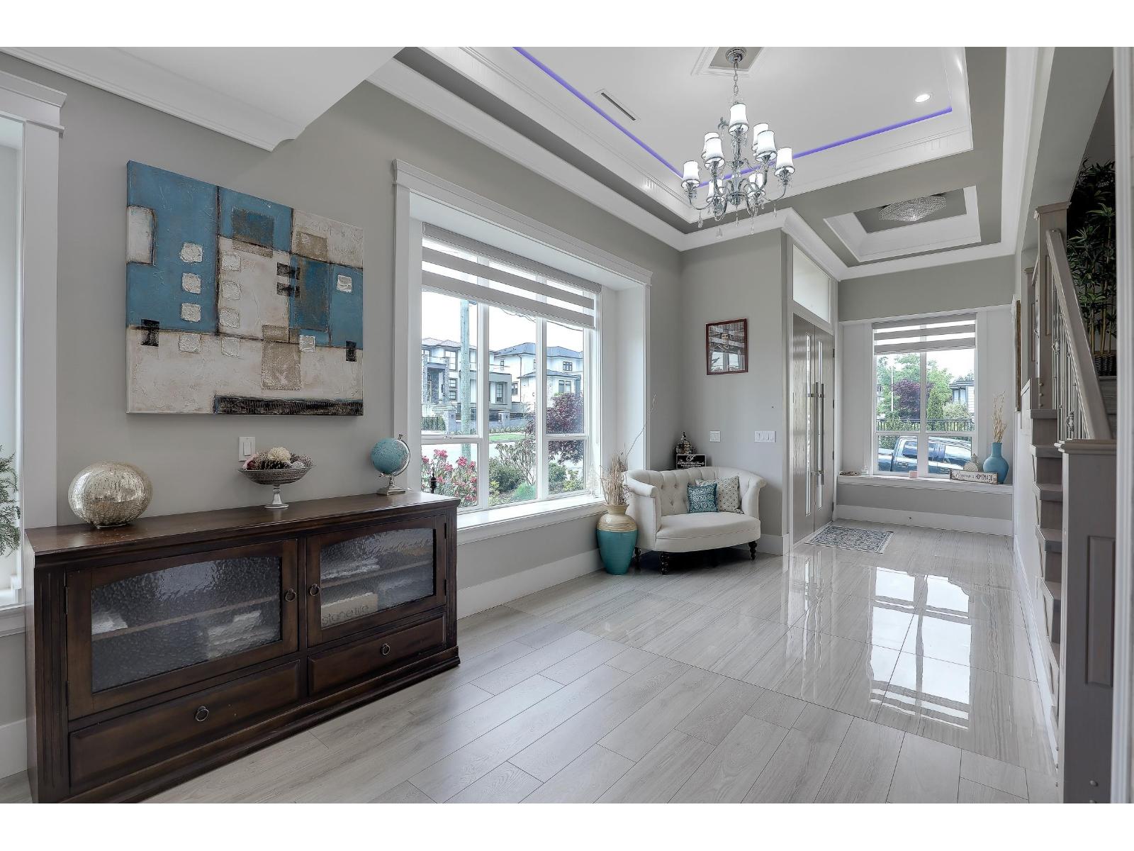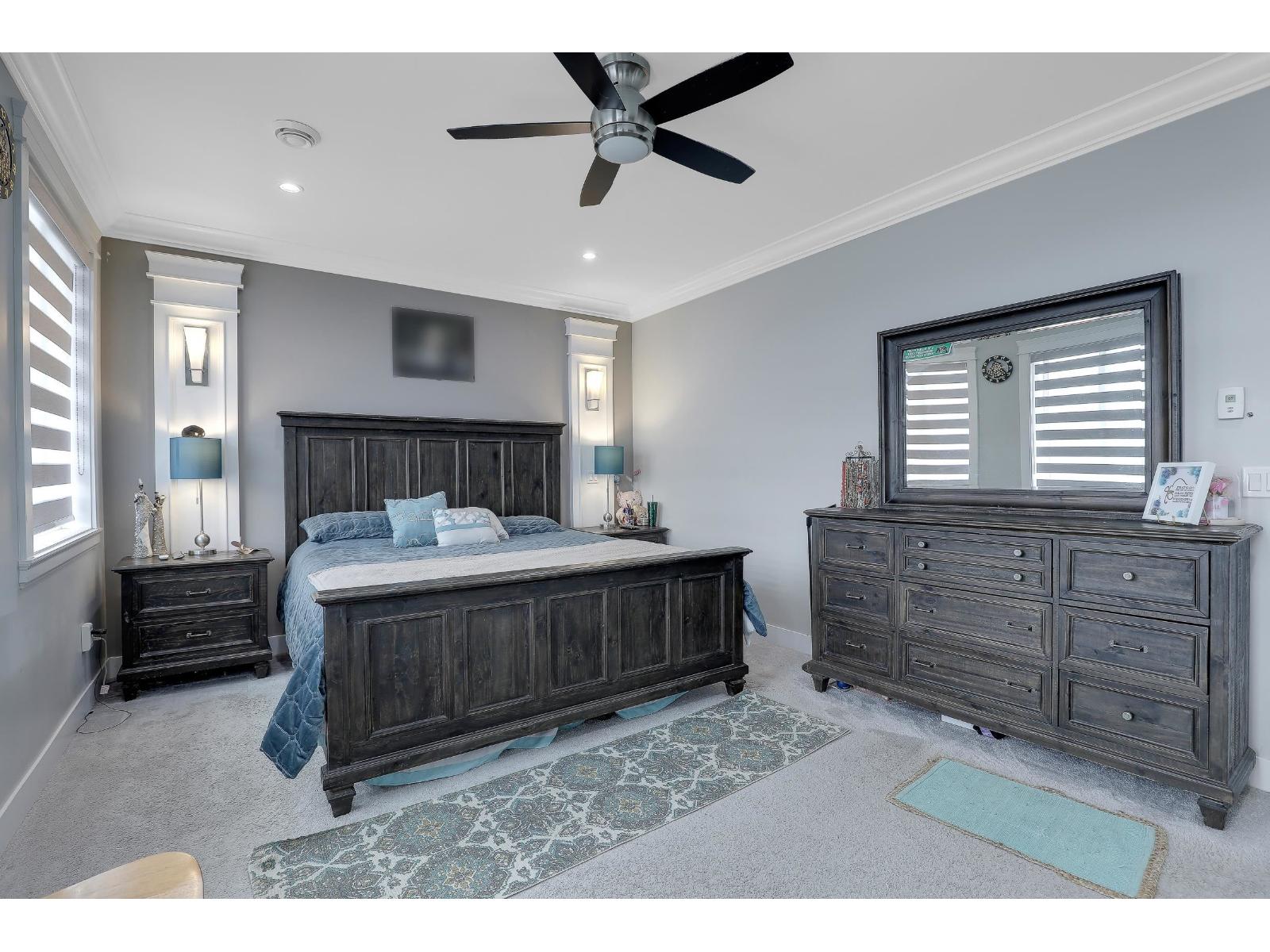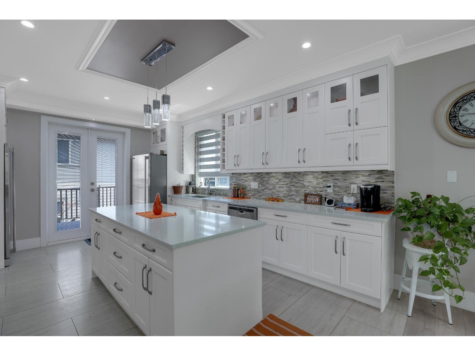 Located in the prestigious Cloverdale neighbourhood, this custom-built, well-maintained home sits on a lot exceeding 6,000 sq. ft. and offers stunning Mt. Baker views from the top floor. The upper level includes four spacious bedrooms, two with ensuite bathrooms. The main floor features a modern kitchen with granite countertops and stainless steel appliances, a secondary work kitchen, an expansive living area, and a covered deck. The basement includes a two-bedroom suite plus an additional one-bedroom suite, ideal as mortgage helpers. Notable features include elegant crown mouldings, updated fixtures, radiant heat, air conditioning, a jetted jacuzzi, and a security camera system. The property is conveniently located near Willowbrook Mall, Crescent Heights Academy, local schools, and KPU. (32422661)