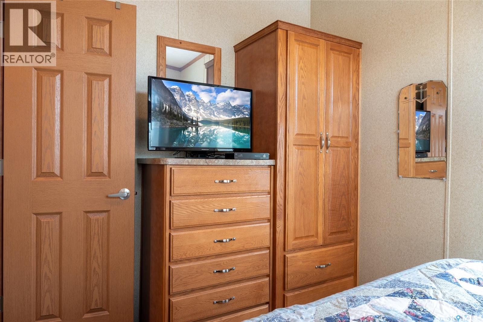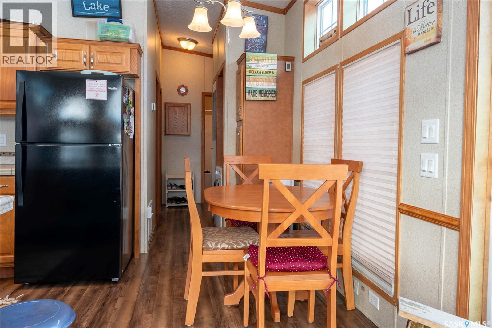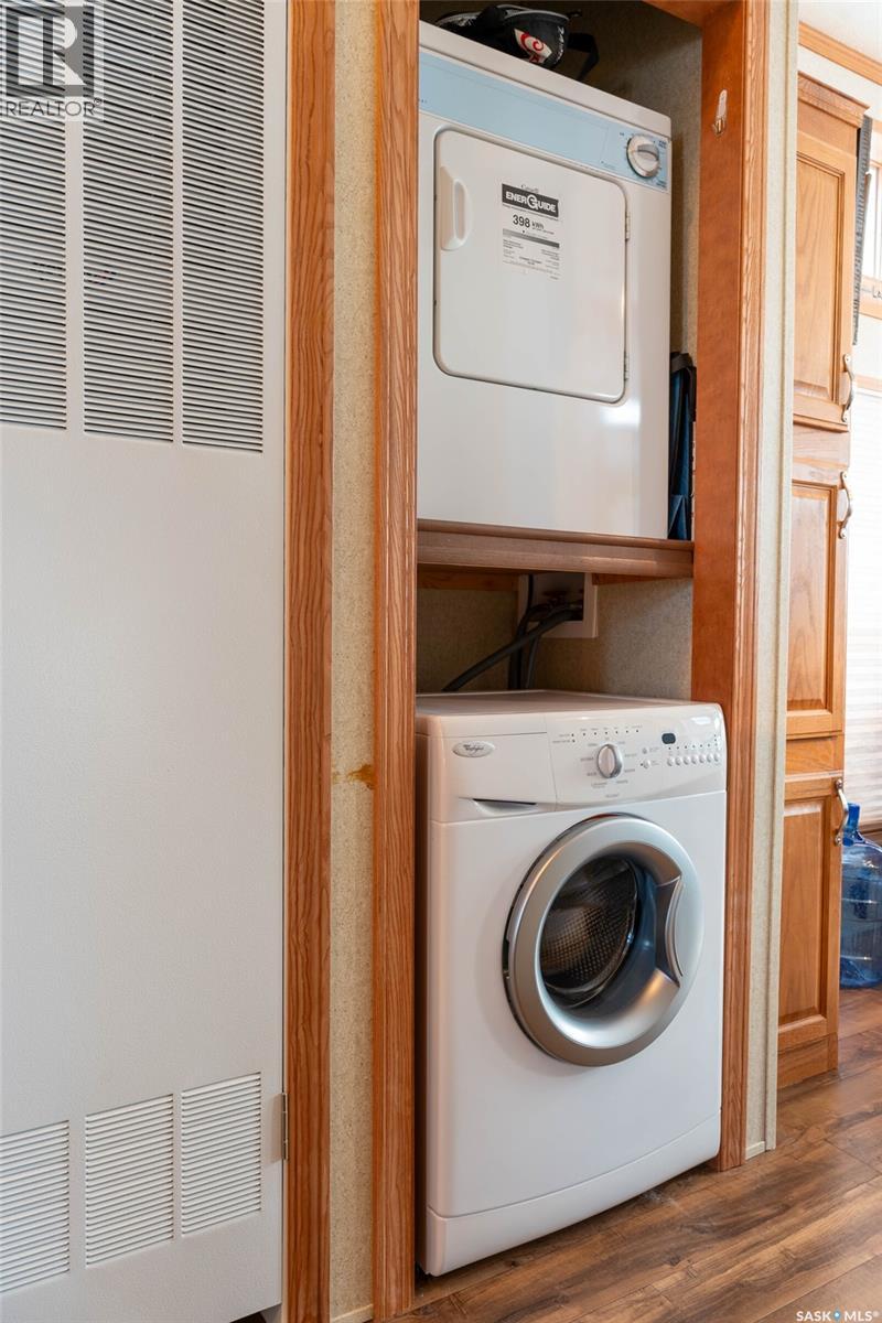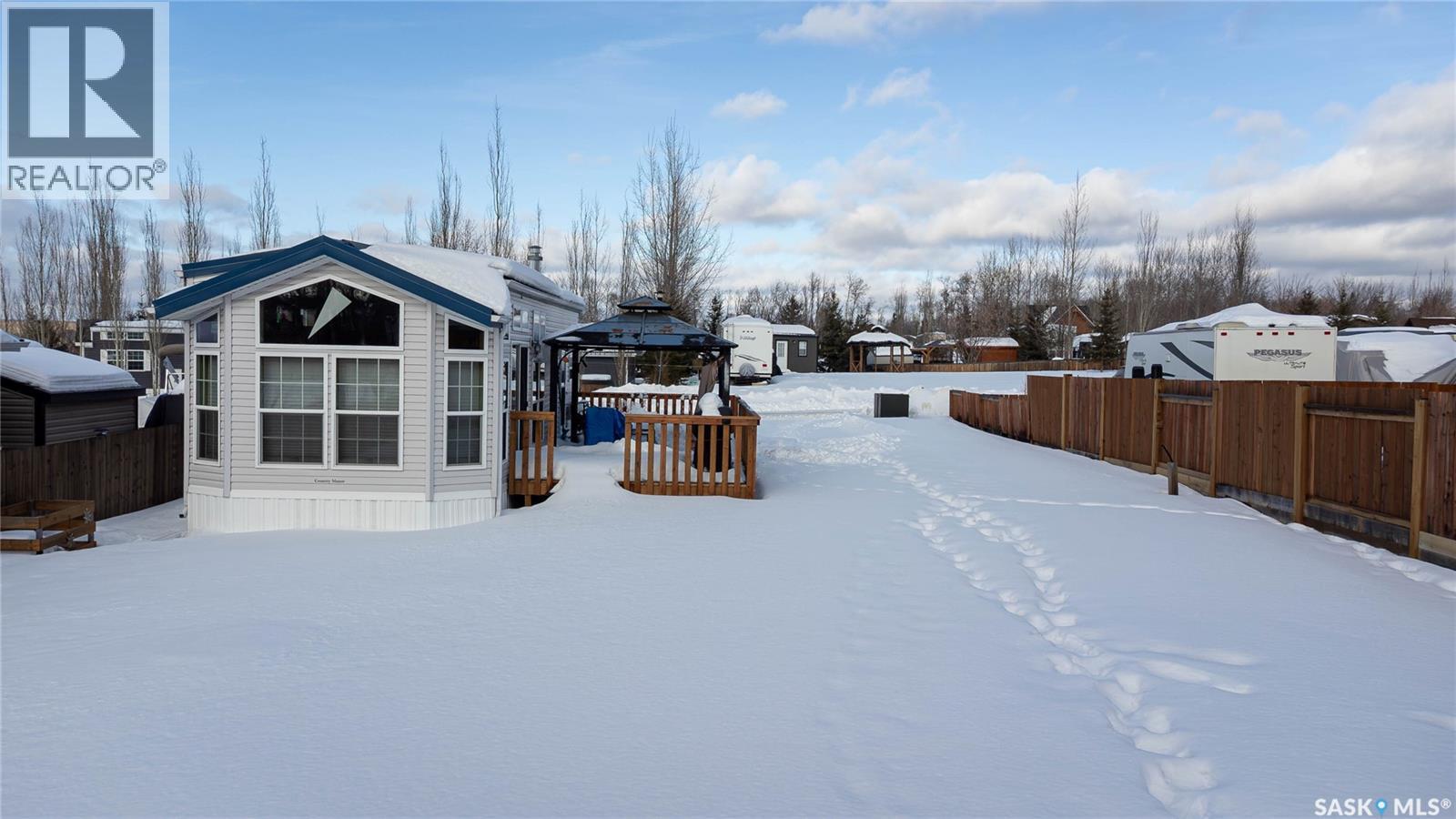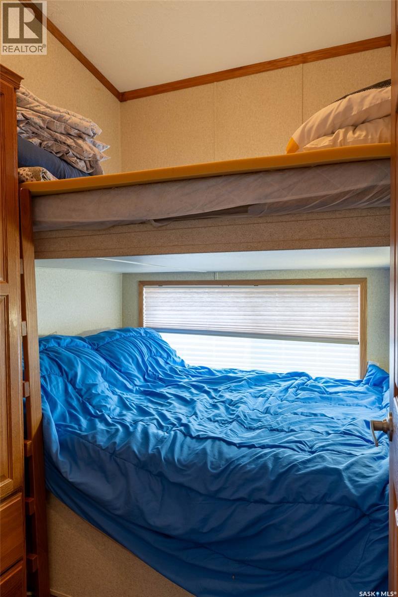 A fantastic all season escape at Lac Des Iles in Lauman’s Landing. This beautiful park model trailer offers an easy retreat with the comforts of home. A full-length deck with gazebo backs onto the trees, creating a private and relaxing outdoor space, and the living room also has a southern exposure and a view of the forest. Furniture is included, so you can arrive and start enjoying right away. The layout is designed to sleep up to eight people comfortably, with built-in wardrobes in each bedroom, extra storage under the primary bed, double bunks in the second bedroom, and lofted ceilings for excellent headroom. A pullout in the living room adds even more flexibility for guests. There is a full hook-up RV spot for visitors, an 8x8 storage shed for your toys, and a woodshed to keep firewood handy for evenings around the backyard fire pit. The lake and a playground are just a short walk away, perfect for kids and adults alike. This property is only about 10 minutes to Goodsoil for groceries and essentials. Golf enthusiasts are minutes from Northern Meadows Golf Club, a well-regarded 18-hole course. It’s approximately 45 minutes from Cold Lake and Meadow Lake, just over 4 hours to Edmonton and around 4 hours to Saskatoon for a full range of services and amenities. Whether you are looking for a seasonal getaway or a low-maintenance retreat, this property checks all the boxes. (29363965)