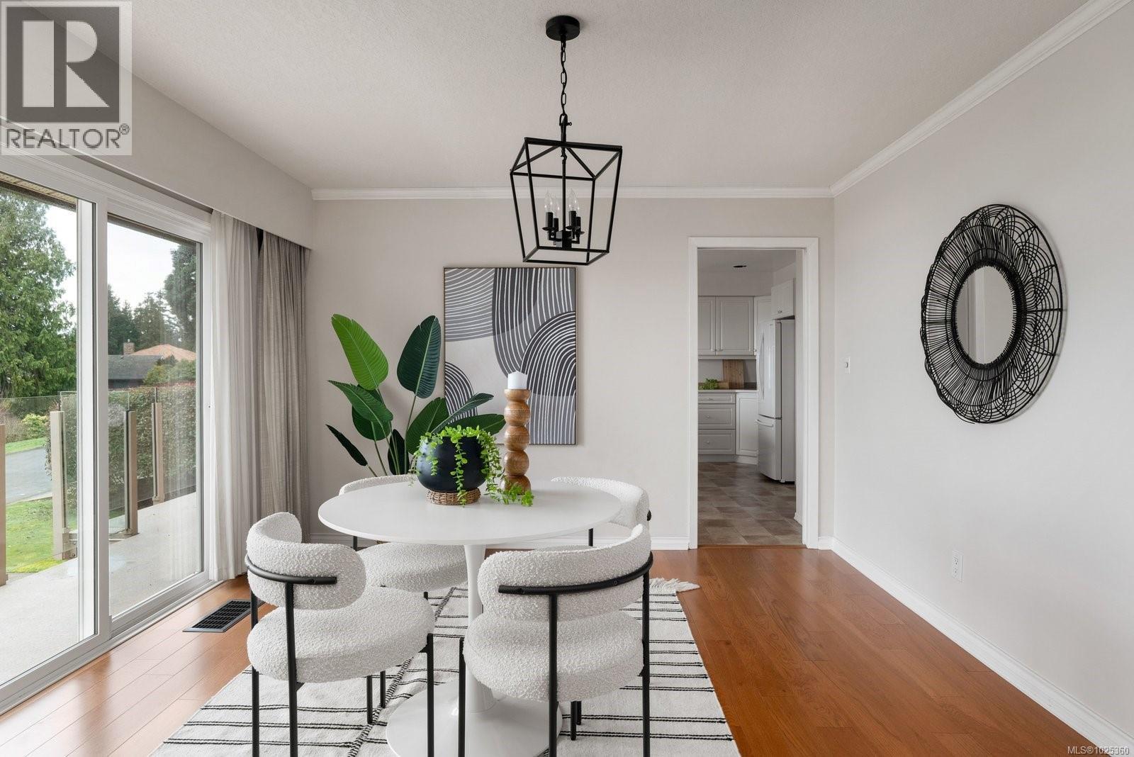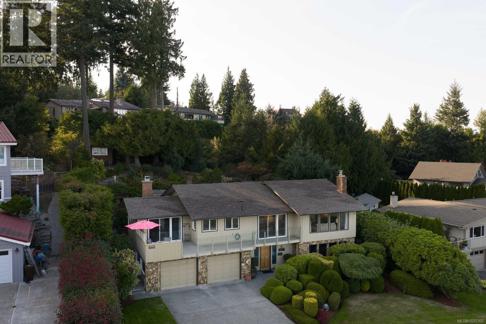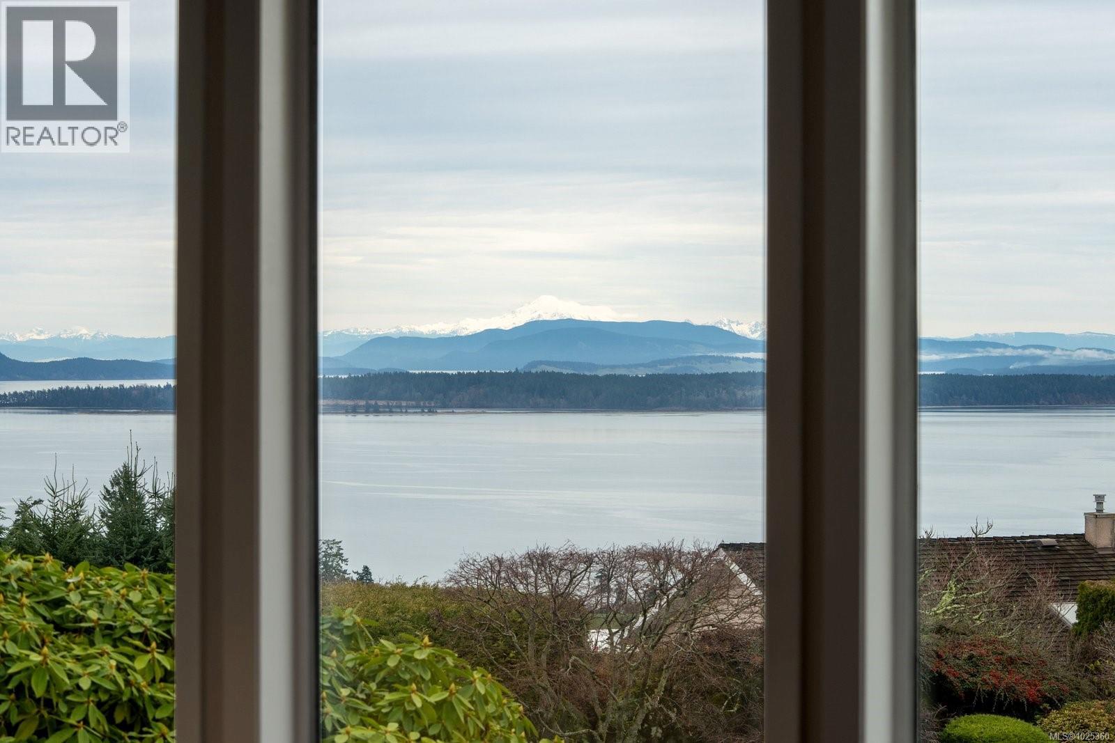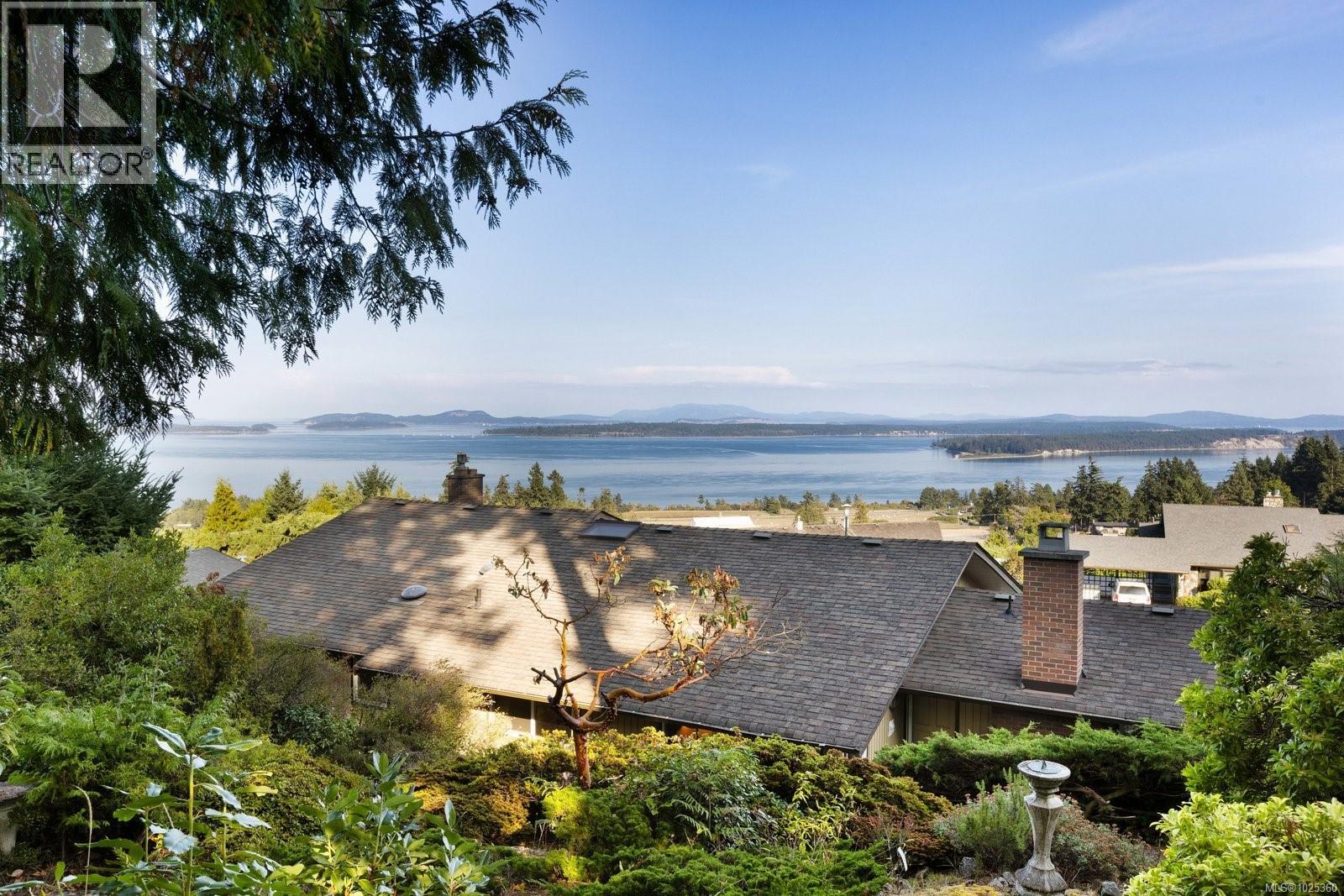 OPEN HOUSE SUN FEB 8, 1PM-3PM...Rarely available in quiet, beautifully maintained Dean Park Estates, this home captures truly stunning 180° views across Sidney and Mount Baker front-row seats to breathtaking sunrises day after day. A lower-level entry welcomes you in, with the main living level upstairs thoughtfully positioned to maximize the panorama and natural light. The spacious open floor plan offers effortless flow for everyday living and entertaining, anchored by an expansive gourmet kitchen designed for gatherings, meal prep, and memorable hosting. Enjoy the warmth and style of hardwood flooring throughout, plus the comfort of heated floors in the bathrooms. Step outside to the grand balcony patio an exceptional outdoor living space where you can dine, lounge, and entertain while taking in the sweeping outlook. Cozy up beside three fireplaces (two with natural gas) and appreciate efficient year-round comfort with a heat pump split system installed in the primary bedroom, living room, and recreation room on the main level. Practical features include central vacuum throughout, an irrigation system for the manicured, low-maintenance lawn and garden, and a level driveway leading to a double car garage. With skylight potential and the opportunity to add an additional accommodation level, there’s rare flexibility here for extended family, guests, or future value. All of this is just minutes to shops, everyday amenities, and a nearby recreation centre making this a standout Dean Park offering with exceptional views and outstanding potential. (30361348)