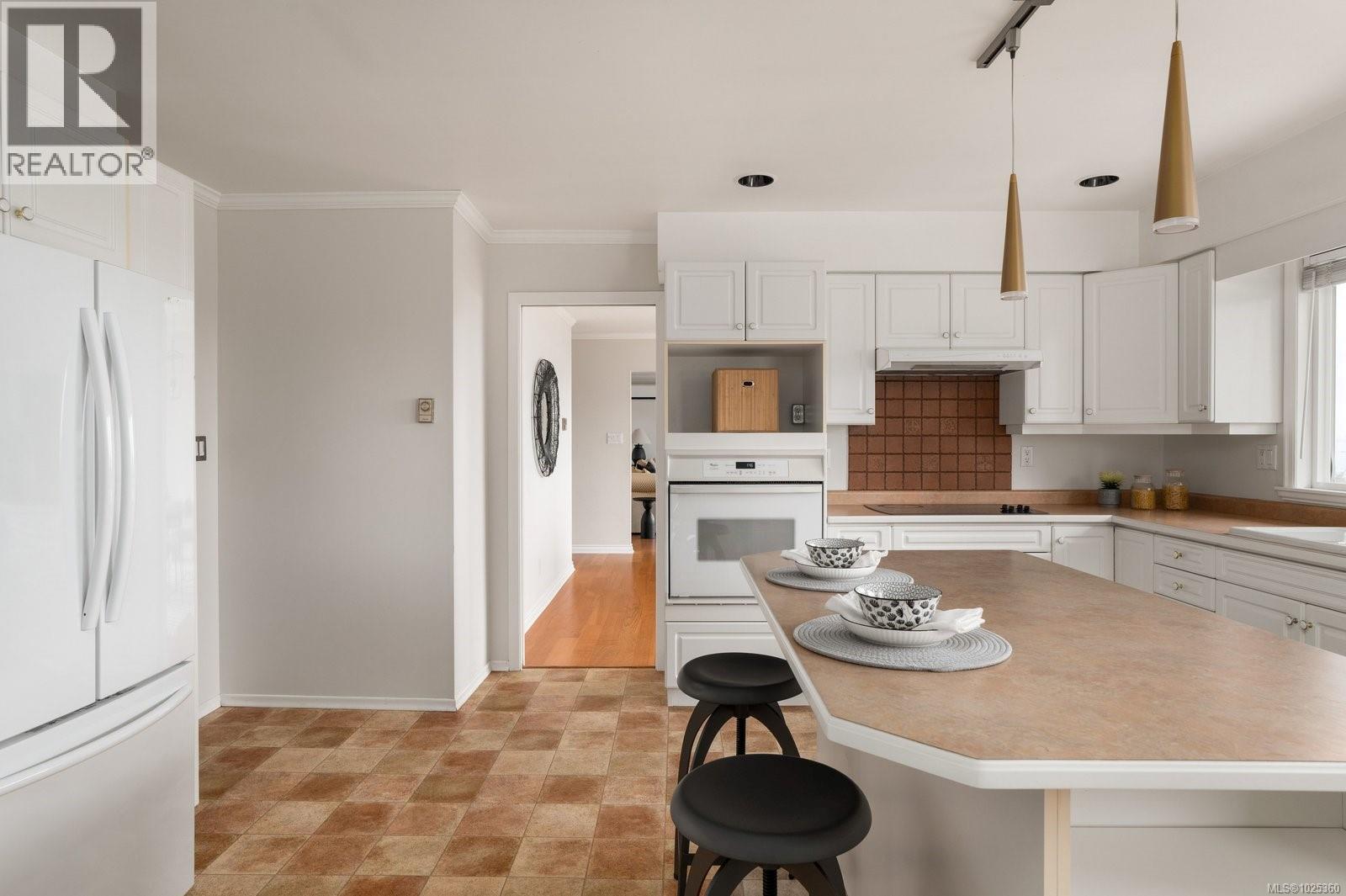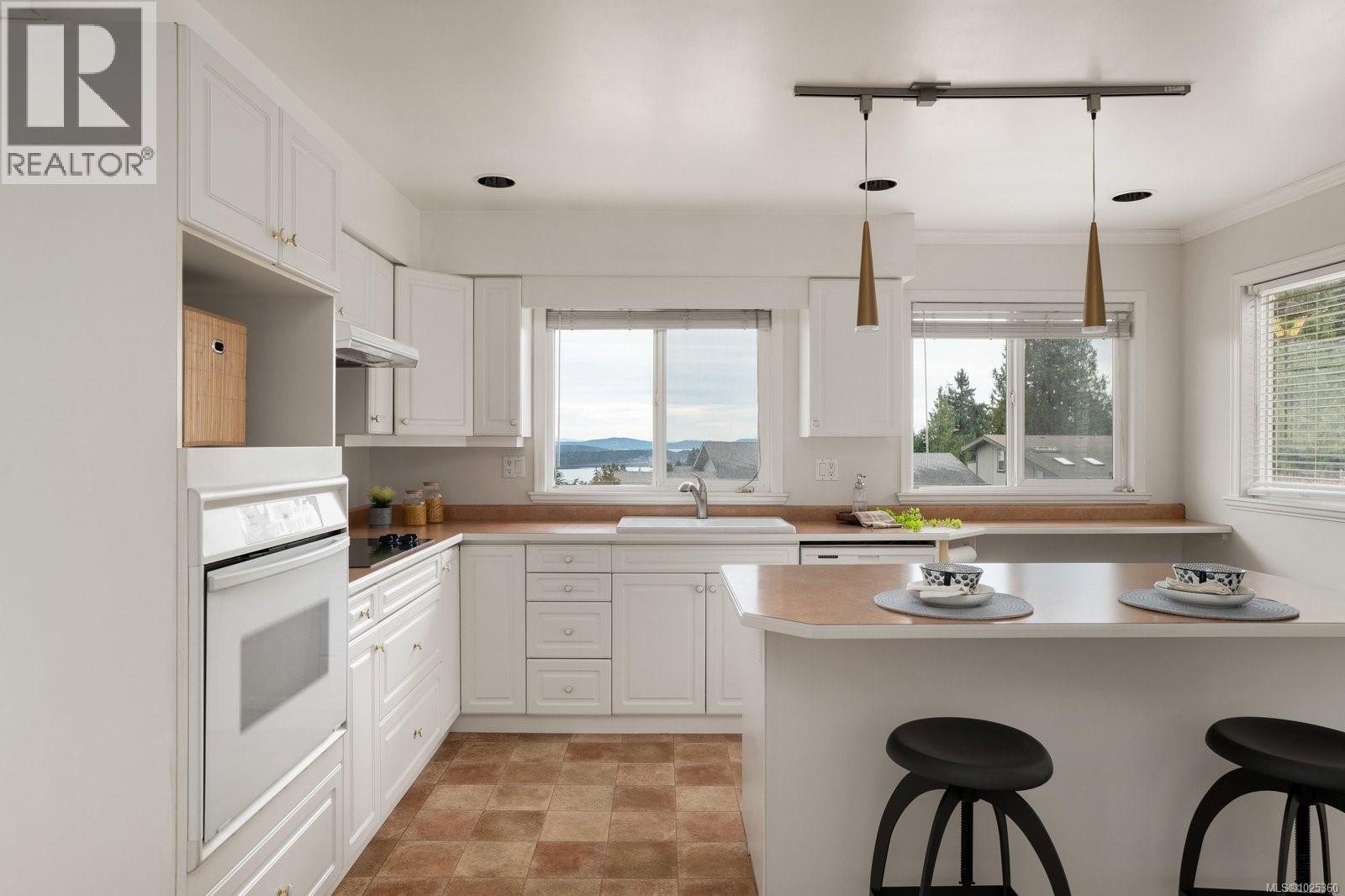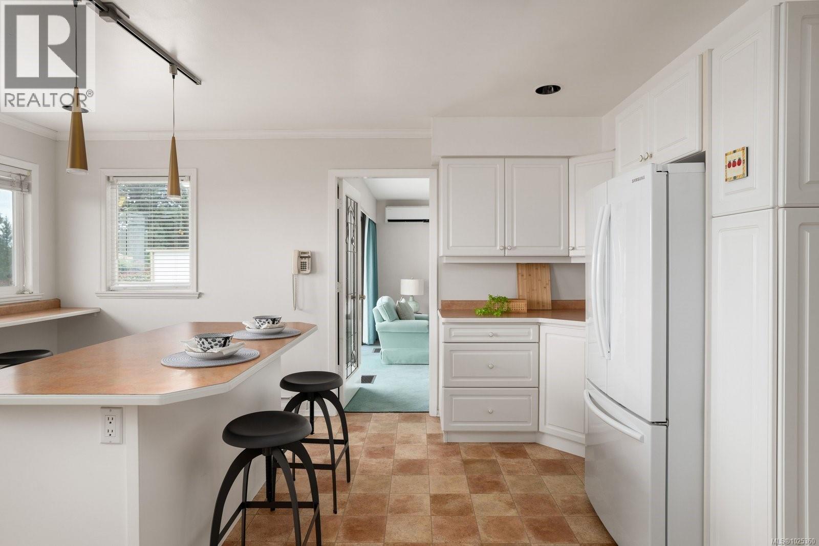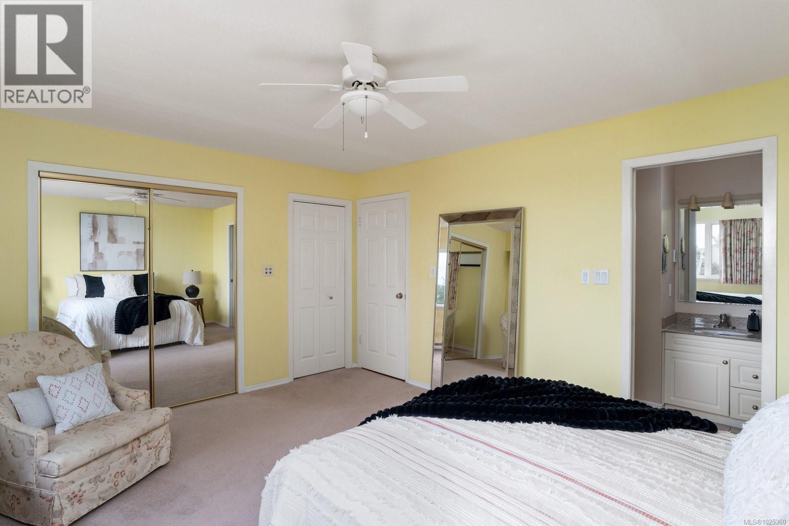 OPEN HOUSE SUN FEB 8, 1PM-3PM...Rarely available in quiet, beautifully maintained Dean Park Estates, this home captures truly stunning 180° views across Sidney and Mount Baker front-row seats to breathtaking sunrises day after day. A lower-level entry welcomes you in, with the main living level upstairs thoughtfully positioned to maximize the panorama and natural light. The spacious open floor plan offers effortless flow for everyday living and entertaining, anchored by an expansive gourmet kitchen designed for gatherings, meal prep, and memorable hosting. Enjoy the warmth and style of hardwood flooring throughout, plus the comfort of heated floors in the bathrooms. Step outside to the grand balcony patio an exceptional outdoor living space where you can dine, lounge, and entertain while taking in the sweeping outlook. Cozy up beside three fireplaces (two with natural gas) and appreciate efficient year-round comfort with a heat pump split system installed in the primary bedroom, living room, and recreation room on the main level. Practical features include central vacuum throughout, an irrigation system for the manicured, low-maintenance lawn and garden, and a level driveway leading to a double car garage. With skylight potential and the opportunity to add an additional accommodation level, there’s rare flexibility here for extended family, guests, or future value. All of this is just minutes to shops, everyday amenities, and a nearby recreation centre making this a standout Dean Park offering with exceptional views and outstanding potential. (30361348)