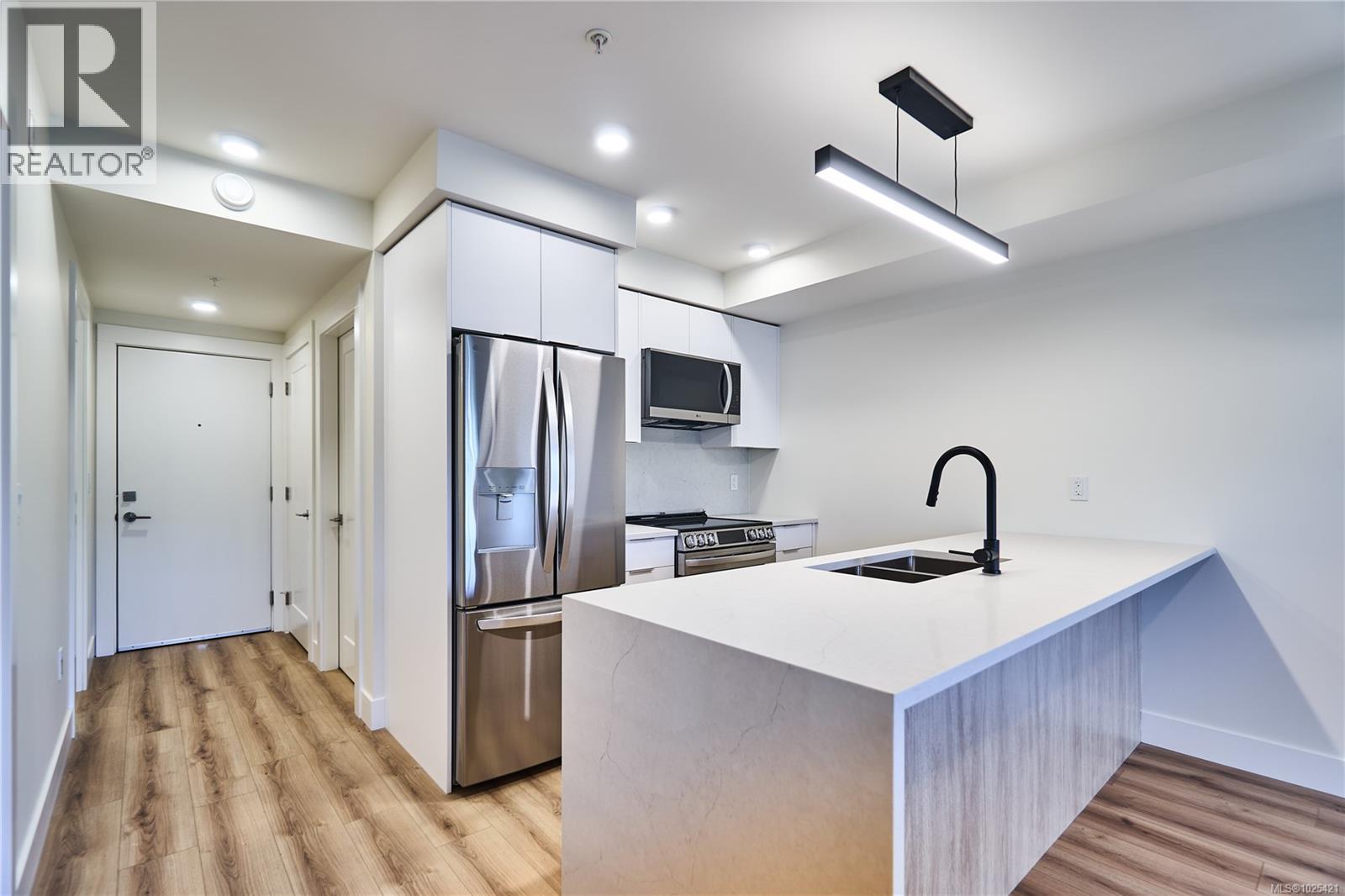 Welcome to Lumina, in the heart of Nanaimo’s Harbourview District — a Principal Property community where modern living meets coastal charm. Just steps from the harbourfront, seawall, cafés, shops, parks, and the Hullo Ferries, Lumina places you at the center of a vibrant, evolving neighborhood. This lovely residence offers a refined blend of style and comfort, featuring bright open-concept living, high-end finishes, and a spacious balcony with sweeping city and harbour views. Every element — from the quartz waterfall countertops and smart appliances to the soft-close cabinetry — reflects thoughtful design and attention to detail. Residents also enjoy access to Lumina’s stunning rooftop terrace — an elevated retreat with panoramic harbour and mountain views, perfect for morning coffee or sunset gatherings. Blending the best of coastal urban living, this home is more than a place to live, it’s a front-row seat to downtown Nanaimo’s vibrant future. (30361566)