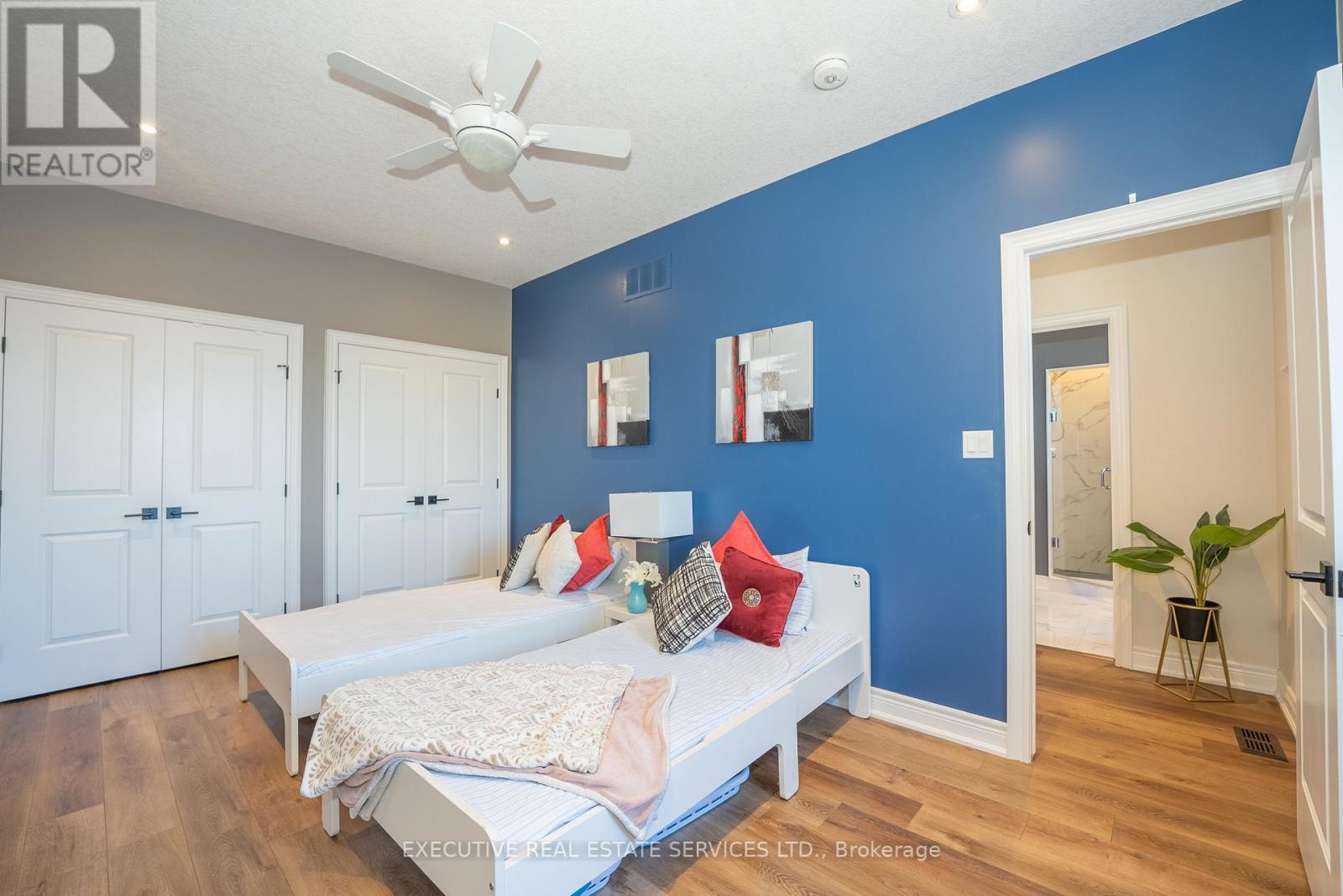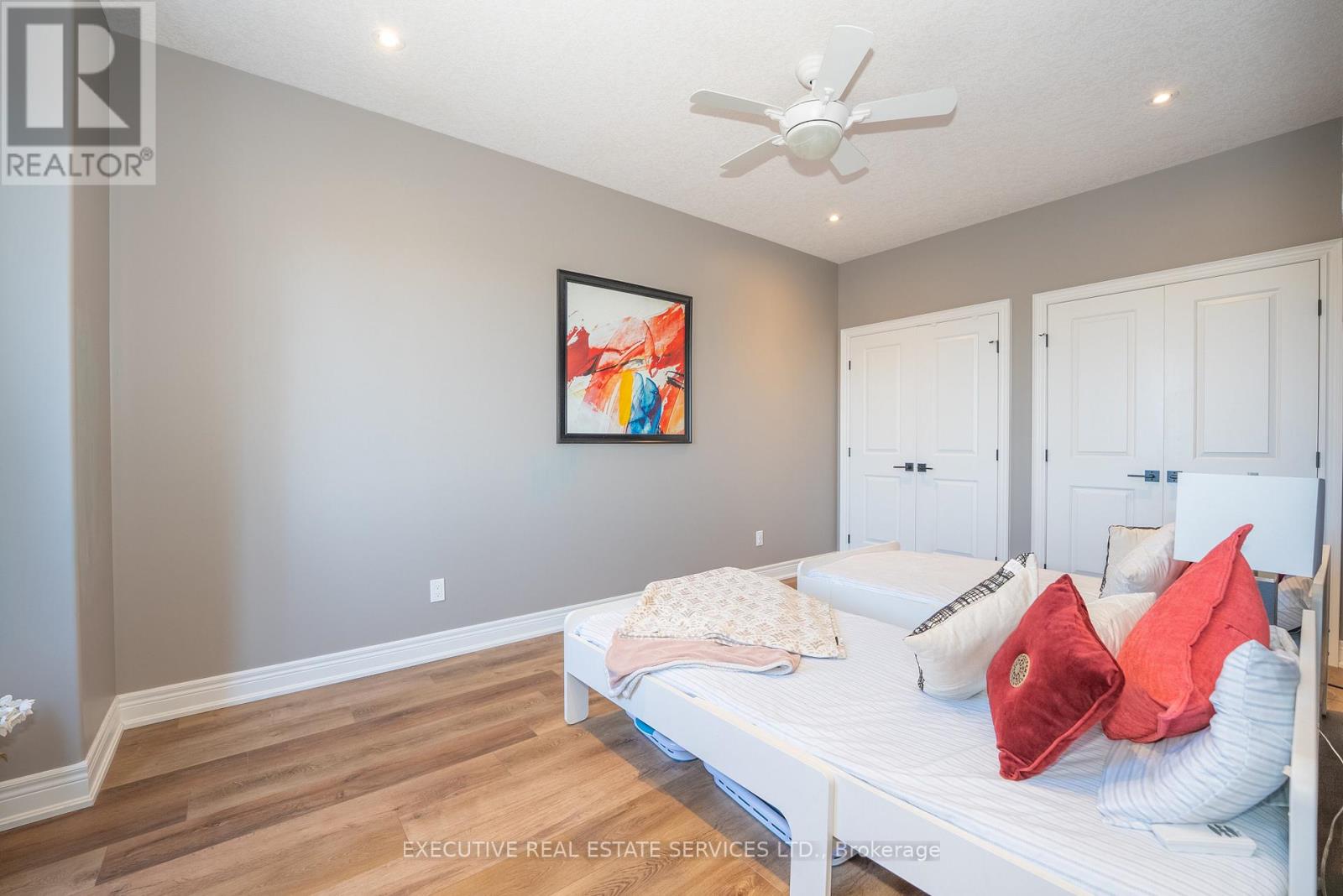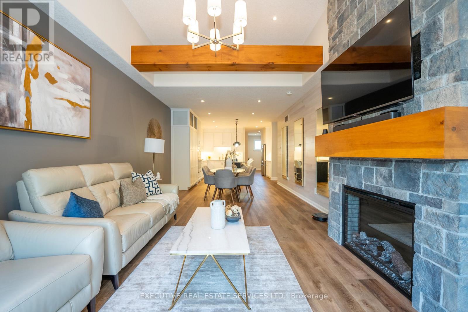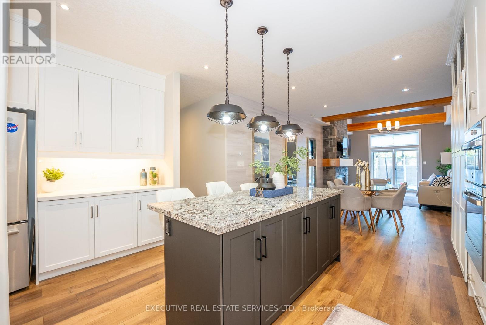 Luxurious 2020-Built Townhome with Over $100,000 in Upgrades & 2,600+ Sq. Ft. of Finished Living Space!Step into refined living with this stunning 3-bedroom, 3-bathroom raised bungalow, offering over 2,600 sq. ft. of beautifully finished space across two levels. Located in the heart of Niagara's sought-after wine country, this home is packed with high-end features and thoughtful design throughout.Enjoy a gourmet kitchen complete with custom cabinetry, granite and quartz countertops, designer backsplash, oversized island, and an upgraded faucet. The great room impresses with soaring 12-foot ceilings, exposed wood beams, a dramaticfloor-to-ceiling stone fireplace wall (Napoleon fireplace), and a custom feature wall. Main floor, entertain in style with a custom bar area featuring a built-in wine racking system. The home also includes upgraded bathrooms, a main floor office, convenient laundry room, a spacious family room, a main floor bedroom with a 4-piece ensuite and shared access, and a large storage space.This 2020-built home offers modern construction, top-tier finishes, and an unbeatable lifestyle in one of Ontarios most scenic regions.Let me know if you'd like to emphasize investment potential, retirement appeal, or executive living.The upper level showcases approximately 9-feet ceilings and features a spacious bedroom, a modern 3-piece bathroom, and a stylish wine bar with an adjoining pantry. The gourmet kitchen is designed for both function and elegance, seamlessly connected to a bright dining area with 9-foot ceilings. The expansive great room impresses with soaring 12-feet t ceilings and a walkout to a private patio perfect for relaxing or entertaining. The luxurious primary bedroom is a true retreat, complete with a stunning 5-piece ensuite. (42104423)