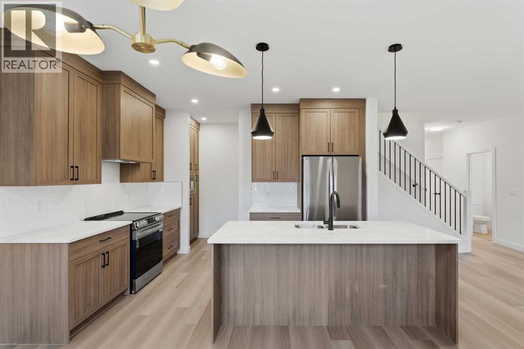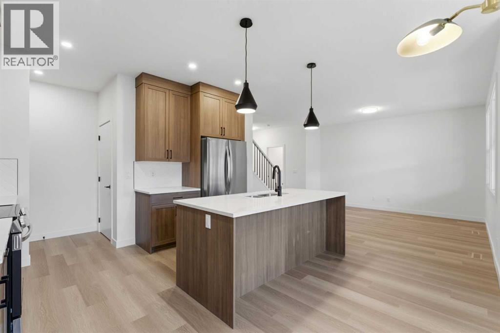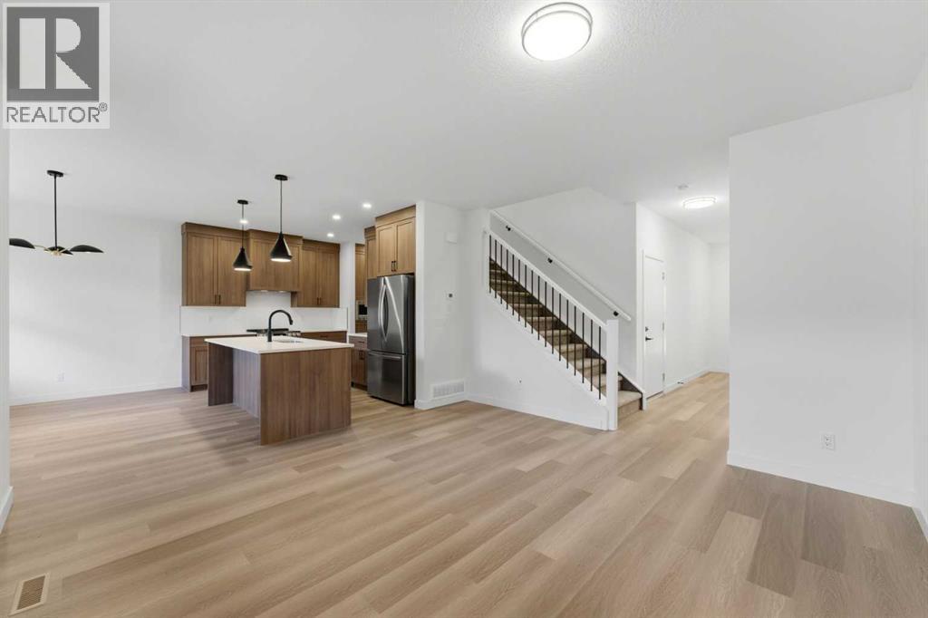 Welcome to luxury and convenience built by Vesta Properties - in the heart of Airdrie’s award-winning community of Cooper’s Crossing. This brand-new beautifully crafted interior-unit townhome combines everyday comfort with smart design. Step inside to discover a bright, functional main level that includes a stylish gourmet kitchen with an oversized island and stainless steel appliances, a cozy family room. Upstairs, a sun-soaked bonus room offers the perfect space to unwind, work from home, or enjoy family time. Just off the bonus area, you’ll find two additional bedrooms, a full bathroom, and a convenient upstairs laundry space ( No washer and dryer in unit). Also you will find your primary bedroom, which is a retreat complete with vaulted ceilings and a spa-inspired ensuite. Enjoy the added luxury of 9-foot ceilings on both the main floor and the basement, creating a spacious and airy atmosphere throughout. Summer evenings are made better on your covered west-facing balcony, with a gas line for your BBQ and views of the landscaped green space, offering a peaceful, family-friendly backdrop. Additional highlights include a double attached garage, modern contemporary exteriors, and fully landscaped yards designed for ease and curb appeal. And here’s the best part... These homes offer a true Lock & Leave lifestyle—experience it at its best! Whether you're off traveling, managing a busy career, or simply done with yard work and snow removal, you can lock the door and go. No stress. No fuss. Just effortless, carefree living. Book your exclusive tour today! (31619648)