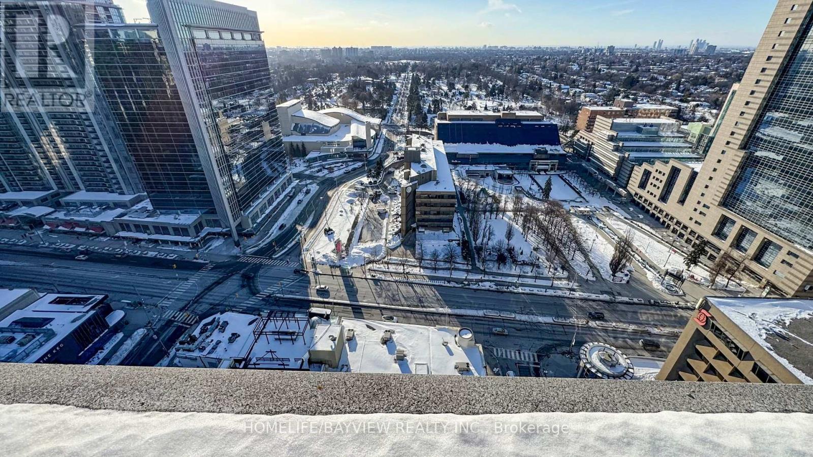 Prime North York Location. Rare opportunity for a bright, spacious, one of a kind unit in a luxury Monarch building. High-floor, 9 foot ceiling suite features a unique layout with unobstructed skyline views overlooking Mel Lastman Square and the skating rink. Enjoy sunny floor-to-ceiling windows, and a large wraparound terrace with walk-outs from both the living room and bedroom. Freshly painted throughout and offers upgraded granite countertops, laminate flooring, brand-new never-used washer and dryer, and all new window blinds. Exceptional resort-style amenities include 24-hour concierge, indoor pool, hot tub, fully equipped gym, movie theatre, party room, car wash, internet café, and garden BBQ area. Unbeatable location just a 3-minute walk to North York Subway Station, Empress Walk, restaurants, shops, supermarkets, library, pharmacy, The Keg, Cineplex, and with quick access to Highway 401. (42104961)