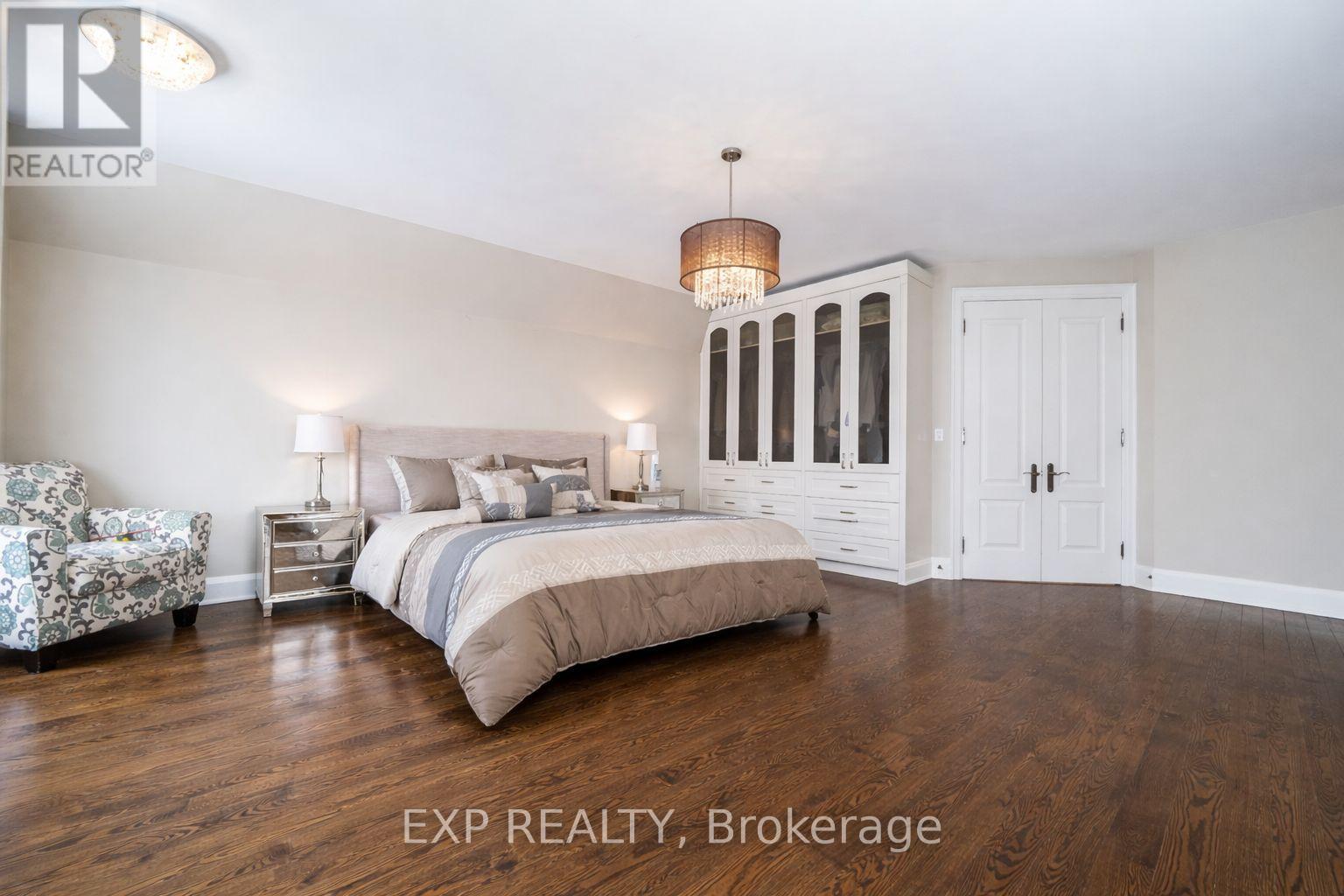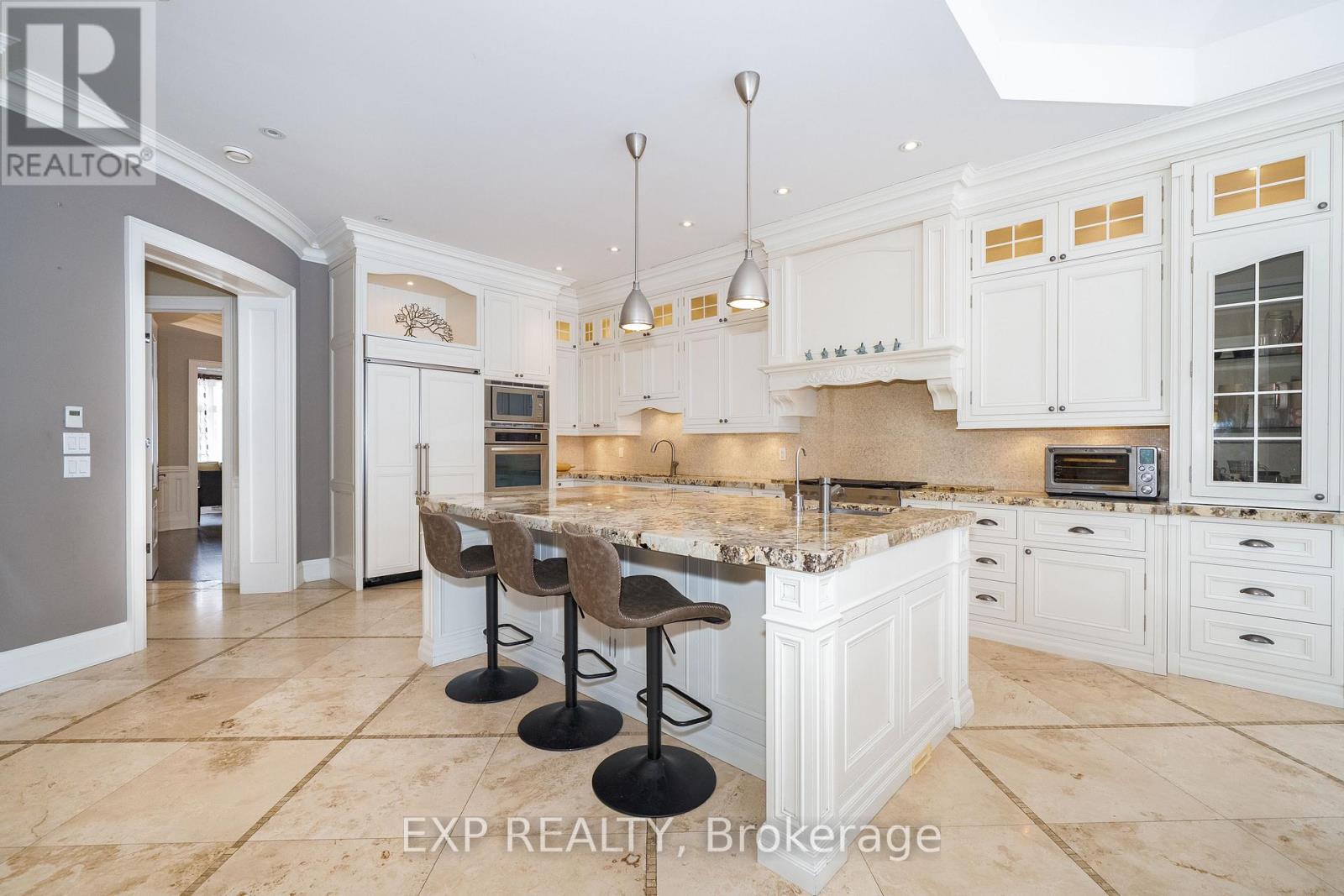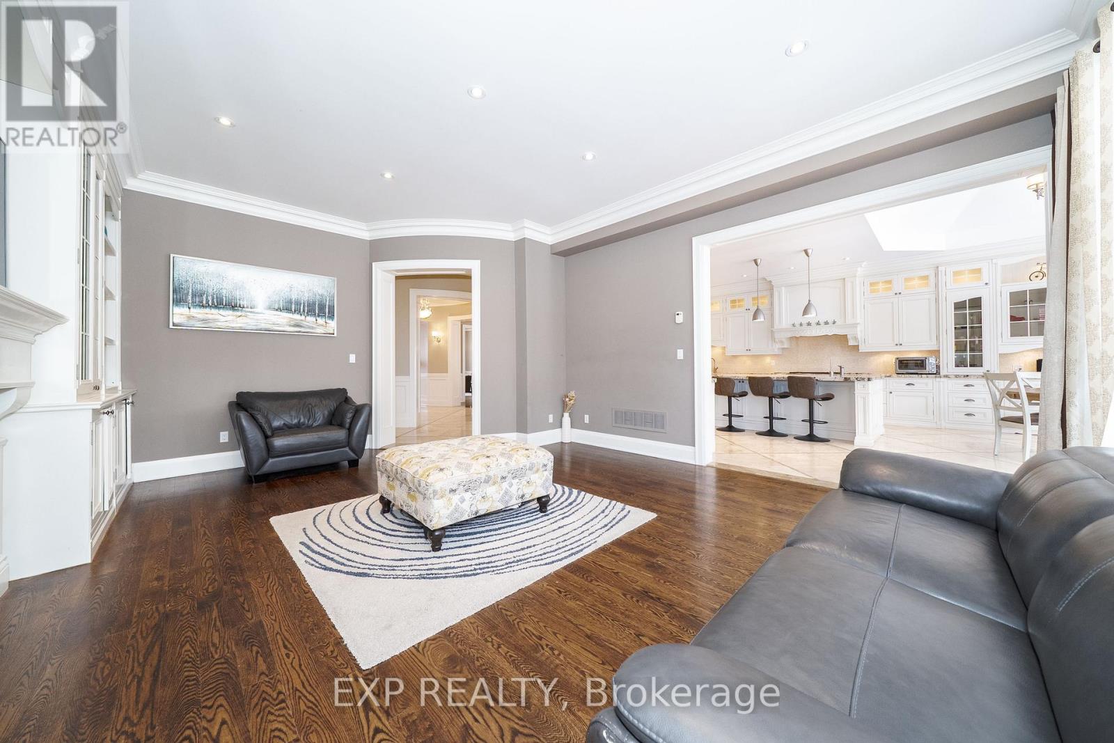 An exceptional custom-built luxury residence set on an expansive 45 x 240 ft premium lot in the heart of prestigious South Richvale, surrounded by distinguished multi-million-dollar estates. This bright, south-facing home presents an elegant natural stone exterior and refined architectural presence, complemented by soaring 10-foot ceilings on the main level and 9-foot ceilings above. Thoughtfully designed interiors showcase impeccable craftsmanship, featuring a bespoke gourmet kitchen with an oversized centre island, granite countertops, and integrated high-end appliances, seamlessly flowing to a walk-out breakfast area and private patio. Rich hardwood, limestone, and marble flooring anchor the home's sophisticated aesthetic, enhanced by extensive wainscoting, chair rail detailing, skylight, and three beautifully appointed fireplaces. A custom-designed office with coffered ceiling and built-in shelving offers an ideal executive workspace. The professionally finished walk-up basement is filled with natural light and includes above-grade windows, a generous L-shaped recreation area, additional bedroom, and full bathroom, perfect for extended family or entertaining. Additional highlights include a rare tandem three-car garage, interlock driveway and patio, heated floors, built-in furnishings, sprinkler and alarm systems, and abundant pot lighting throughout. Ideally positioned within walking distance to Yonge Street, top-ranked schools, public transit, and just minutes to Highway 407, this residence delivers refined luxury living in one of Richmond Hill's most coveted enclaves. (42104995)