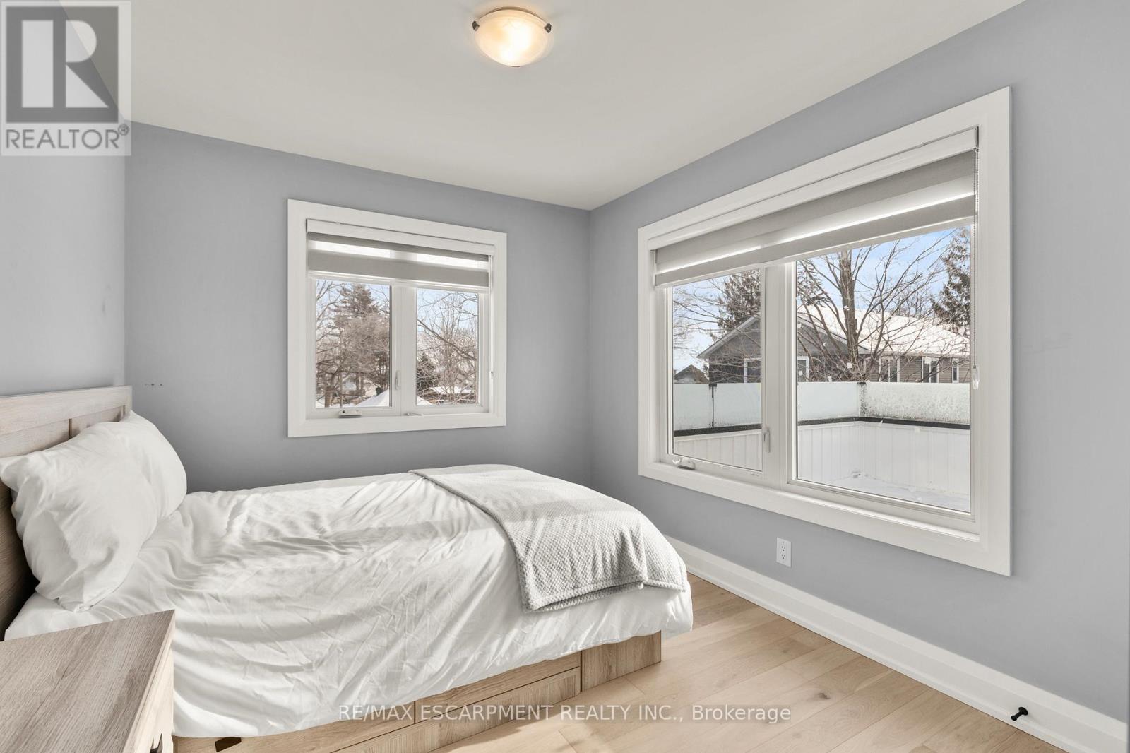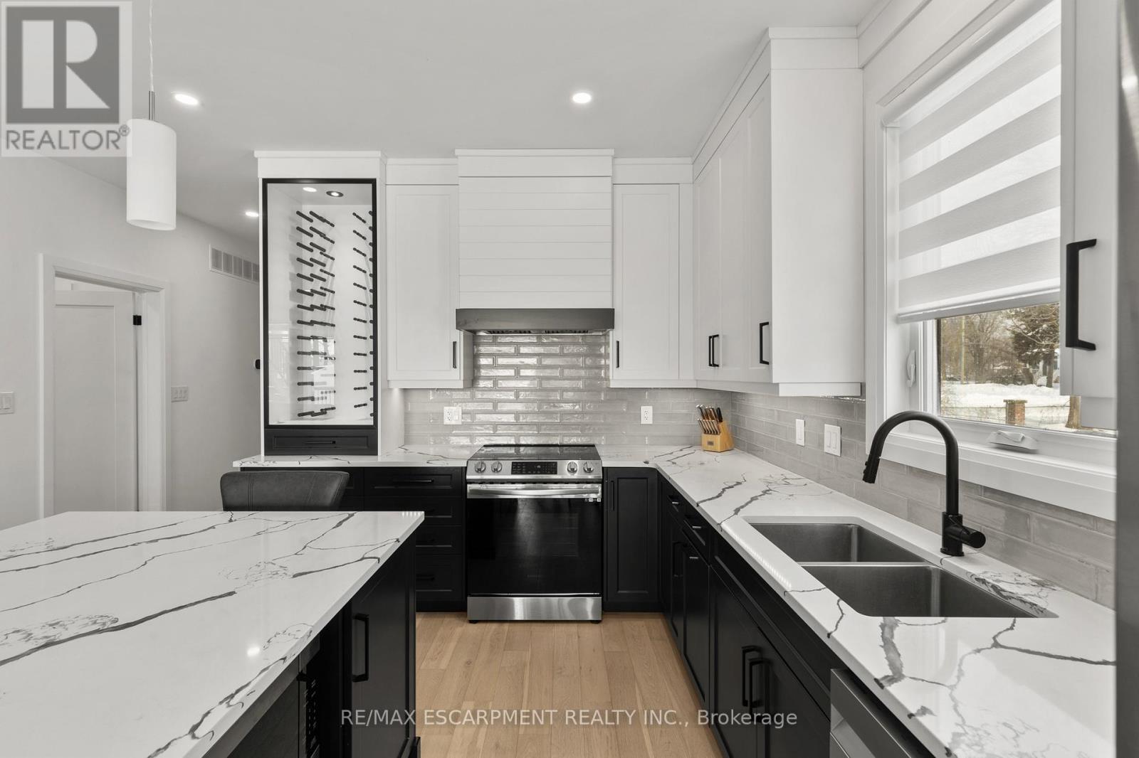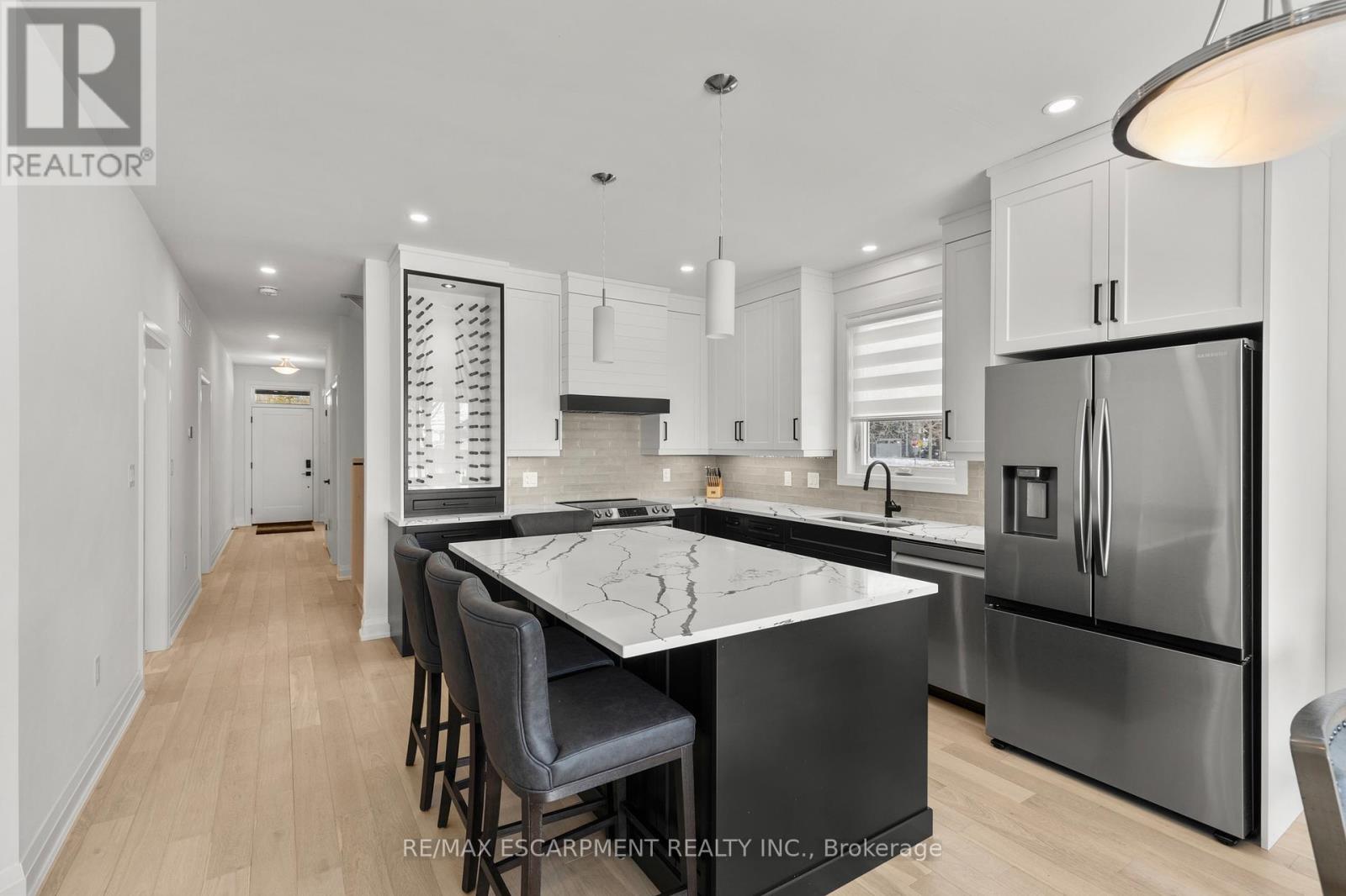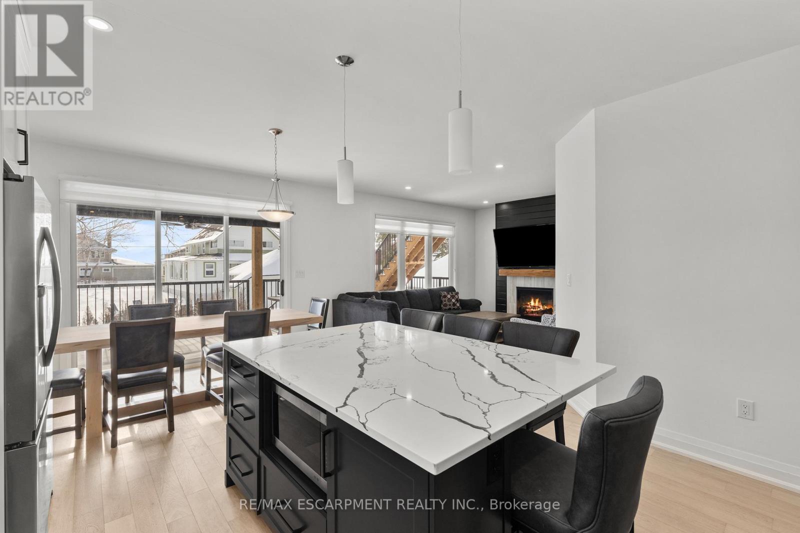 Experience effortless lakeside living in this beautifully designed bungaloft, where modern style meets relaxed comfort just steps from the Lake Erie waterfront. The classic black-and-white exterior with board-and-batten detailing makes a striking first impression, enhanced by an attached garage and inviting covered front porch. Inside, white oak hardwood floors and abundant natural light create a warm, airy feel throughout the open-concept living space. The designer kitchen is a true showpiece, featuring floor-to-ceiling cabinetry, stone countertops, and a statement wine fridge. Expansive patio doors lead directly to the back deck, with stairs connecting to the upper balcony-ideal for seamless indoor-outdoor entertaining. Unwind in the inviting living room with a cozy gas fireplace, or take the gathering outside. The thoughtfully designed layout offers four bedrooms and 2.5 bathrooms, including a serene primary suite with a sleek ensuite. The loft level is a standout, offering two additional bedrooms, a full bathroom, and access to an expansive terrace-perfect for hosting under the stars, enjoying lake breezes, or taking in peaceful evening views. With multiple outdoor living spaces, lake views from the rear, and an unfinished basement ready for your vision, this home delivers a refined yet relaxed lifestyle just moments from the water. (42105296)