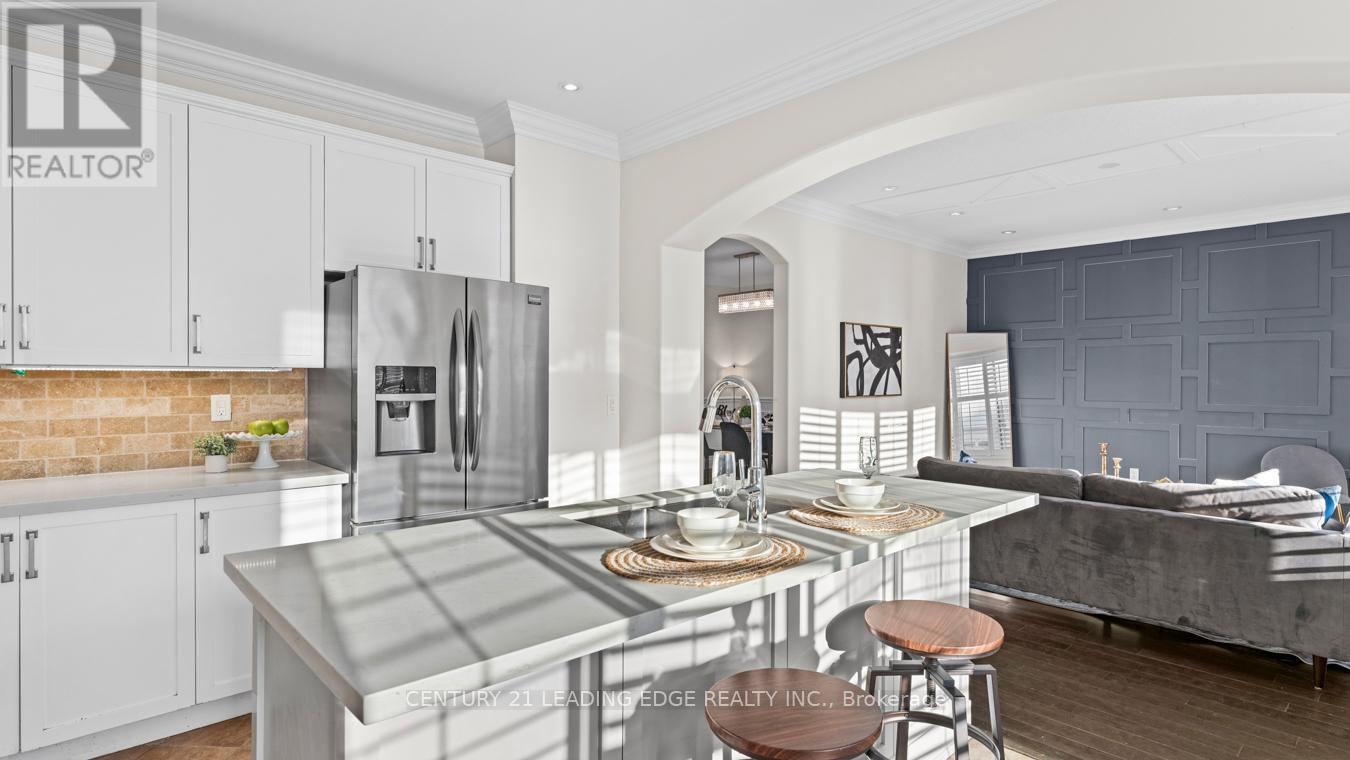 Welcome to this stunning detached two-storey home by Mattamy Homes, a highly respected builder known for quality craftsmanship. This elegant residence offers 9 ft ceilings, over 3,200 sq. ft. of finished living space and is thoughtfully designed for modern family living. The main level impresses with rich hardwood flooring, neutral paint palette, pot lights, crown moulding, and wainscoting throughout, along with California shutters that add timeless charm. The spacious layout features a large living room plus a separate above-grade family room, highlighted by a stylish feature wall. The chef-inspired kitchen boasts quartz countertops, stainless steel appliances, custom backsplash, ample pantry space, built-in storage, an island and a separate breakfast area. Upstairs you'll find four generously sized bedrooms, upper-level laundry and multiple walk-in closets. The primary retreat offers a luxurious five-piece spa-like ensuite. The finished legal basement includes a legal separate entrance, den, bathroom and excellent in-law or income potential. Additional highlights include a fully fenced yard, extended driveway for extra parking and a beautiful oversized front porch; perfect for enjoying warm spring evenings and summer nights. Over 300k of upgrades! Nest thermostat, smart door lock & central vacuum. The basement is furnished! The perks are never ending. Situated as an end home on the street (feels like a corner), this property offers added privacy and curb appeal. Ideally located close to schools, parks, wooded trails, and all essential amenities. Newer A/C, furnace, and roof add peace of mind. A rare opportunity in today's market! Come see it for yourself and fall in love! (42105421)
