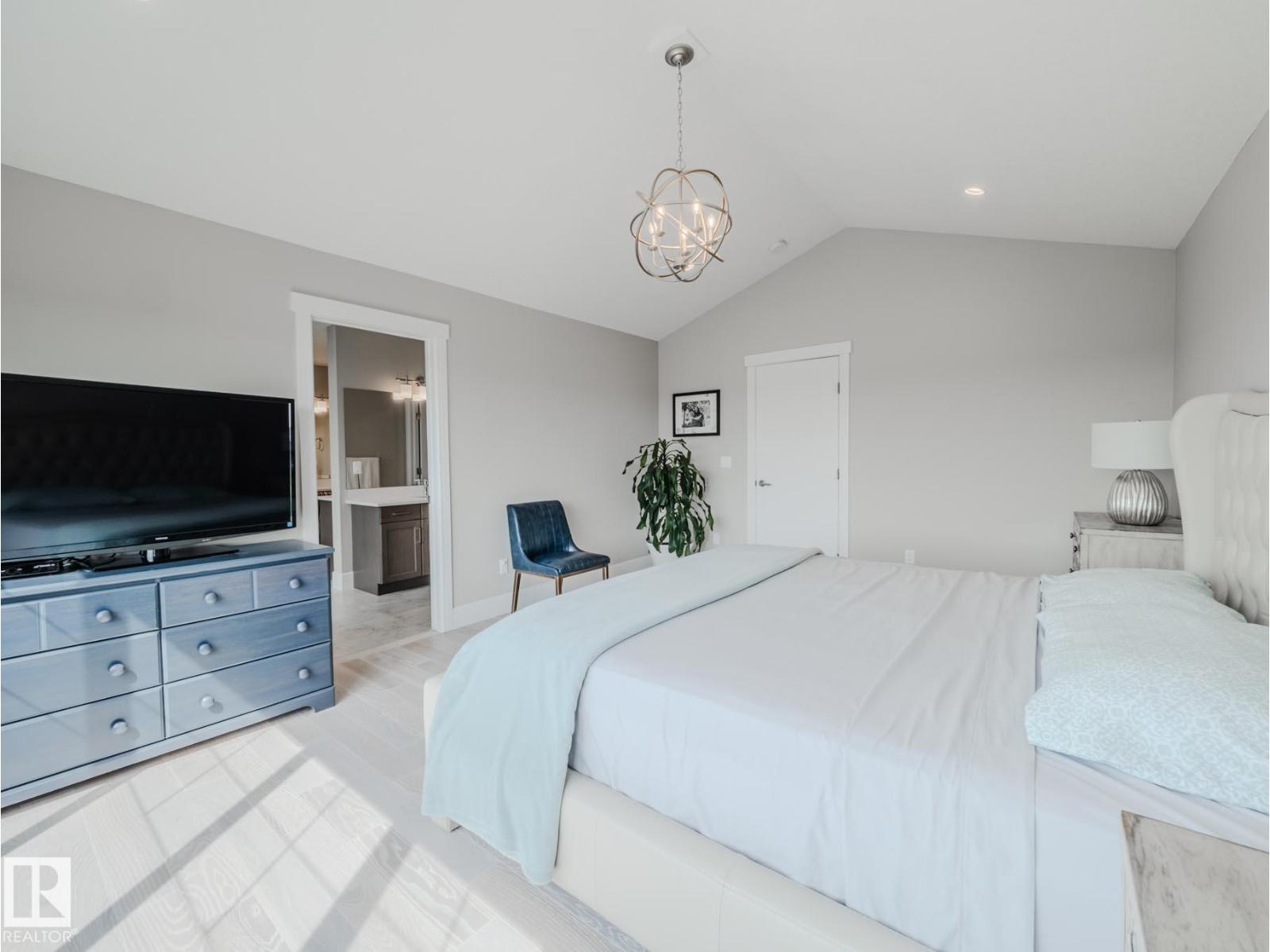 Welcome to this Coventry dream home in Secord! This immaculate 2-storey house with 4 bedrooms and 3 bathrooms has a fully finished basement with a legal suite and walk out basement. 3500 sf of builder finished space with 9ft ceilings (main and walk out). This beautiful home has all the features you could hope for: triple pane windows, custom blinds, low maintenance covered deck, engineered hardwood, Kitchen Craft wood cabinets throughout, stainless steel appliances, built-in oven and microwave, built-in bar fridge, AC, hot water on demand, and electric fireplace. Enjoy a large patio and amazing view of the water feature. Plus, 3 large bedrooms on the upper floor, with a den and bonus room. The ensuite is a massive 5 piece bathroom with a jetted jacuzzi tub, two separate sinks and counter space, leading to a large walk-in closet. Located near the Anthony Henday and HWY 16A, this great west-end location provides you with a luxurious home that also has easy access to shopping, schools, golf, and amenities. (33809548)
