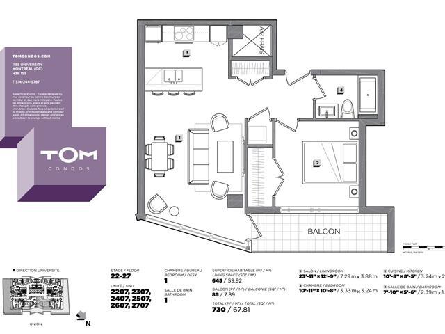 Welcome to Tom Condos! Immediate moving!Just a short walk from McGill University, located on Union Avenue between René-Lévesque Boulevard and Cathcart Street, near the Altitude Montreal tower and the Place Ville Marie. Enjoy 24-hour security, a swimming pool, gym, and lounge area. Perfect for families, students, and young professionals. This unit features an open-concept living area, and kitchen with appliances included. Locker and parking can be rented. (56564280)