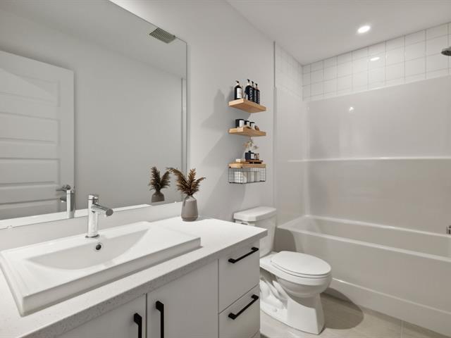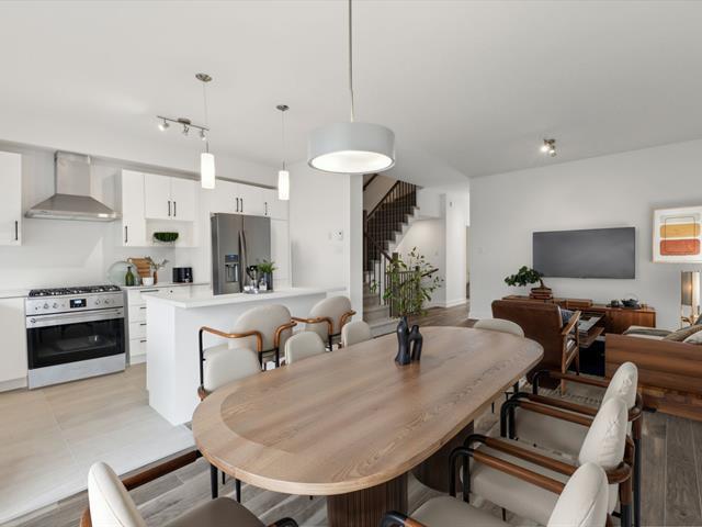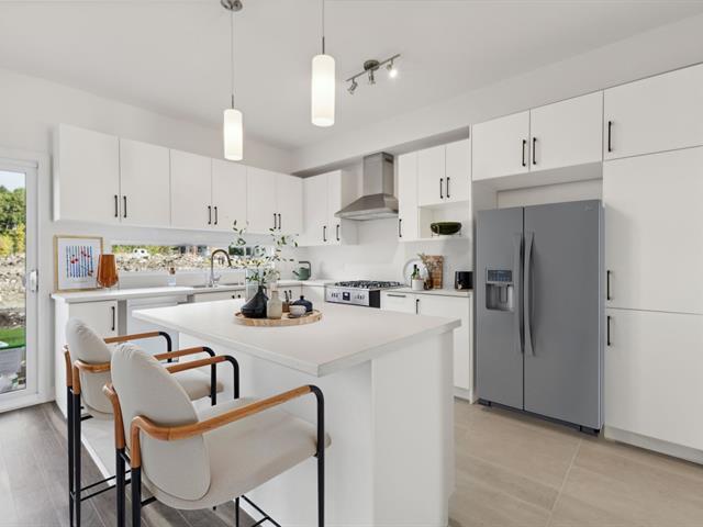 Discover this elegant townhome by GERIK, located in Le Coteau St-Georges, a harmonious community surrounded by mature trees. Featuring 3 bedrooms, 2 full bathrooms on the upper floor, a bright open-concept main level, a WALK-OUT BASEMENT with a large 100% finished family room and a convenient garage, this corner unit offers the perfect balance of comfort and functionality. Thoughtfully designed for modern family living, it combines the charm of nature with the benefits of an urban lifestyle. Come visit our model units today! *Photos for information purposes only. GST/QST must be added to the asking price (45358754)
