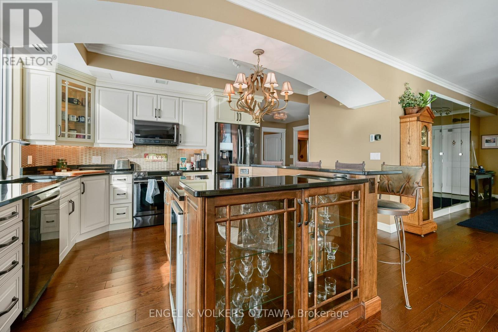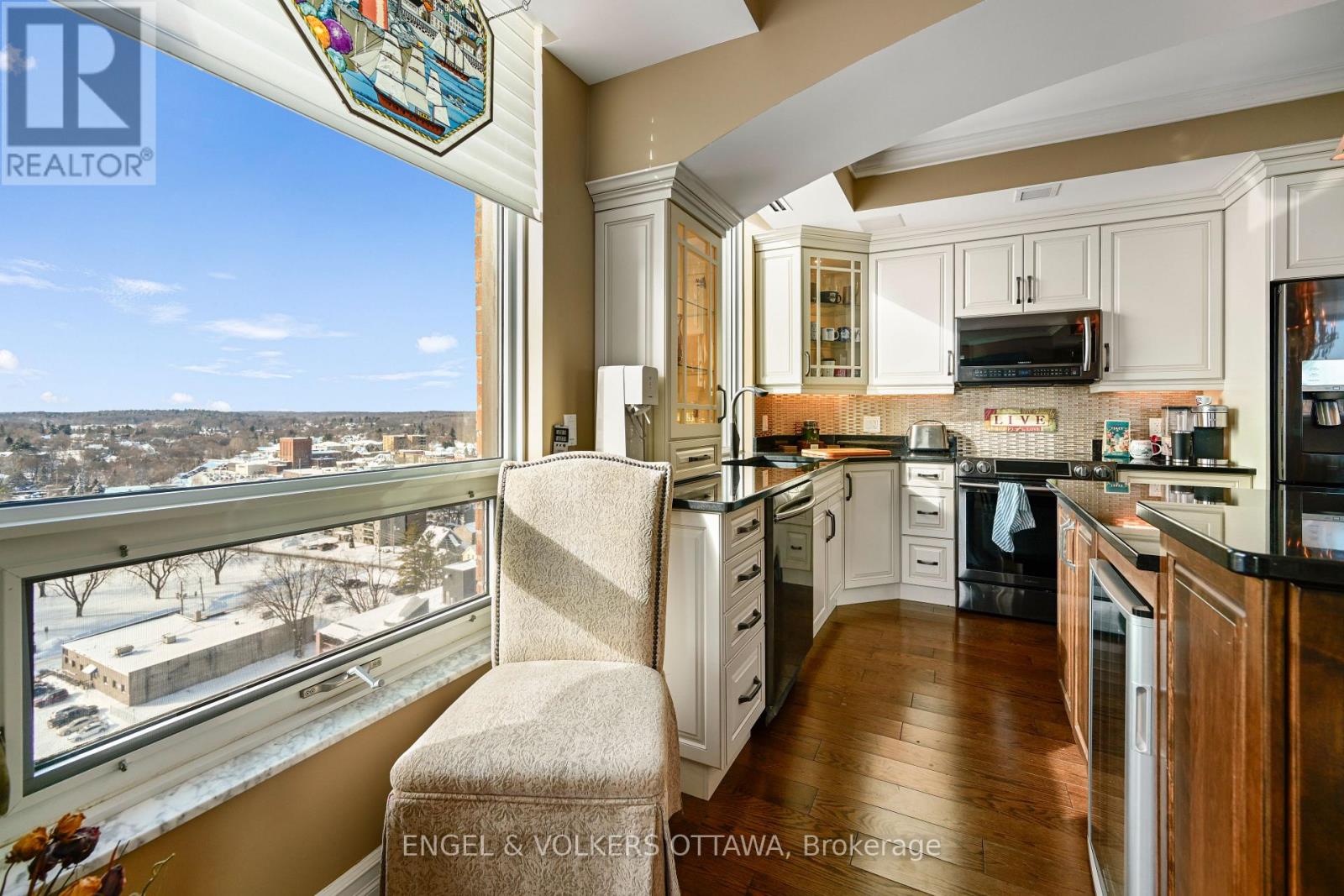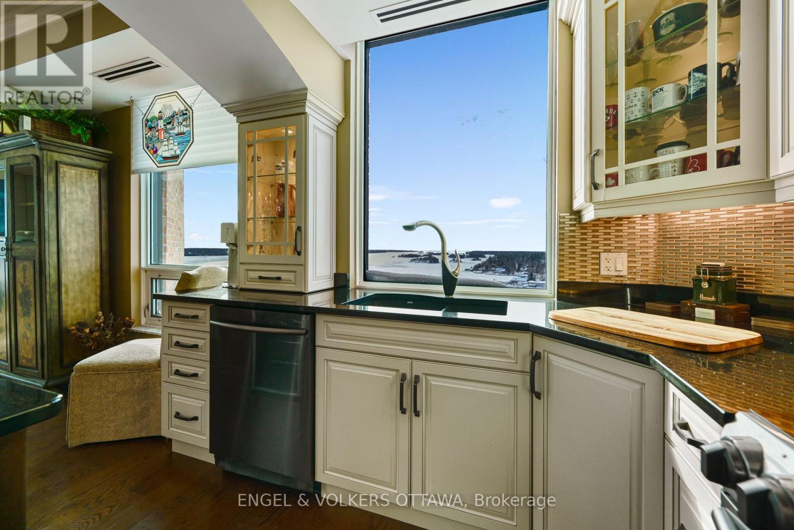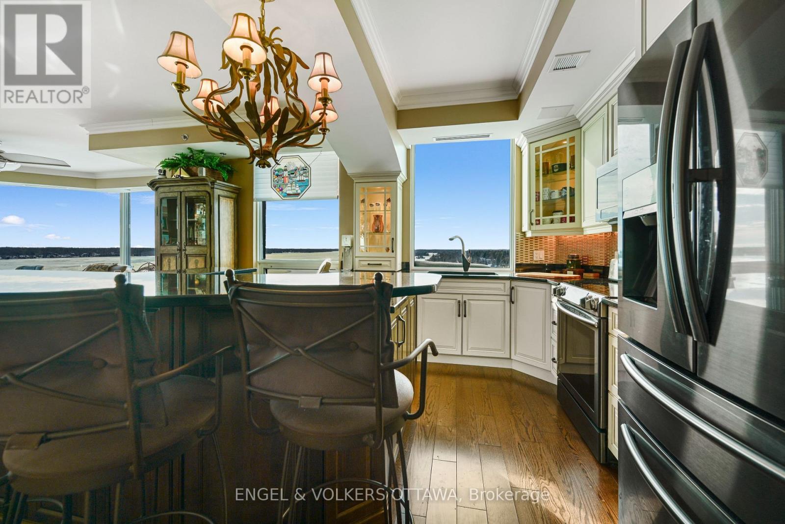 Windows on the World" await from this 18th floor southwest facing luxury suite. Ships from all over the world glide past, luxury superyachts appear unexpectedly all practically within touching distance and your boat docked in the marina below! How much better can life get? Oh, wait...it can! Incredible natural light and stunning sunrises and sunsets from this beautifully appointed 1600+ sq ft unit that has been upgraded to the max. Luxury cabinetry, classic light fixtures, beautiful hardwood flooring, powered window coverings, crown mouldings throughout, well placed mirrors bouncing the light and views in all directions. Spa-like ensuite bath with double Jacuzzi tub and when you step out...a heated floor, no less! Your ownership includes membership in amazing amenities...pool, fitness centre, lounges, indoor and outdoor hot tubs, splash pad. A preferred handicap parking space located right beside the elevator. Tall Ships is known for its wonderful community atmosphere and like-minded residents. You have it all...yours for the taking! (42106985)