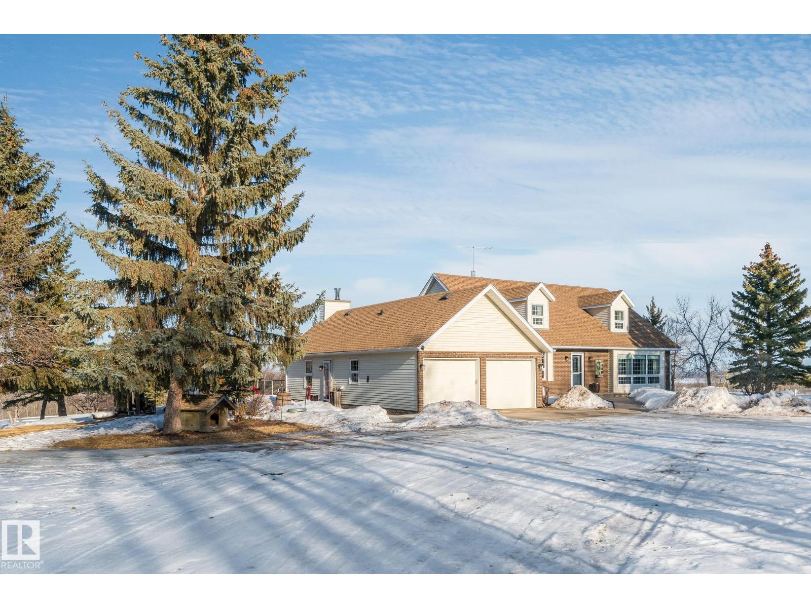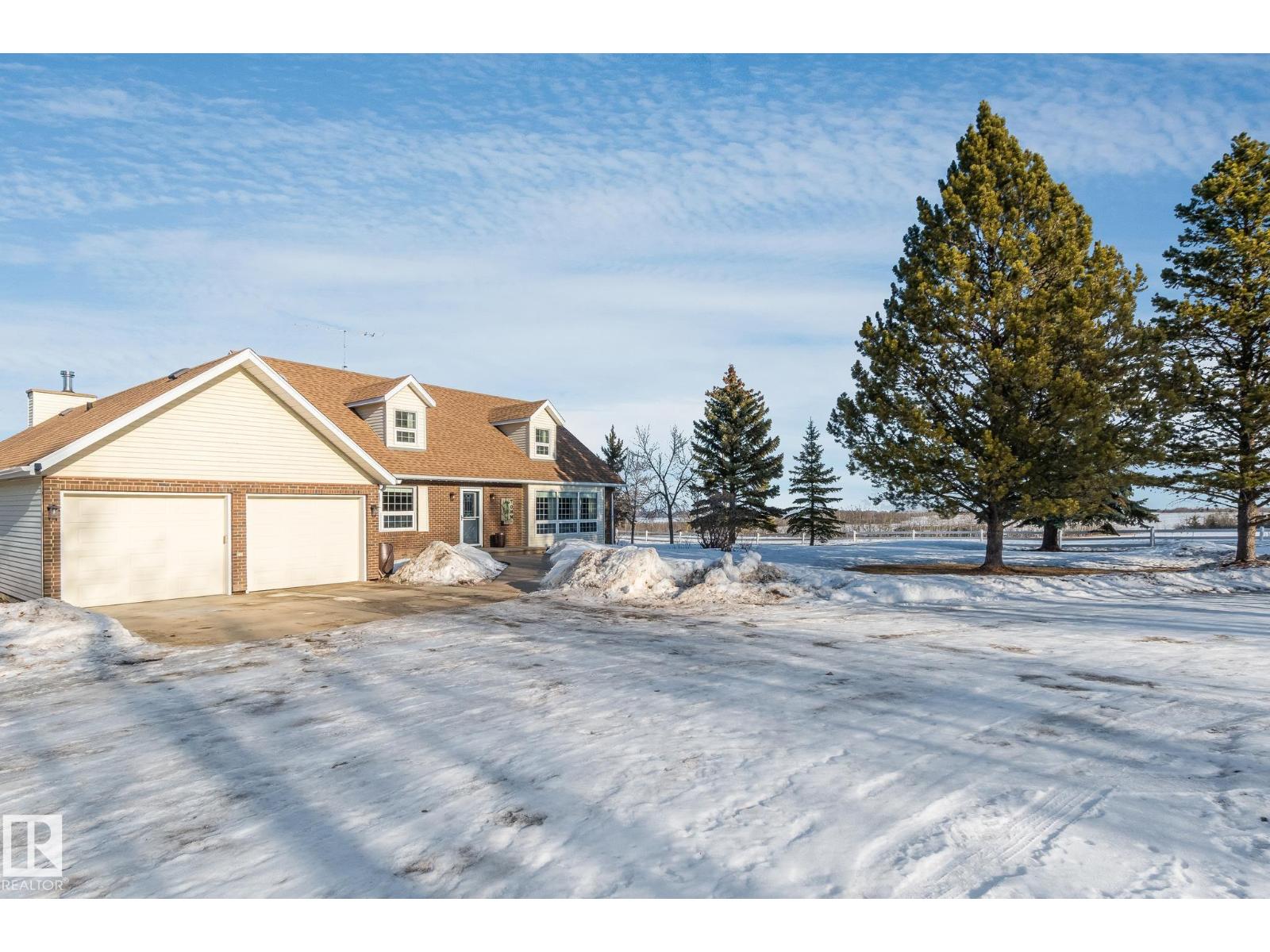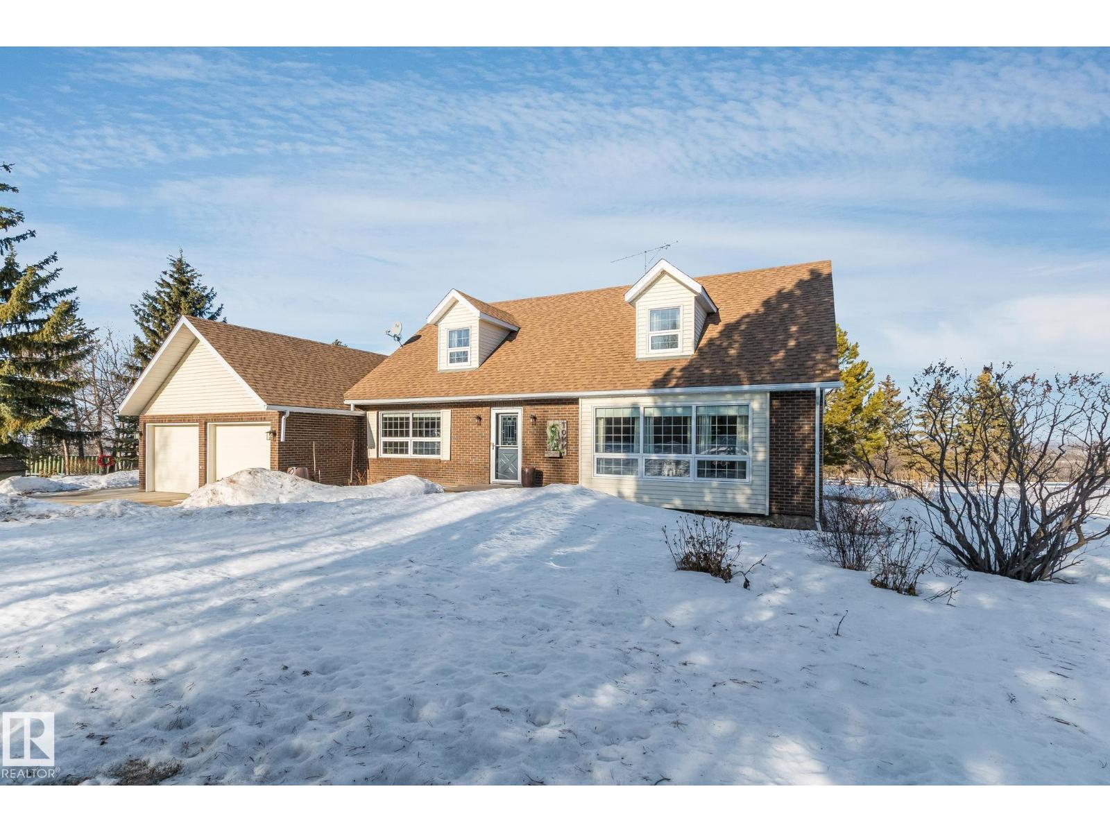 Beautifully maintained by the original owners, this large 1 ½ storey home sits on a picturesque 9.98-acre that has beautiful sun set views of Moose Lake. This spacious home features 4 bedrooms and 4 bathrooms, combining country charm with modern comfort. The exterior showcases timeless brick and vinyl finishes, dormer windows, and a double attached garage that enhance its classic curb appeal. Inside, the home features a bright and functional layout with a large kitchen, center island with cooktop, and adjoining dining area perfect for family gatherings. Outdoors, enjoy the peace and privacy of nearly 10 acres with mature trees, a covered BBQ area, large deck, and plenty of room for recreation, or future development. The large round about driveway offers ample parking and easy access year-round. This property offers the perfect balance of rural tranquility and modern living—just minutes from town amenities. Upgrades include Vinyl windows, HE Furnace, HE HWT, Central Air Conditioning, Shingles, and more. (33810399)