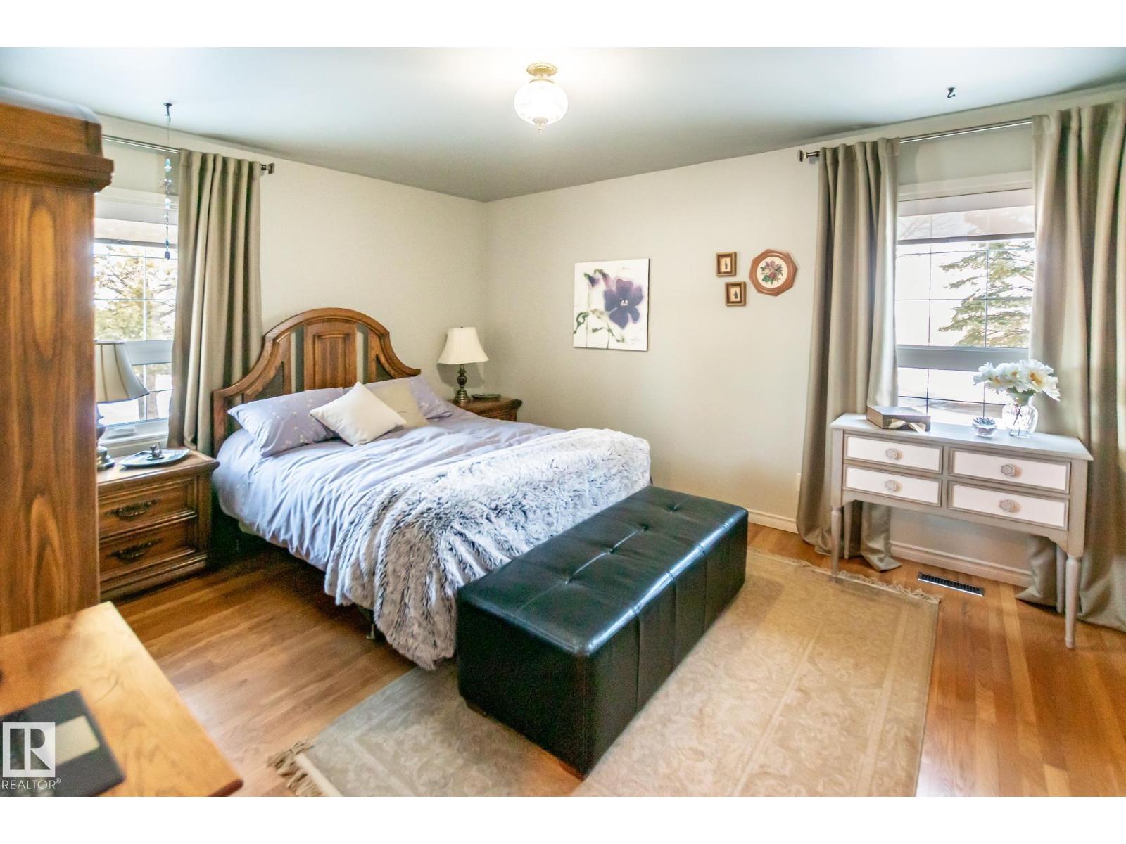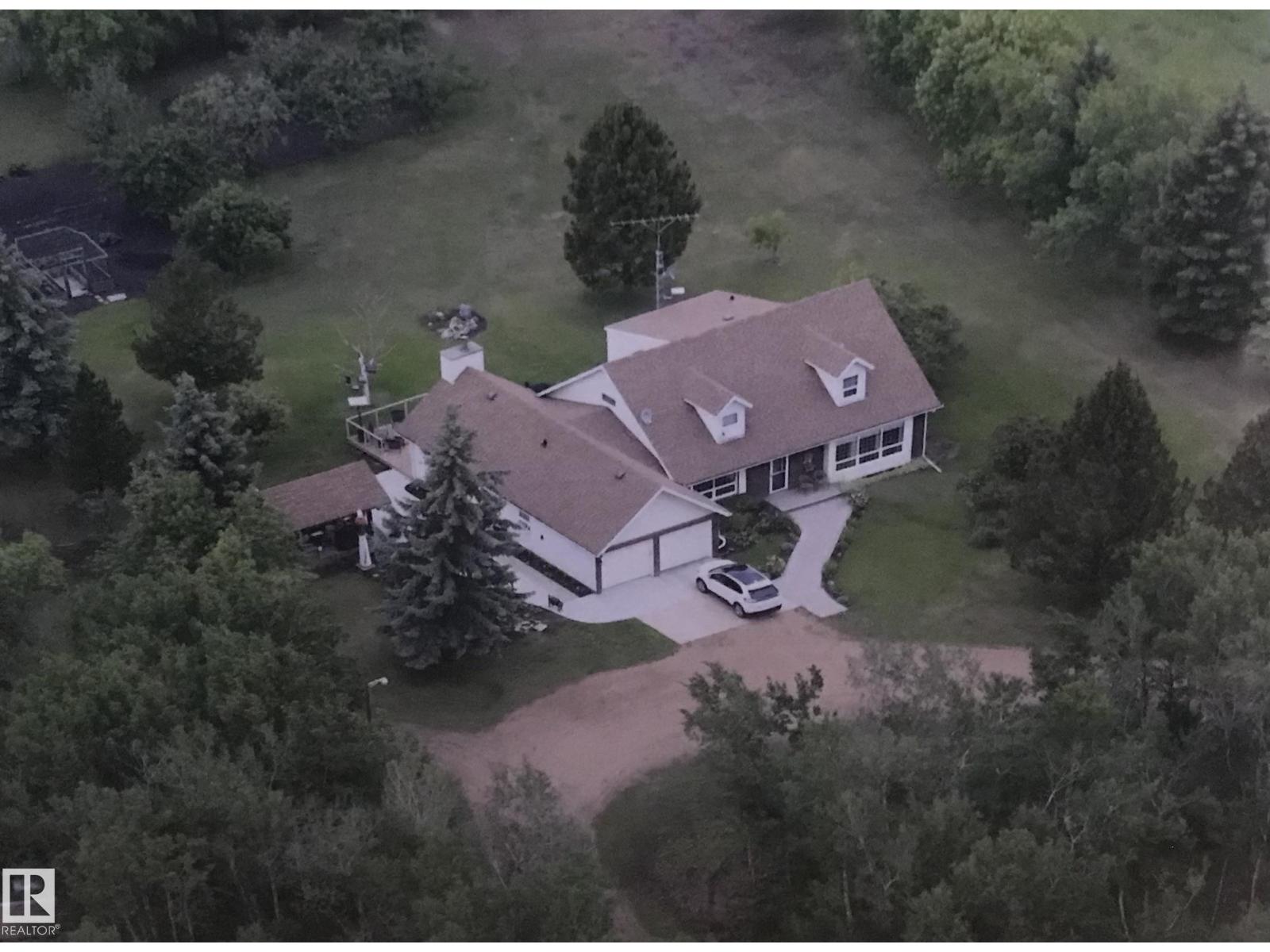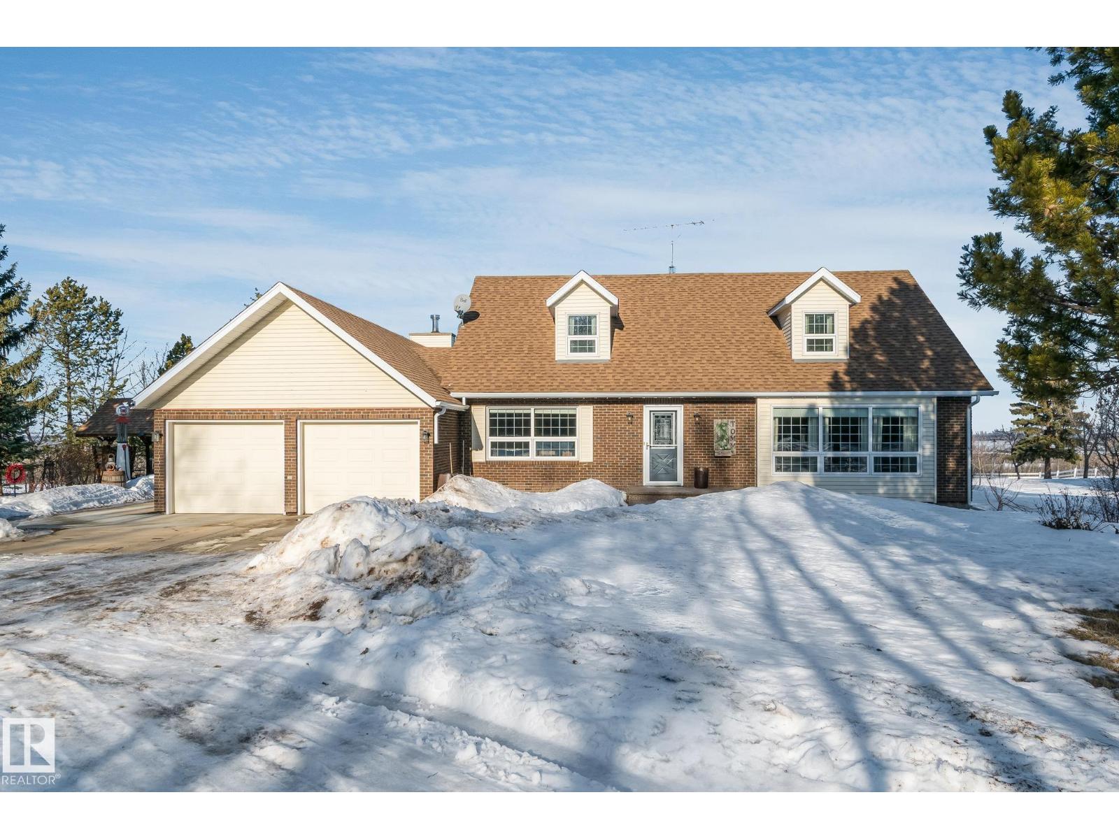 Beautifully maintained by the original owners, this large 1 ½ storey home sits on a picturesque 9.98-acre that has beautiful sun set views of Moose Lake. This spacious home features 4 bedrooms and 4 bathrooms, combining country charm with modern comfort. The exterior showcases timeless brick and vinyl finishes, dormer windows, and a double attached garage that enhance its classic curb appeal. Inside, the home features a bright and functional layout with a large kitchen, center island with cooktop, and adjoining dining area perfect for family gatherings. Outdoors, enjoy the peace and privacy of nearly 10 acres with mature trees, a covered BBQ area, large deck, and plenty of room for recreation, or future development. The large round about driveway offers ample parking and easy access year-round. This property offers the perfect balance of rural tranquility and modern living—just minutes from town amenities. Upgrades include Vinyl windows, HE Furnace, HE HWT, Central Air Conditioning, Shingles, and more. (33810399)