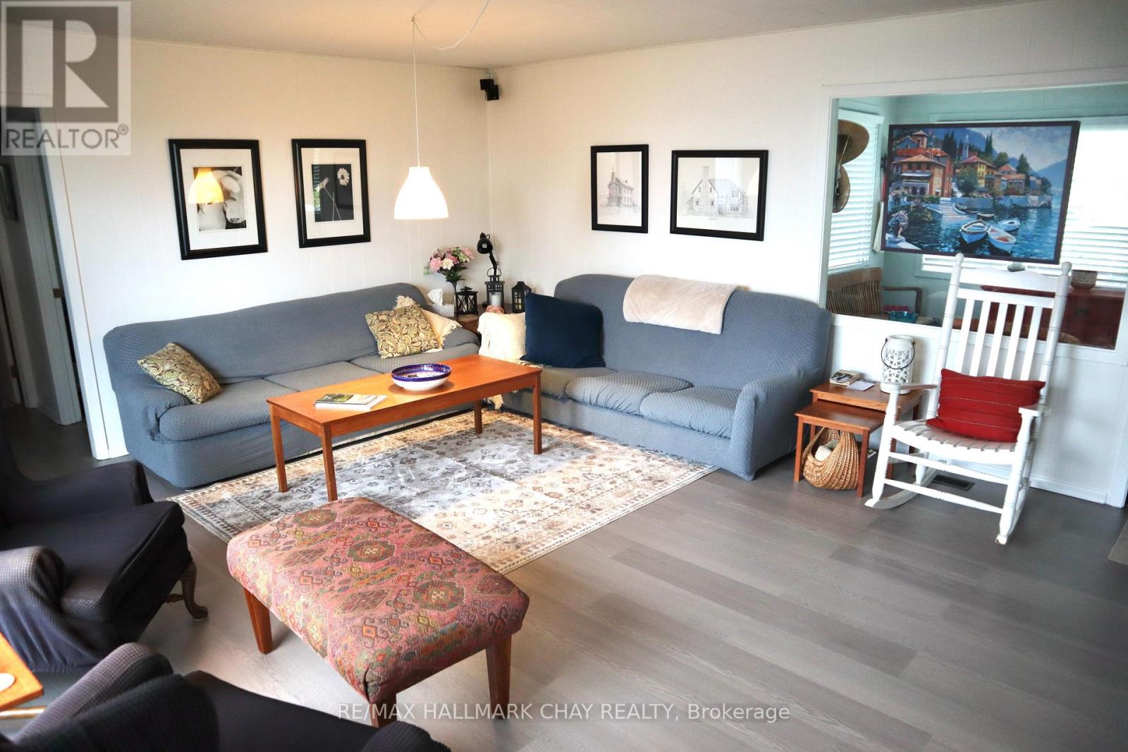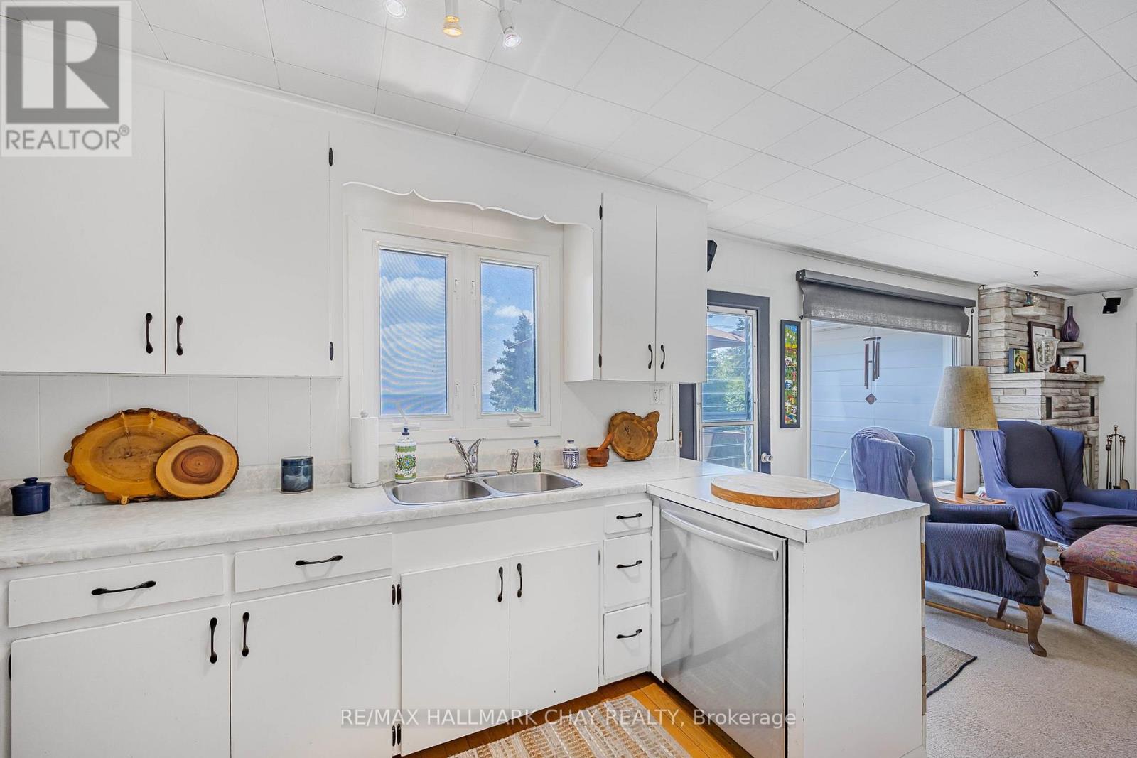 Welcome to your private lakeside retreat, featuring 72 feet of pristine, hard-bottom and sparkling, crystal-clear water-ideal for swimming, boating, and unforgettable sunsets. This fully winterized 3-bedroom, 2-bathroom bungalow is nestled on a beautifully treed lot, offering a peaceful natural setting with uninterrupted lake views from the moment you arrive.The open-concept living area showcases new vinyl flooring, a cozy wood-burning fireplace, and a walkout to an expansive deck that extends toward the water-perfect for relaxing or entertaining just steps from the lake. The lakeside eat-in kitchen blends function and scenery, featuring stainless steel appliances including a 6-burner gas stove, fridge, and dishwasher, all complemented by panoramic shoreline views.Wake up to the beauty of the lake in the primary bedroom with ensuite. Two additional bedrooms and a full 4-piece bath provide comfortable accommodations for family or guests. The lower level offers laundry facilities and ample storage space.The true showstopper is the impressive 30' x 33' waterfront deck-an ideal setting for lakeside lounging or summer gatherings, enhanced by the gentle sounds of the water below. Enjoy the ultimate lake lifestyle with a 26.5' x 16' boathouse complete with a marine railway, perfectly suited for your boat and water toys. Above, a 29' x 18' concrete rooftop deck creates an unforgettable space for evening entertaining under the stars.This is more than a home-it's a lifestyle on the lake. (42107762)
