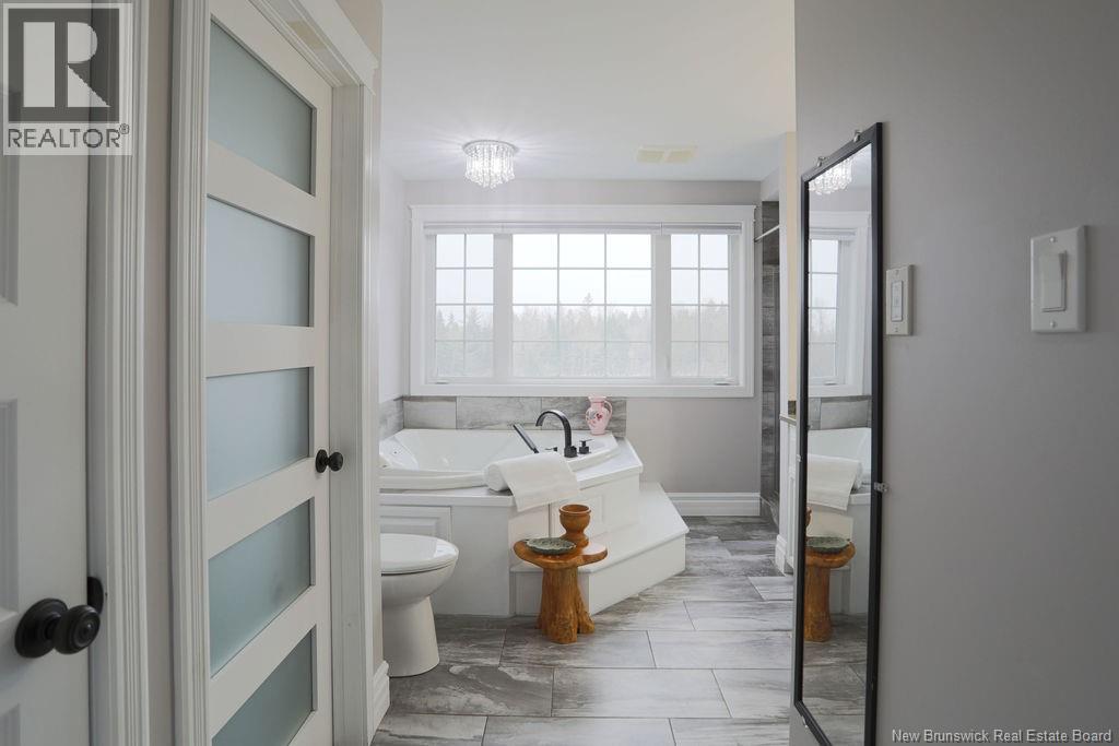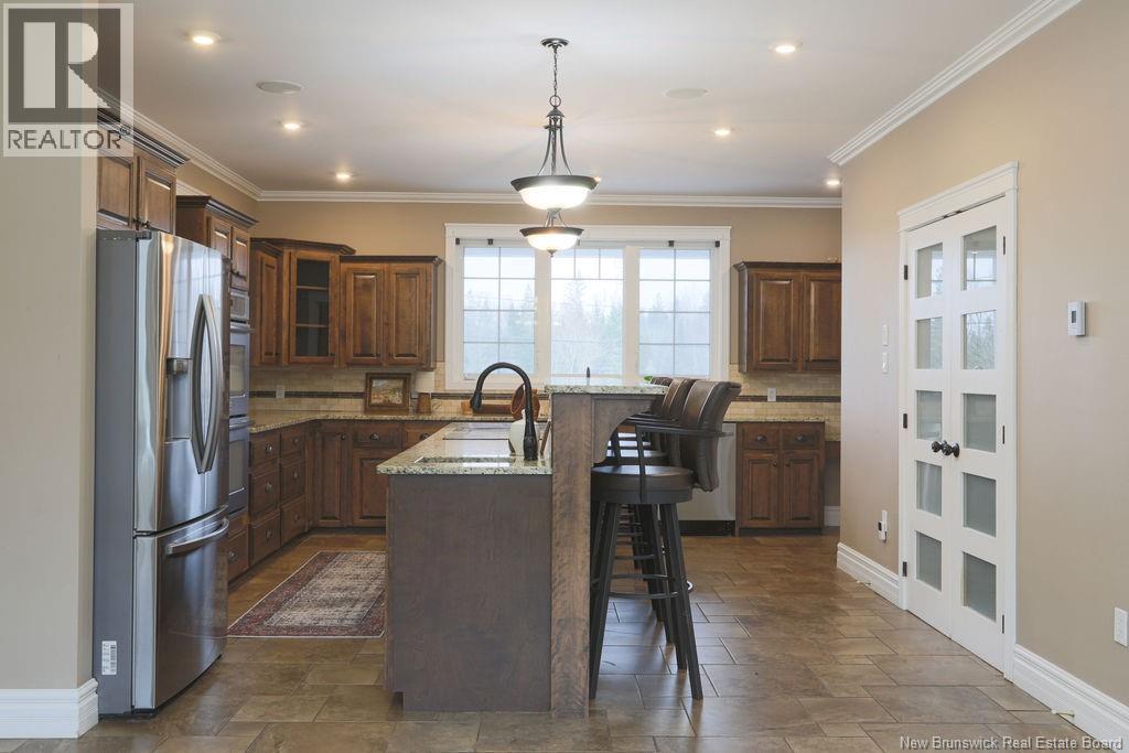 Privately set on a flat 1.9 acre lot, this exceptional 5-bedroom home offers a thoughtful balance of space, convenience, and long-term durability just beyond the city. A long, paved driveway leads you to this home with 2 covered porches and in-ground saltwater pool, complemented by impressive garage spaces offering rare flexibility for personal or professional use. Inside, a functional mudroom opens to the kitchen with bar-top seating and walk-in pantry. Flowing into the living room, floor-to-ceiling windows and cathedral ceilings flood the space with light. 2 bedrooms are on the main level, while the upper floor offers 3 additional bedrooms and laundry room. The primary offers a whirlpool tub in the ensuite and a private balcony. The finished basement extends the living space with a large family room, home theatre and storage. The attached 3-car garage is complete with epoxy floors, a bonus room and wet bar, while tucked at the rear of the property, a separate oversized 3-bay garage adds further flexibility with 1,700 sqft. It is heavily insulated and can hold an RV camper or boat trailer. There is a geothermal heat system in the house, a fully automated Generac and security system providing unwavering comfort and peace of mind. Close to the highway, this home is 10 minutes from a boat launch, 15 to Sussex and 30 to Saint John. Close enough for an easy commute, this home is ready to create lasting memories in comfort, style and tranquility. Taxes reflect non-owner occupied. (29471576)