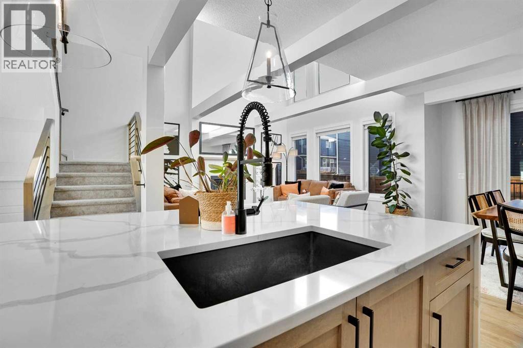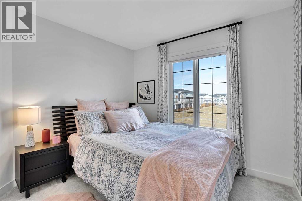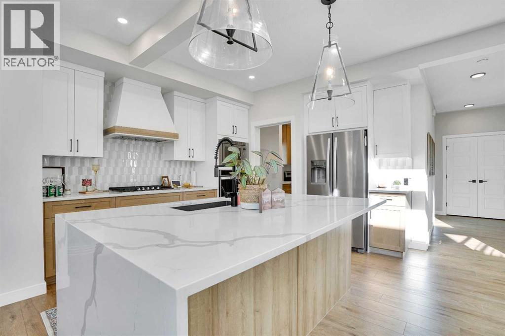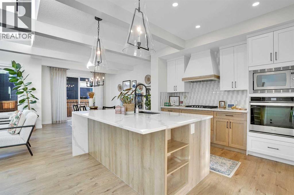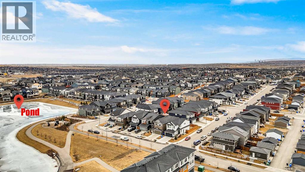 Pond-facing and fully upgraded, this exceptional detached 2-storey home in Moraine offers over 3,400 sq. ft. of total developed living space, thoughtfully designed for modern families and long-term investment potential. Set on a conventional lot with a double front-attached garage, this residence combines premium finishes, functional design, and an unbeatable location overlooking green space, waterfront, walking paths, and a playground.The main level welcomes you with an open foyer and a bright, open-concept layout anchored by a chef-inspired kitchen featuring a gas range, stainless steel appliances, upgraded cabinetry, expansive quartz island, and generous counter space. A walk-through pantry provides seamless access from the garage, while the separate spice kitchen adds everyday convenience. A main-floor office or bedroom paired with a full bathroom offers excellent flexibility for guests or multigenerational living.Upstairs, the home is complete with four spacious bedrooms, a central bonus room, and upper-level laundry. The primary retreat is well-appointed with a private ensuite, while the additional bedrooms provide ample space for a growing family.The finished basement includes a legal 2-bedroom suite with a separate entrance and full bathroom, offering strong short term rental or extended-family potential (subject to City of Calgary rules and approvals).Additional highlights include air conditioning, upgraded HVAC and insulation, a rear deck for outdoor enjoyment, and luxurious curtains and window coverings included. This property benefits from the Ambleton Owners Association (AOA), which helps maintain safe, clean, and family-friendly parks, pathways, and green spaces. Community rules promote courtesy, smoke-free public areas, and well-maintained amenities, contributing to strong curb appeal and long-term property value. Ideally located near schools, parks, transit, shopping, and major roadways, this home delivers both lifestyle appeal and everyday conve nience. (31622099)