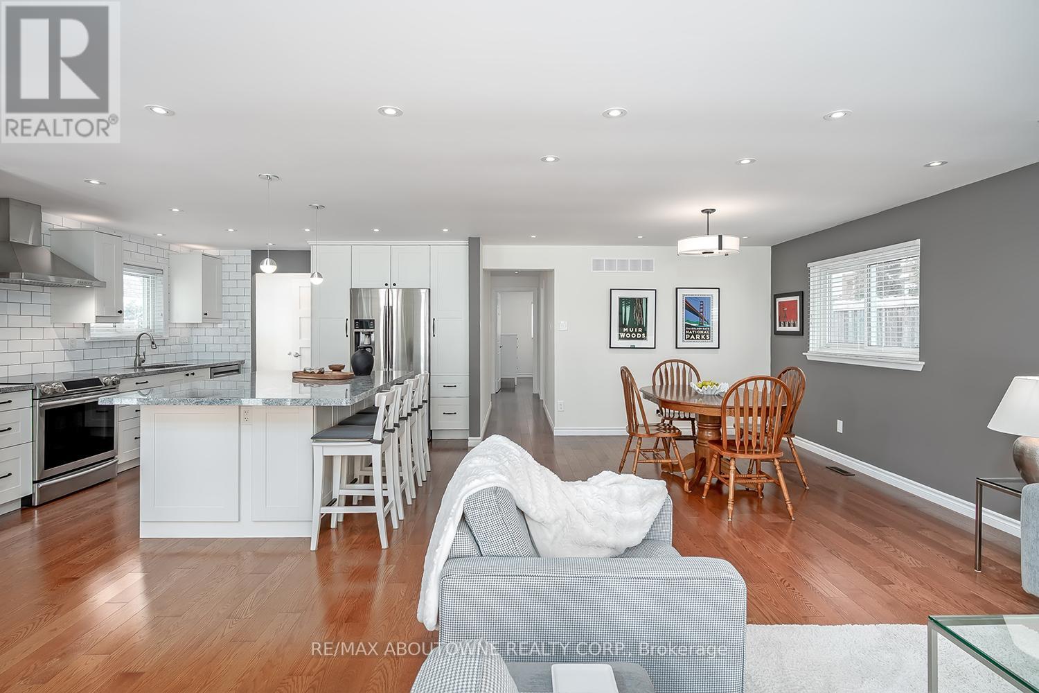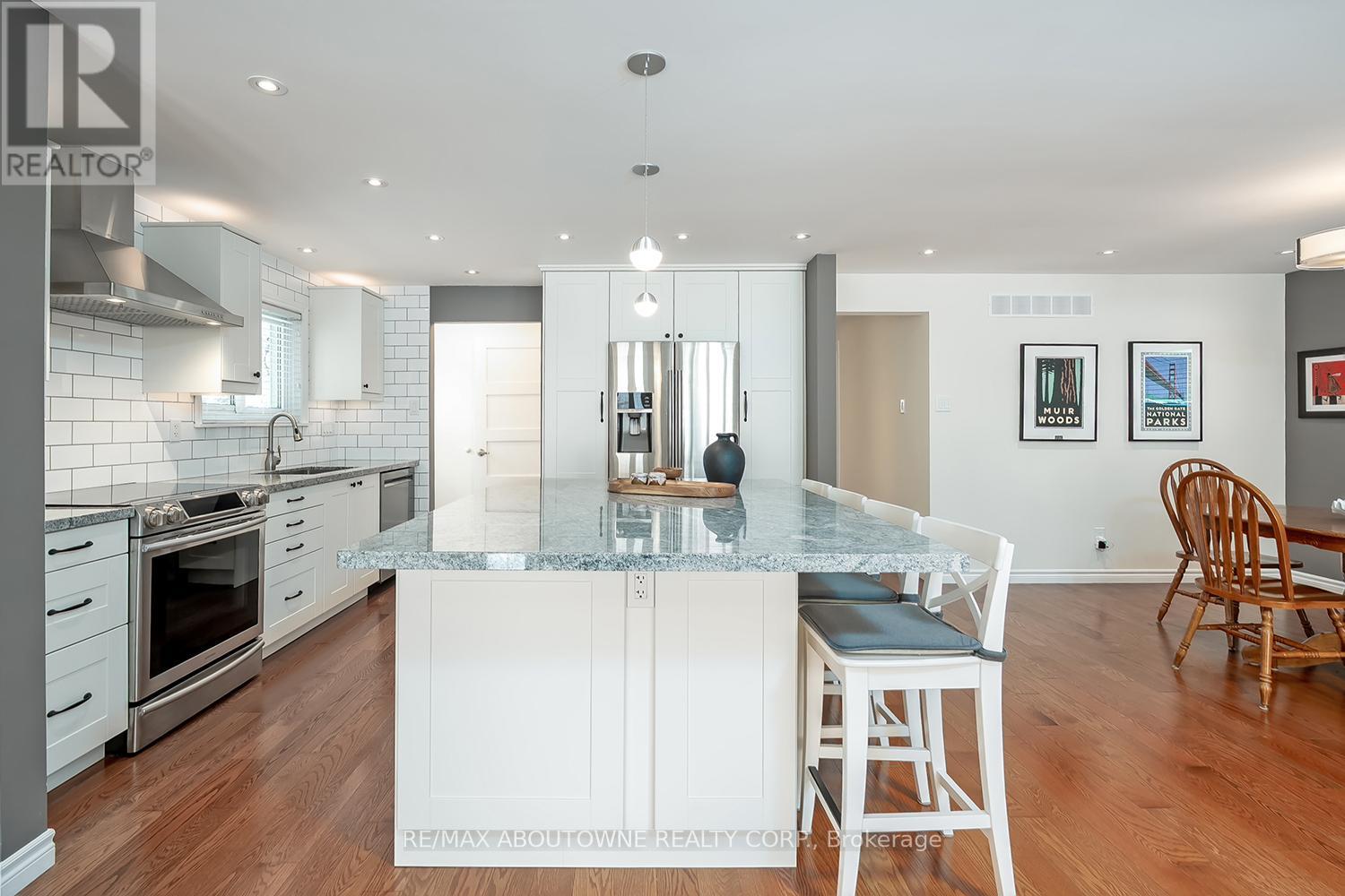 Ideally located in southeast Oakville, this fully updated and renovated brick bungalow is nestled in the highly desired E.J. James, Maple Grove and Oakville Trafalgar school districts. Perfect for families or those seeking one-level bungalow living, the home is just a short walk to the lake and features 2,500 sq. ft. of TLS, a 50 X 100' lot, 3 bedrooms, 2 bathrooms, open concept main living areas, plus a finished lower level. Main Level: The inviting open-concept main floor features a stunning chef's kitchen with a large island overlooking spacious living and dining areas, accented by rich hardwood flooring, pot lighting, and large windows throughout. All three generous sized bedrooms include ample closet space and natural light, while the renovated 4-piece bath offers the luxury of heated tile flooring. Lower Level: Fully finished featuring quality Torly's vinyl flooring with a Drycore base, with a massive recreation area, and a large office open to an exercise zone. This level also includes a renovated 3-piece bath and a full laundry room. The insulated garage is a hobbyist's dream, equipped with a 4000-watt Stelpro heater reaching 20C in minutes. Outside: Enjoy exterior pot lighting encompassing the entire home, plus a fully fenced backyard with a patio area for family fun & BBQ's. Location: Easy access to highly desired southeast Oakville public & private schools, parks, trails, local transit/GO train, the 403 & 407, shopping the Lake, the harbour and the charm of Oakville's community lifestyle. Other Information: Main level freshly painted so move in ready!; Basement reno including bathroom 2021; Main bathroom 2018; Kitchen 2017; Roof 2011 with a 50 year transferable warranty. HURRY! (42110044)