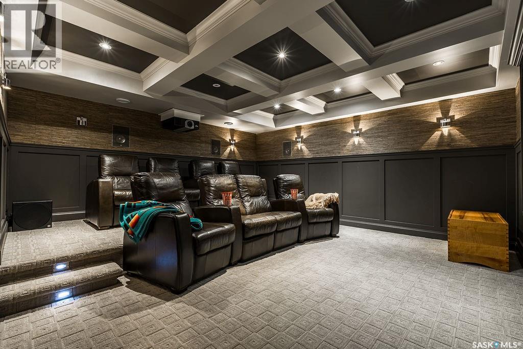 Stately and elegant, welcome to this beautiful home backing the park on a quiet street in sought-after Arbor Creek.This exceptional property has been finished with premium, high-end finishes & offers an incredible blend of luxury, comfort & family functionality. The main floor welcomes you with a striking 20' 2-storey front foyer that leads into a stunning living room with a cozy gas fireplace & large windows overlooking the backyard. Through the living room is a chef’s dream kitchen featuring granite countertops, a massive island, top-end appliances & an abundance of custom cabinetry. A large dining space features a coffee bar & garden doors to the backyard. Through the kitchen is a large mudroom with laundry & access to the attached double garage. A 2-pc powder room off of the mudroom & foyer makes for easy convenience. A main floor office overlooks the front garden. A stunning main-floor library with built-in bookcases & double sided fireplace is the perfect main floor retreat. Upstairs, the primary suite has an abundance of storage, complete with an updated 4-piece ensuite featuring a soaker tub & standalone shower. Two more generously sized bedrooms & another 4-piece bathroom complete the upper level. The fully developed basement is equally impressive, offering a cozy family room with a bar and fireplace, dedicated games rooms, an additional bedroom & a luxury bathroom with a steam shower. The best part of the basement is the theatre room with overhead projection and tiered theatre seating, ideal for movie nights and entertaining. The utility room has a sink and plenty of extra storage room. The outdoor space is nothing short of spectacular. Enjoy an outdoor kitchen, multiple lounging and dining areas, a hot tub, an incredible sport court, and a heated skate shack. Great curb appeal with an impressive brick exterior & wide driveway. This home backs the park for additional privacy. Great location, great finishes, great space, waiting for you to call it home. (29367599)