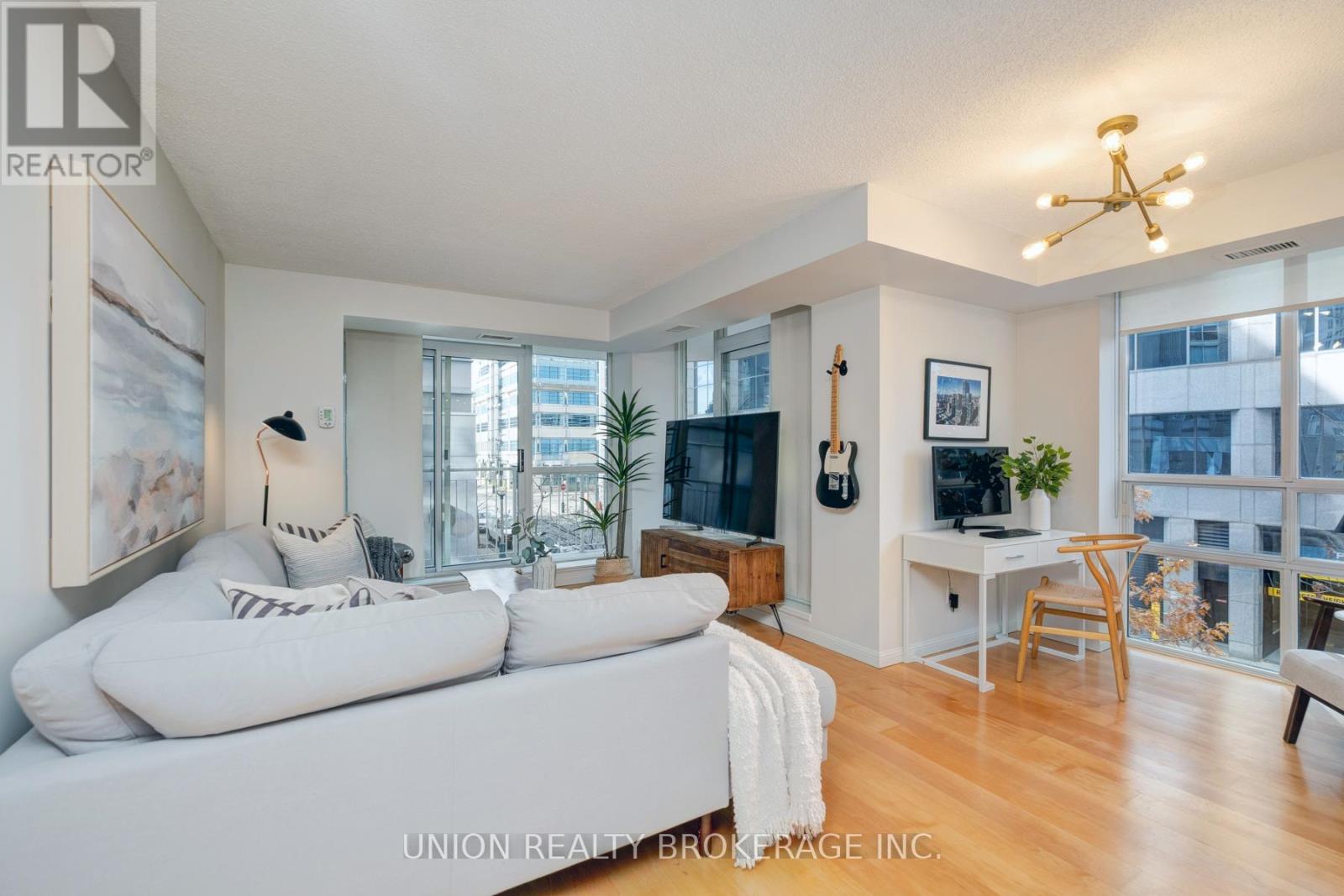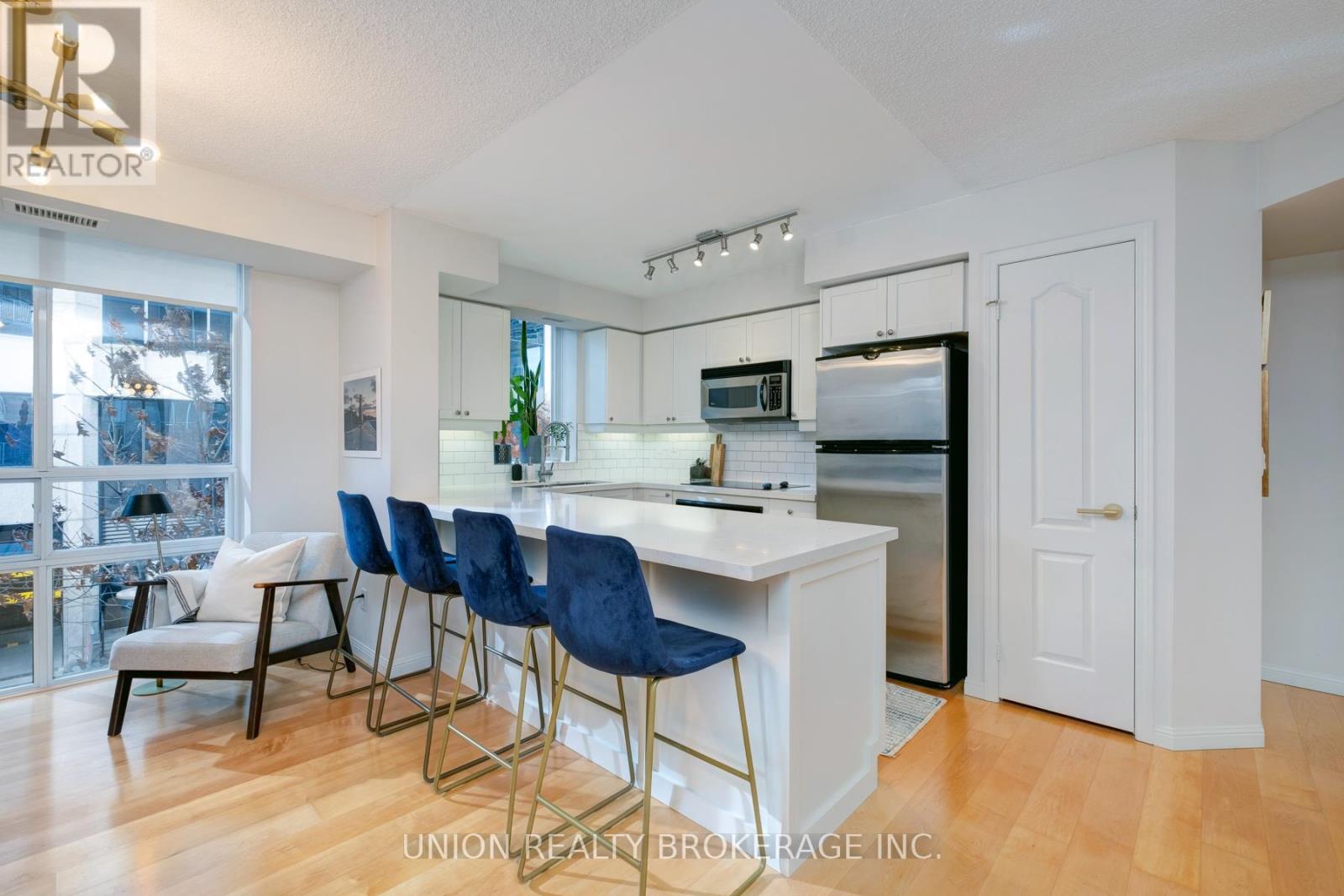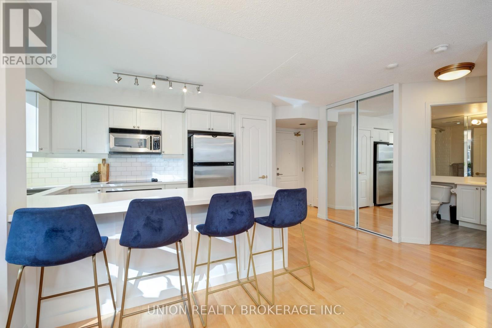 Enjoy an abundance of natural light in this corner suite in the boutique Wellington Square Condos! Immerse yourself in the best of city living with over 700 square feet of living space, a wrap around terrace, and functional flow with floor-to-ceiling windows throughout. The spacious, open-concept living and dining area is perfect for entertaining, including a walk-out to the large terrace space. The bright, updated kitchen features a window (a rare find in condos!), stainless steel appliances, ample storage and pantry, quartz countertops and a large peninsula/breakfast bar for preparing and enjoying meals. The primary bedroom includes a large walk-in closet and a 4-piece bathroom. Pet-friendly building with an array of amenities - lovely rooftop terrace with BBQs and CN Tower views, games room, gym, party room, visitor parking and bike storage. Walk score: 96 / Transit score: 93 /Bike score: 96! Located at Wellington and Strachan, in a quiet pocket, you're only a 1 minute walk to Stanley Park (includes tennis and pickleball courts, pool, baseball diamond, off-leash dog park), Garrison Crossing (pedestrian and cycle bridge), and a short 10 min walk to Stakt Market. Minutes to Trinity Bellwoods, The Well, Liberty Village, Queen West, Ossington, the Lakeshore/waterfront. Convenient TTC access, and future Ontario Line at King and Bathurst. 1 underground parking spot and locker included. (42110883)