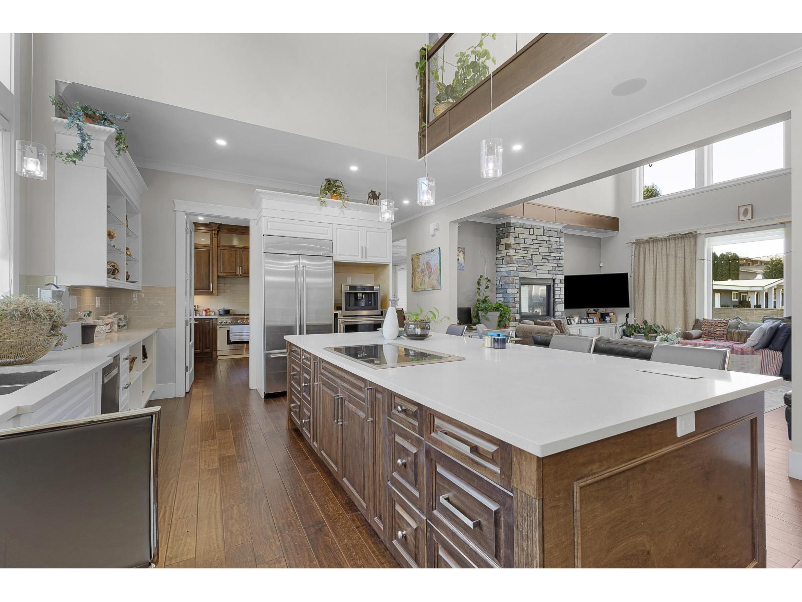 A rare opportunity to own a custom-built luxury estate set on a massive, flat 1-acre lot right in town. This breathtaking 7,000+ SQFT mansion delivers uncompromising scale and design with soaring vaulted ceilings, 11 bedrooms (4 ensuites), 12 bathrooms, 5 full kitchens equipped with high-end appliances, 4 laundries, built-in espresso machine, integrated speakers, security system, and full irrigation. The grand entrance leads to an elegant family room with one of five fireplaces, a refined formal dining area, private theatre, bar, and expansive patios ideal for entertaining. Relax in the private hot tub setting or take advantage of the extensive parking for all your toys. Bonus: a fully self-contained coach house with its own driveway and separate road access, offering incredible flexibility. Unmatched luxury, privacy, and space in a prime central location with room to build more. (32427083)