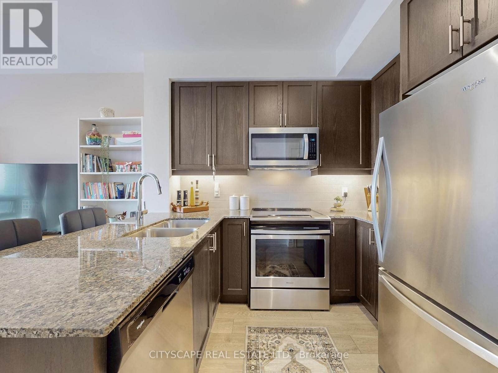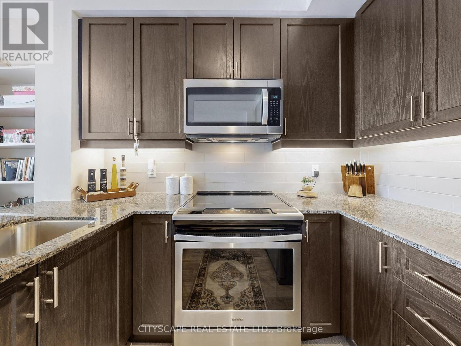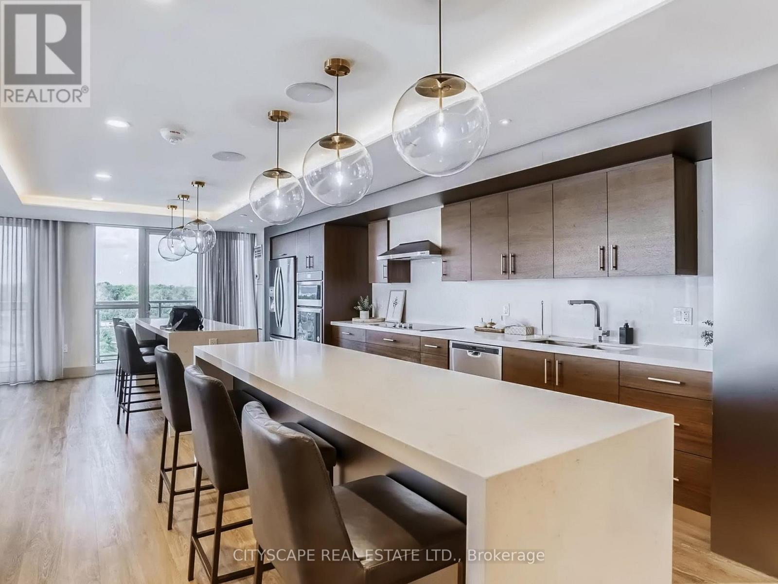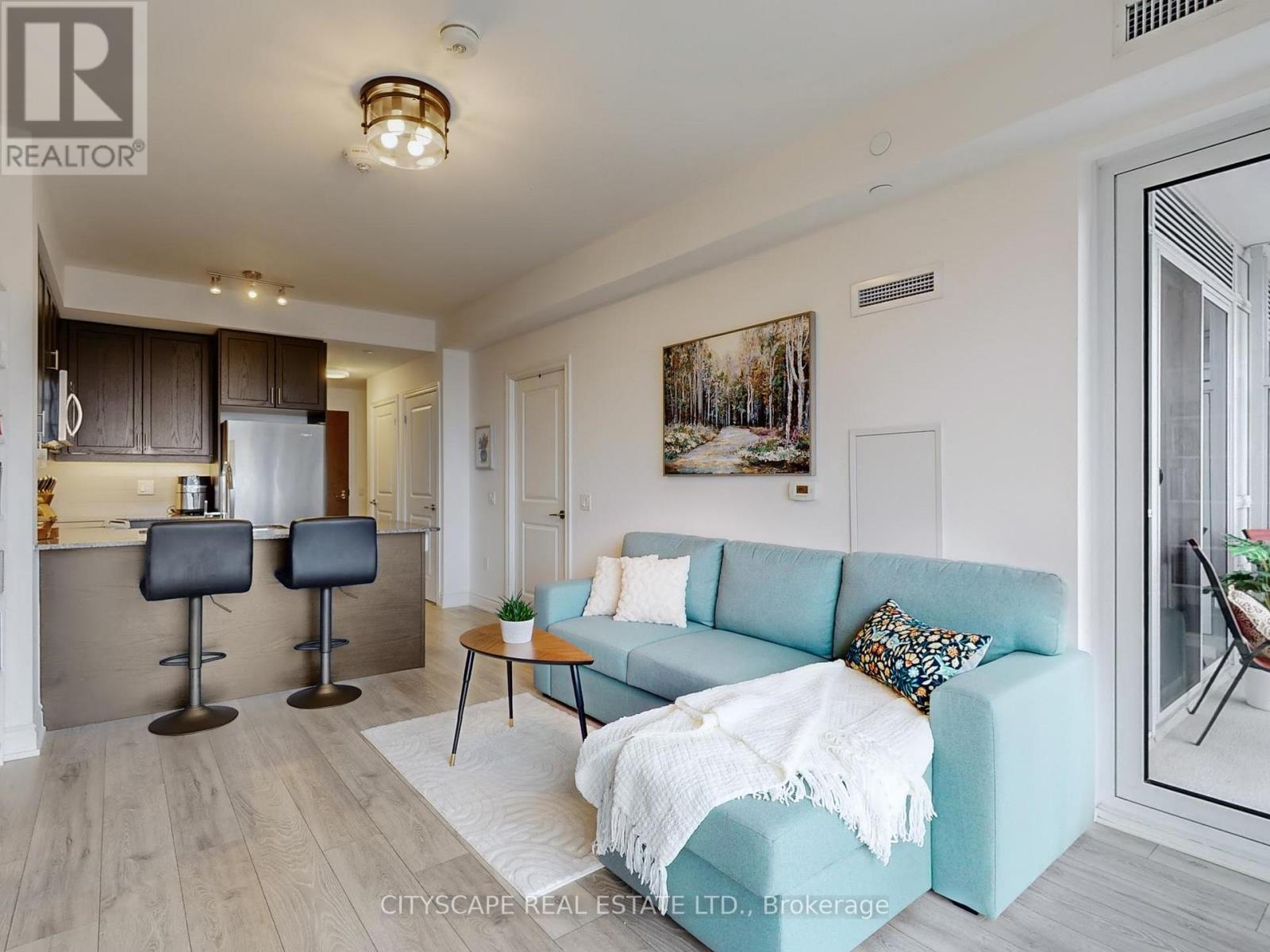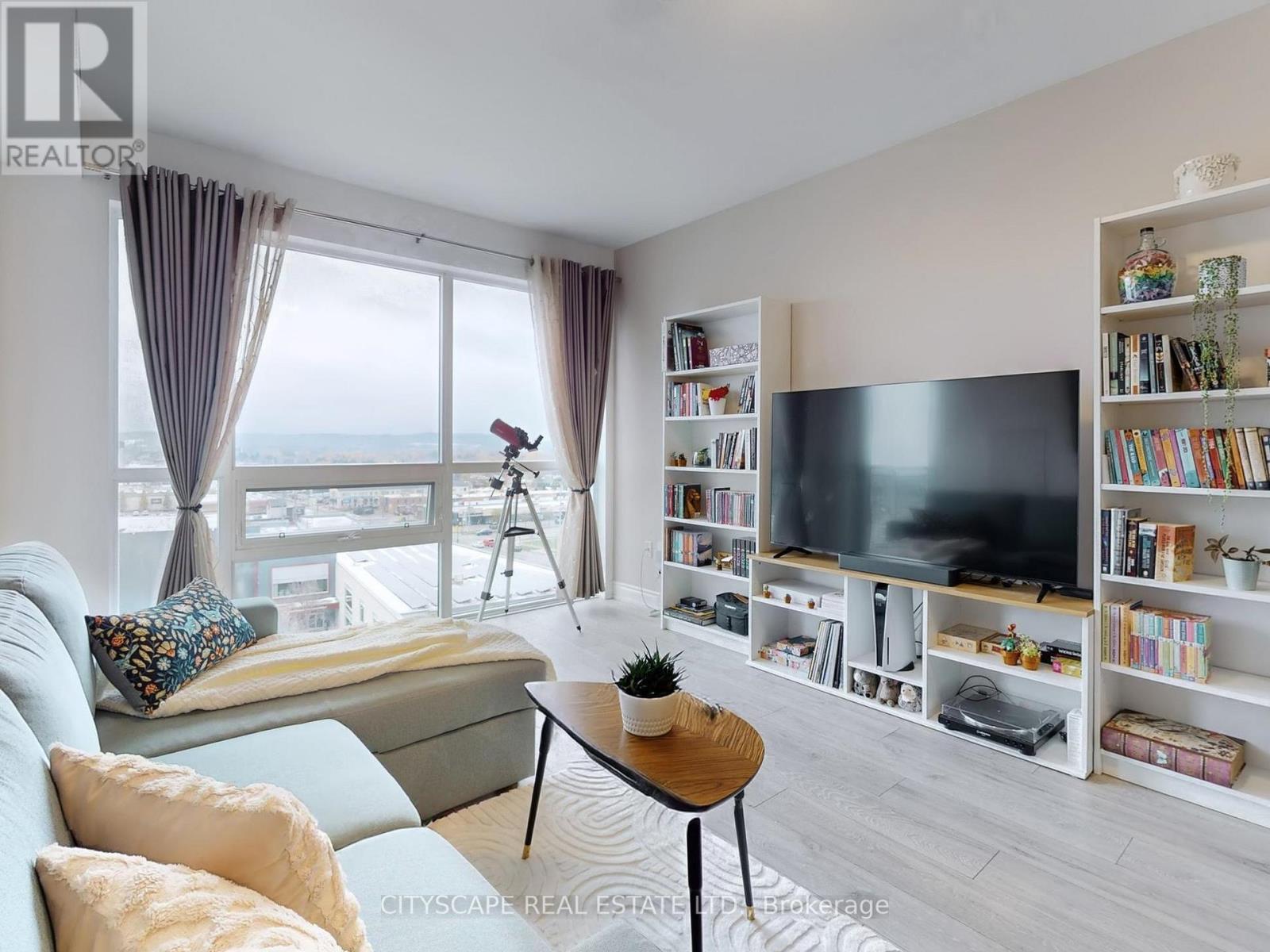 This luxurious condo at Art on Main includes 1 bedroom and a versatile den, paired with two full bathrooms to offer an elegant yet practical space. You'll find a stunning view of the escarpment with expansive west-facing windows, allowing natural light to illuminate the living + dining room. The open concept promotes a bright, breathable space with the flexibility to suit your needs. The bedroom features a walk-out balcony, which can also be accessed through the living + dining room. The kitchen features stainless steel appliances and a stunning dark quartz countertop, with warm ambient lighting under the cabinets. The den makes a great home office. The clouded glass siding doors offer good privacy and a sound barrier for other purposes (e.g. a secondary bedroom). This unit comes with a parking spot and storage locker. Art on Main also offers a 24 hr concierge and security, a fully equipped gym and yoga room, an outdoor pool with a hot tub and sauna, a party room paired with an outdoor terrace and much more. This building is only a few minutes walk from Milton Go station and shopping. (42111263)