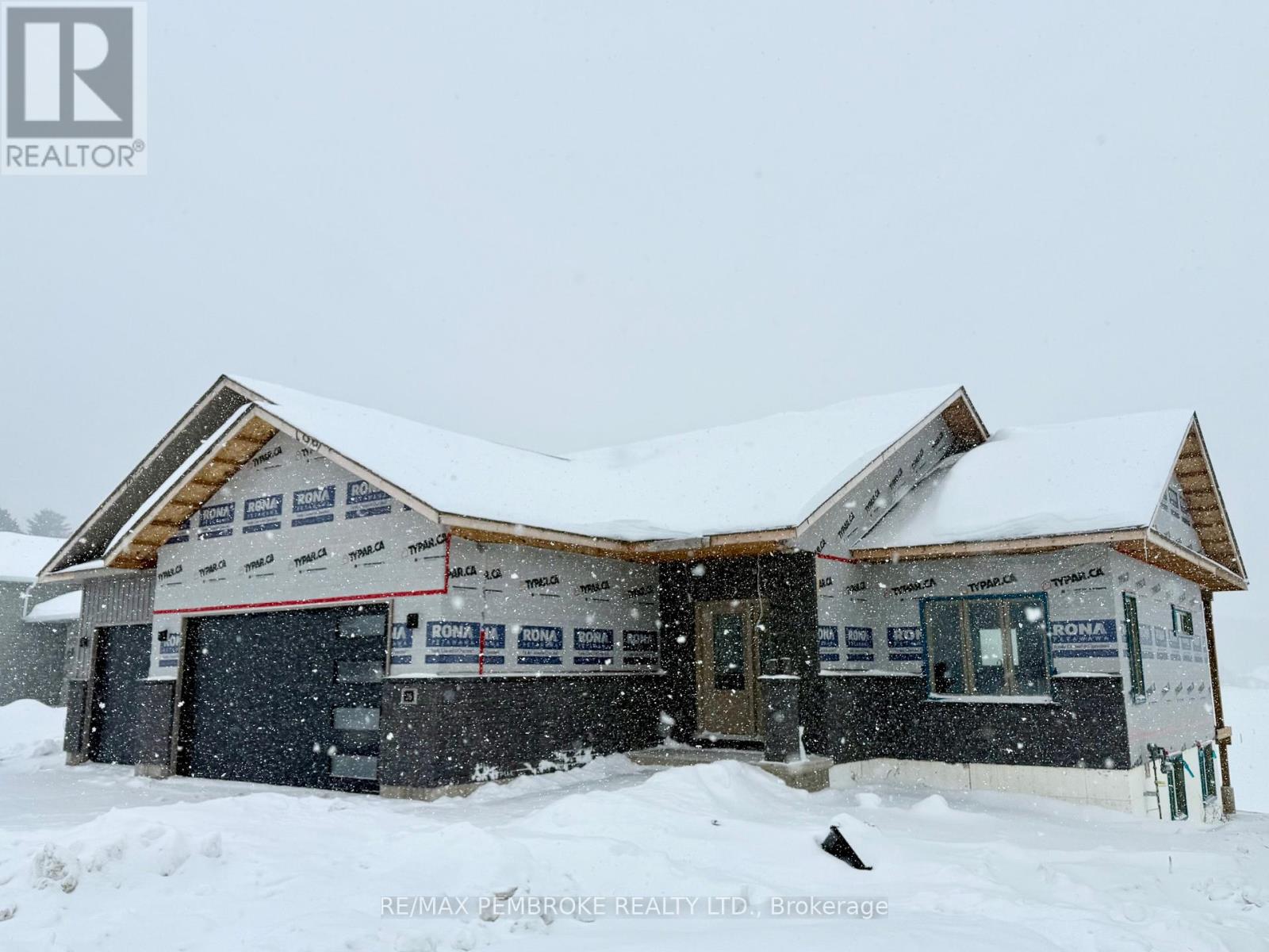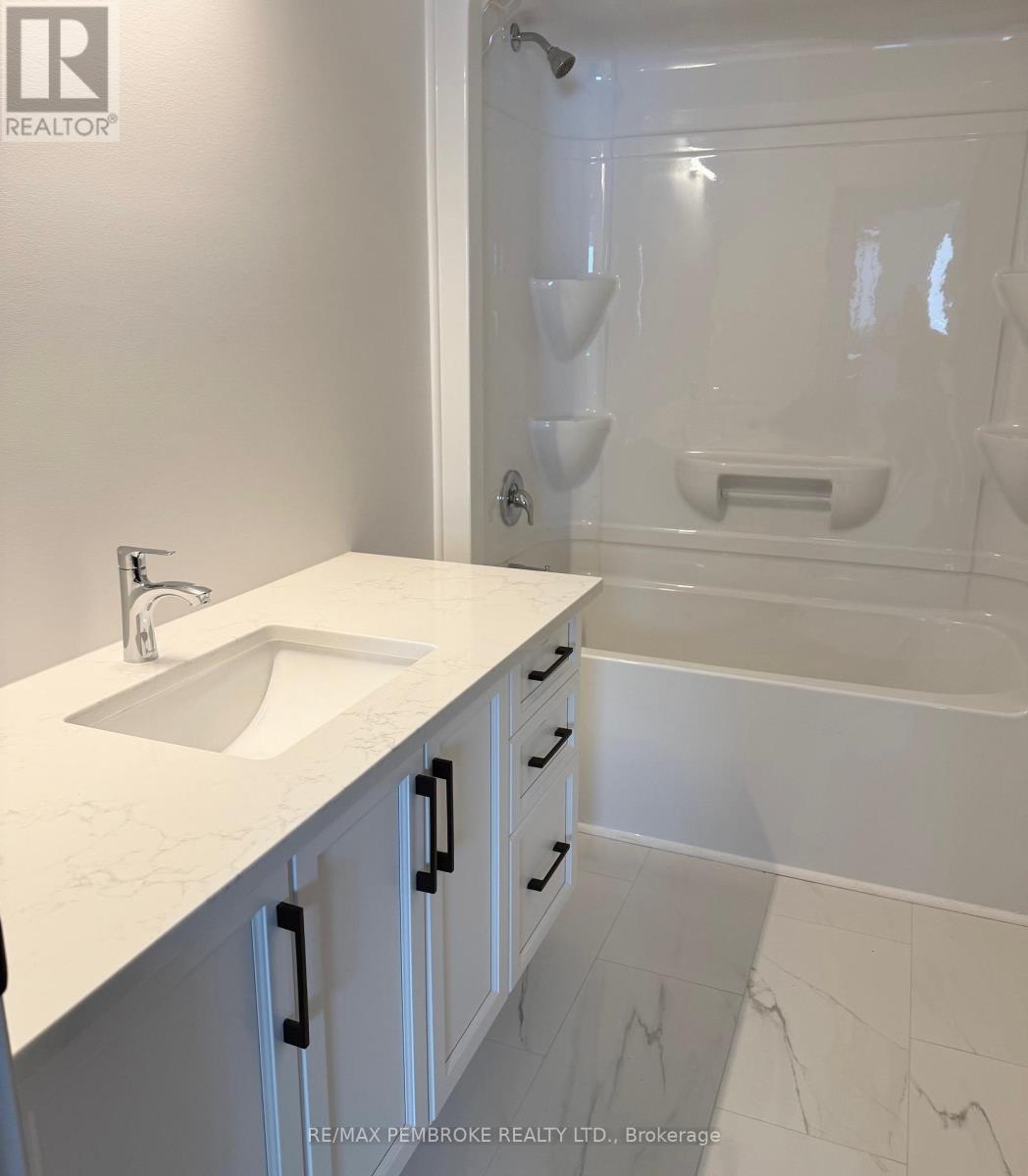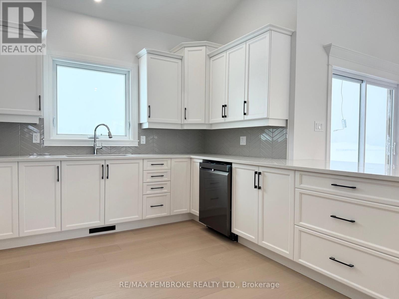 Welcome to 26 Jade Avenue in Radtke Estates subdivision of Petawawa. This beautifully crafted 3-bedroom, 2-bathroom bungalow embodies modern, comfortable living.Step into a bright, open-concept living space featuring vaulted ceilings that enhance the airy feel of the living room, dining area, and kitchen. Patio doors lead to a covered patio, ideal for enjoying morning coffee amidst serene treeline views.The kitchen has sleek white cabinets, durable quartz countertops, a stylish backsplash, and luxury vinyl plank flooring that ensures easy maintenance. A convenient main-floor laundry room adds to the home's practicality.Retreat to the primary bedroom, complete with a spacious walk-in closet and a luxurious 3-piece ensuite. Two additional bedrooms and a four-piece bathroom down the hallway, offering ample space for family or guests.The unfinished lower level offers excellent potential for expansion-perfect for a family room, extra bedrooms, or a home office.Additional features include central air conditioning, eavestroughs, a paved driveway, concrete walkway leading to the front entrance, a spacious triple-car garage, sodded front and back yards, and a full Tarion warranty, ensuring your peace of mind.Experience the perfect blend of inviting warmth and functionality in Petawawa's newest community. Schedule your private viewing today-this home is ready to welcome you! (42112429)