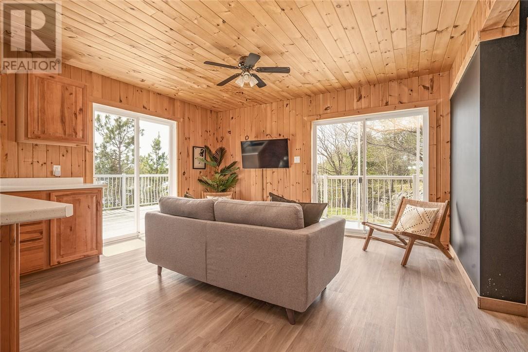 Welcome to the tranquil sanctuary of 475 Waterfalls Rd, where luxury meets nature on just under 4 acres of private waterfront property. This unique TURNKEY home blends a cozy year-round main house with a spacious loft unit above the garage, all set against the mesmerizing backdrop of a semi-private lake. The main house, a 1,056 sq.ft. year-round retreat featuring an open-concept kitchen/living area seamlessly connected to a beautifully elevated deck. Discover 2 bedrooms and a den, currently utilized as a bedroom, along with a delightful 3-season enclosed porch accessible via the lower-level walkout. The large yard includes a fenced area, ideal for children and pets to roam freely. Above the double-car garage lies a 900 sq.ft. loft unit, currently enjoying 3 seasons but with the potential for year-round living by updating the heat trace to the septic. This unit offers 2 bedrooms, an open-concept layout, and a fantastic deck for relaxation and entertainment. Embrace the private waterfront setting, with no other homes across the lake, providing unparalleled peace and tranquility. Indulge in outdoor activities year-round, from fishing for Pike, Pickerel, and Bass in the lake to exploring nearby Ontario Federation of Snowmobile Clubs trails. Please note, while the property offers breathtaking views, there are several steps leading down to the lake. Additionally, a long driveway ensures easy access even during snowy winter months. Recent updates and renovations both outside and within the main house and loft over the past two years enhance the property's appeal and functionality Bookings are filling up for Summer 2025 if new owners wish to continue. Don't miss the opportunity to experience the magic of waterfront living. Schedule your viewing today! (31467016)