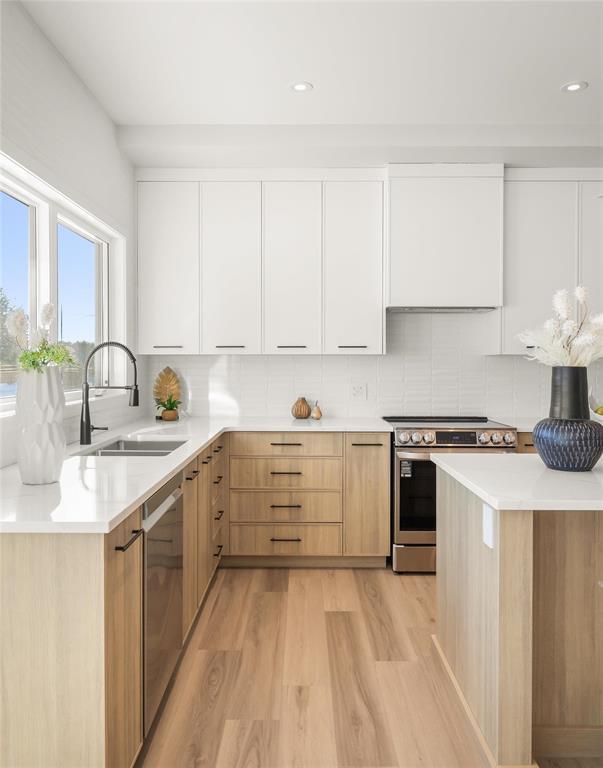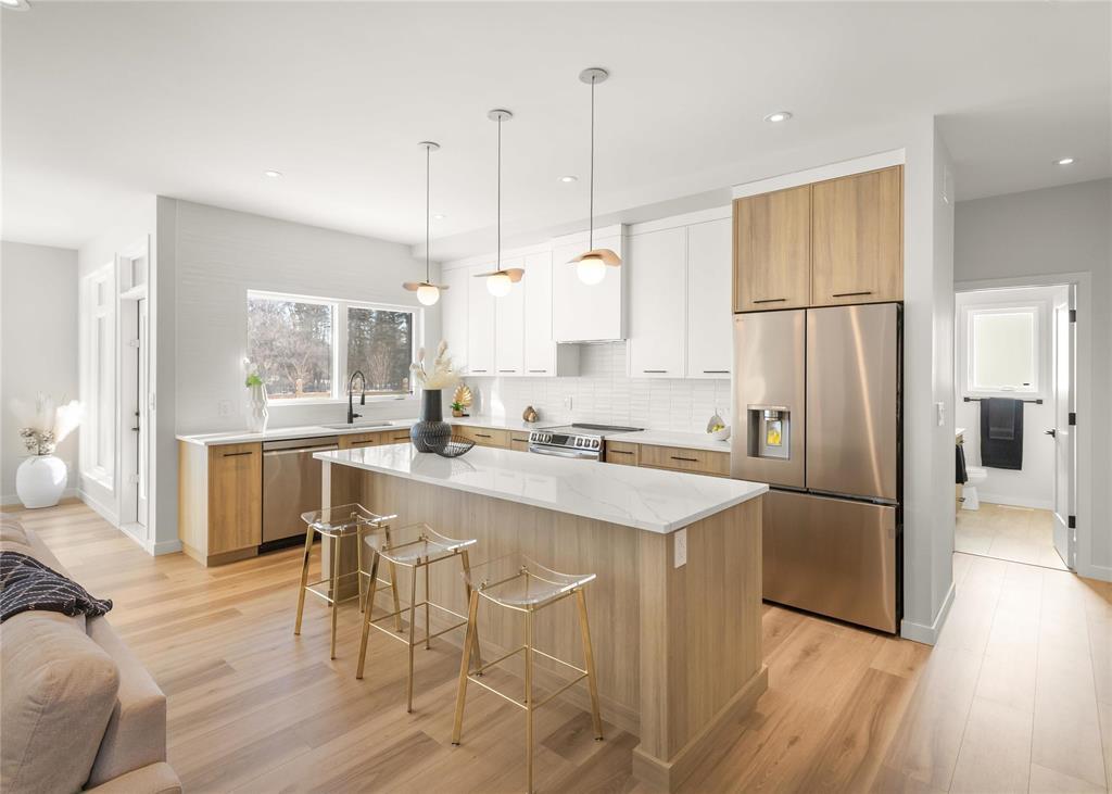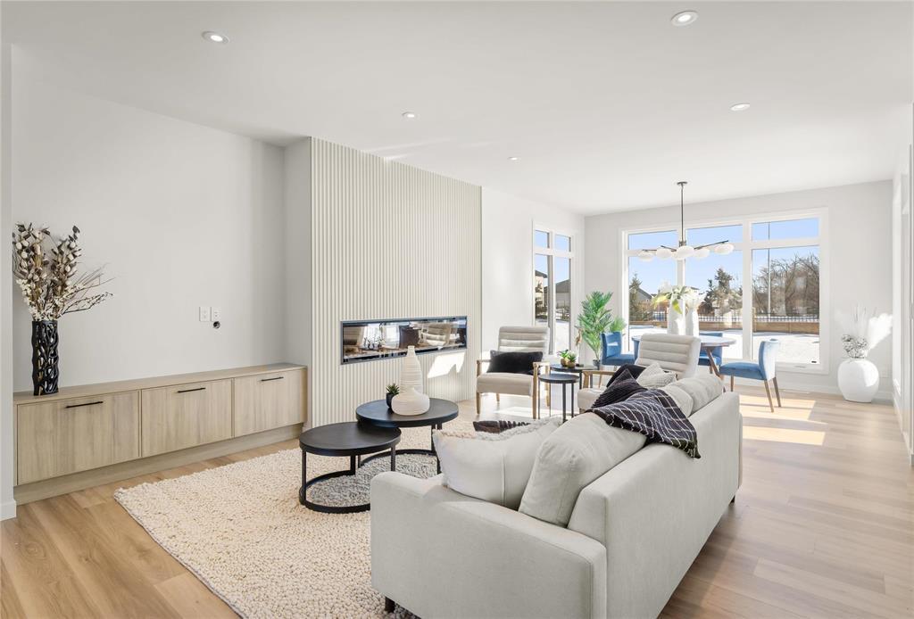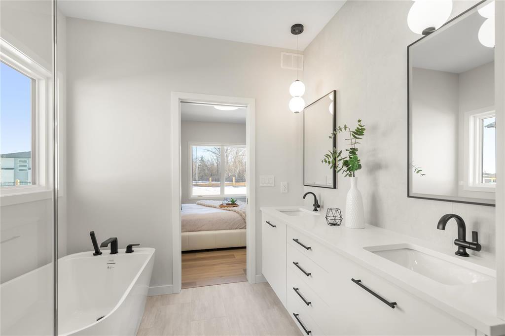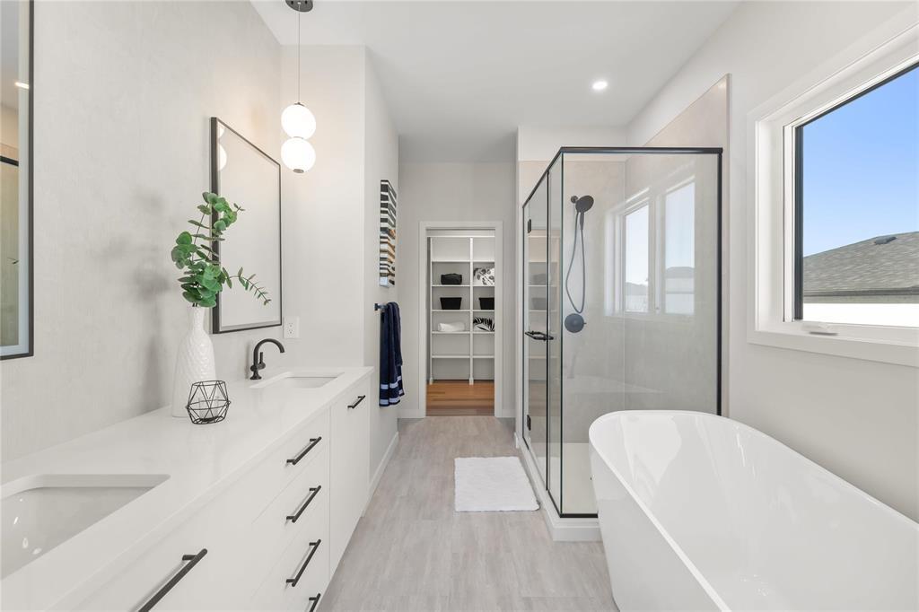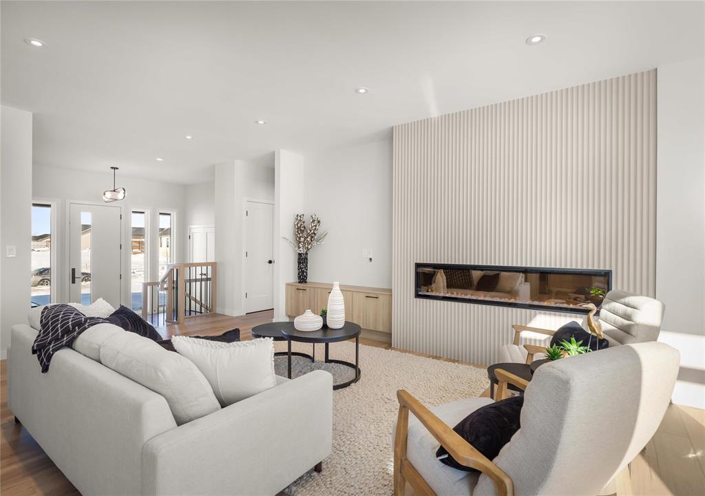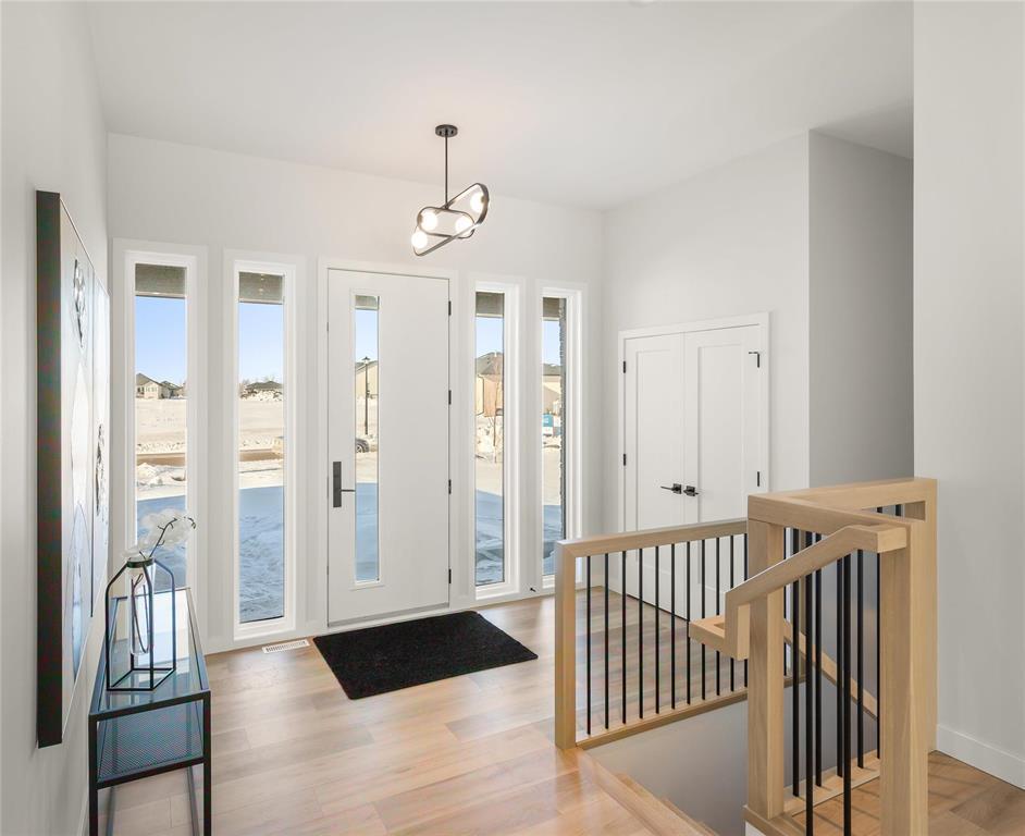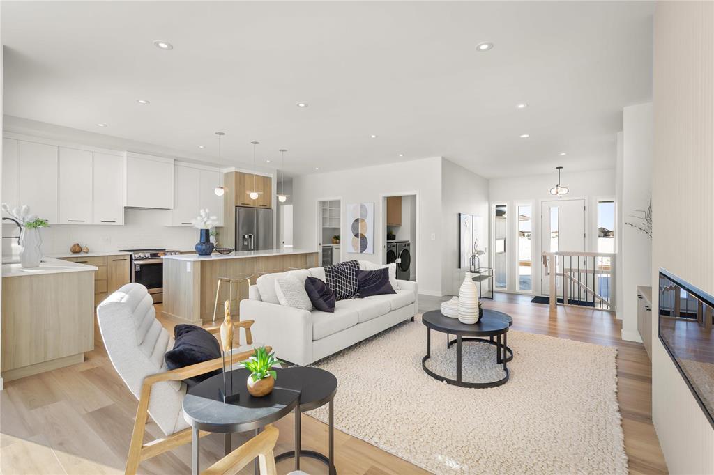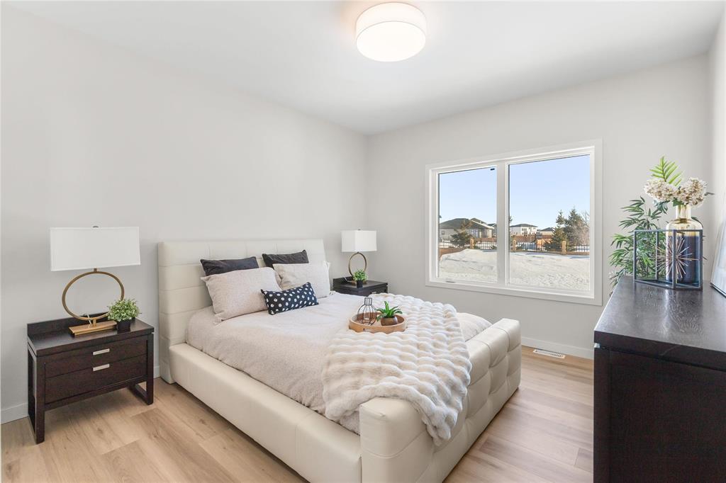 R08//Oak Bluff/OPEN HOUSE FEB 28th 12-2PM! Beautiful Warkentin Homes custom built 1740 sqft 3bdrm 2bthrm w/show home finishings throughout. Step inside to your sunken foyer & 9' ceilings throughout.Open concept main living area offers LVP flring,pot lighting & large wndws letting in an abundance of natural light. Eat in kitchen consists of plenty of counter & cabinet space,quartz counters,soft close cabinets,walk in pantry,tile b/s,island w/seating for 4 & all appliances incl. Great room features linear electric F/P & built ins on either side w/storage. Formal dining offers back dr leading to Wolf PVC maintenance free decking & aluminum powder coated railings w/glass inserts. Primary bdrm offers WIC w/built in shelving, deluxe 5 pc ensuite including his & her sink w/tile backsplash, free standing tub & walk in glass shower. 2 additional bdrms on the main flr, w/4 pc main bthrm, convenient main flr laundry & access to your 24x24 garage w/8' doors. Custom glass railings lead you downstairs to your blank canvas offering 9' ceilings,roughed in plumbing & oversized bsmt wndws. Addit'l features & upgrades: Central air, I joist, steel beam, acrylic stucco on the front exterior, 200 amp panel. Possession ASAP (231942410)