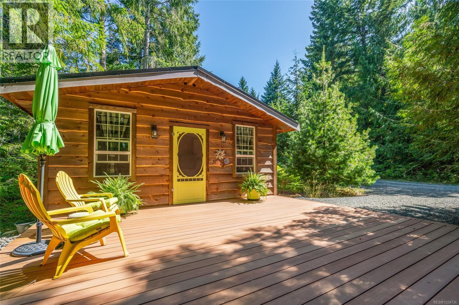 Qualicum North Country Acreage with 3 Bed/2 Bath House, Workshop, 1 Bed Cabin, and Bachelor Cabin. Tucked away on a quiet street, this magical 4.96-acre property offers a retreat-like atmosphere and the perfect blend of country privacy and city convenience. Surrounded by towering evergreens, the land hosts three separate dwellings in private settings, as well as a Detached Workshop, Greenhouse, two fenced garden areas with water and power, and two Sheds. There's a trail system throughout, and you have easy access to Qualicum Beach, Parksville, and North Nanaimo for shopping/amenities. The 1302 sqft Main Home is connected with nature, and has a massive patio with a wood fireplace and hot tub. The open-concept layout features vaulted ceilings, maple flooring, and expansive windows that bring the outside in. The Living Room sports a woodstove, and the Hickory Kitchen offers quality appliances. Also a 2nd Bedroom, a Den/Bedroom, a 4 pc Main Bath, a Primary Suite with patio access, and a Laundry Room. Off the entry drive is a 598 sqft Cedarwood Cabin that is fully furnished and turn-key. The open-plan main living area features vaulted ceilings, eng wood flooring, and a heat pump. The Living Room has a queen-sized sofa bed and a woodstove, while the Kitchen offers butcher block counters, a full appliance package, and space for a dining table. Also a Bedroom, Bath, laundry facilities, a big deck, and a walkway to a 2nd deck. Tucked in its own forested setting, the charming 320 sqft Bachelor Cabin comes fully furnished and has wood flooring, a vaulted cedar ceiling, a heat pump, a Queen bed, a 3 pc Bath, a compact Kitchen, and a deck. The Workshop has a 12' ceiling, a woodstove, a 2 pc Bath, and 3 large bays with OS doors. Lakes and the ocean are minutes away, and you'll enjoy easy access to parks and outdoor activities. Visit our website for VR Tours and floor plans of the Home, Cabin, and Cottage, and more info. (30365691)